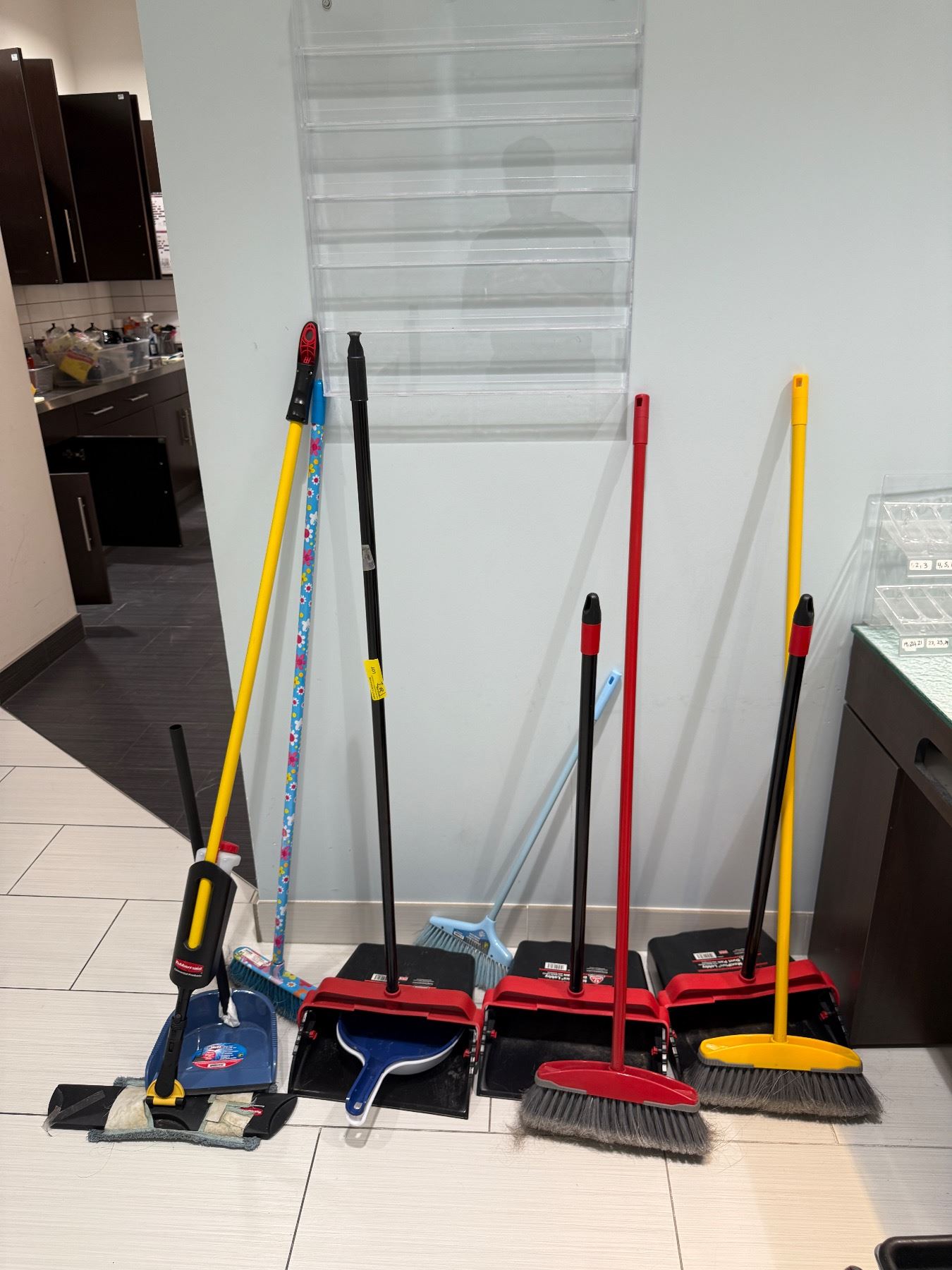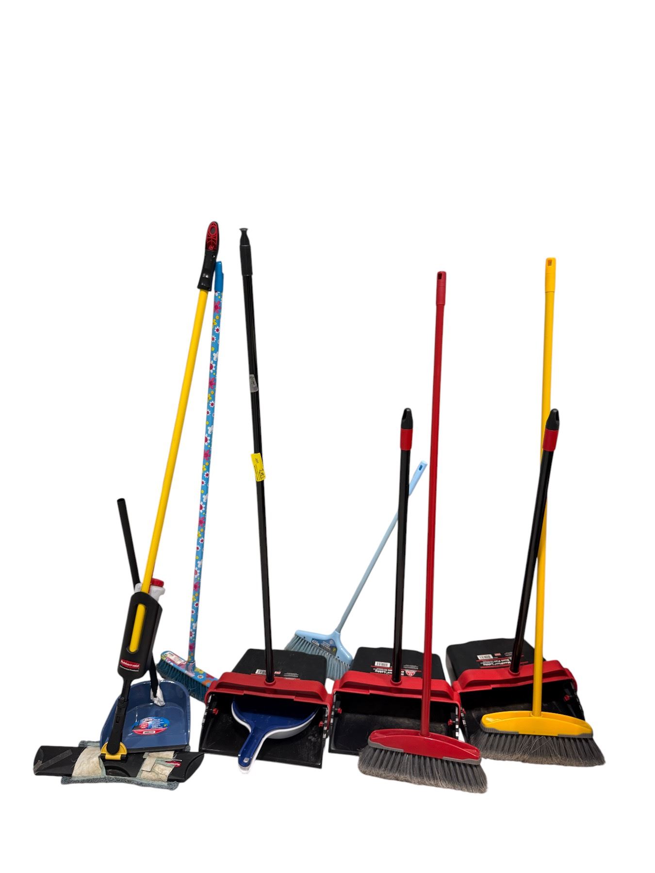Bulk Lot of 10+ Commercial Brooms, Mops, & Lobby Dustpans - O-Cedar, Libman & Spray Mops