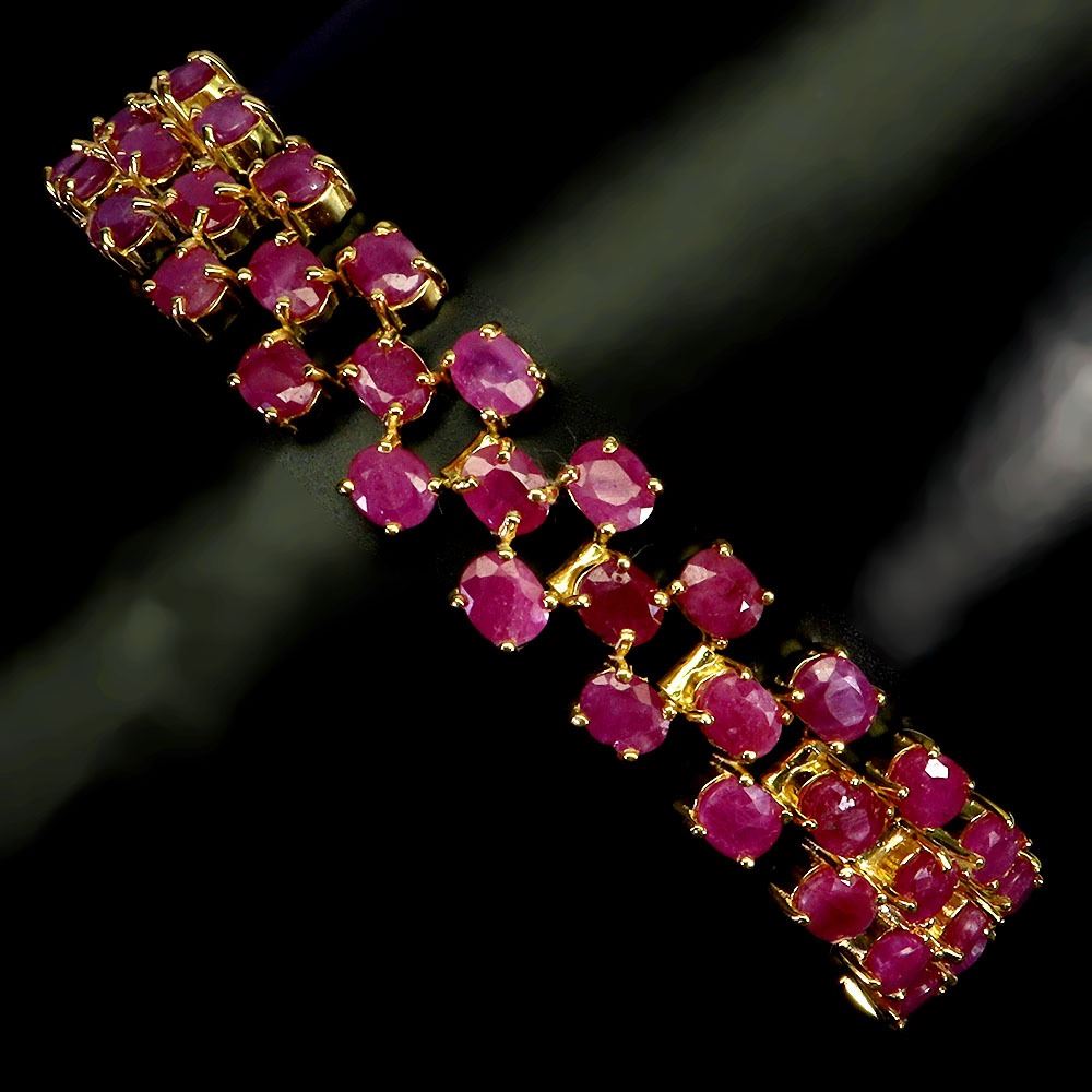 CLASSY 5X3 mm OVAL CUT RUBY BRACELET IN 14K YELLOW PLATED GOLD OVER 925 STERLING SILVER - 8 INCHES LENGTH - APPRAISED REPLACEMENT VALUE CAD 2,520