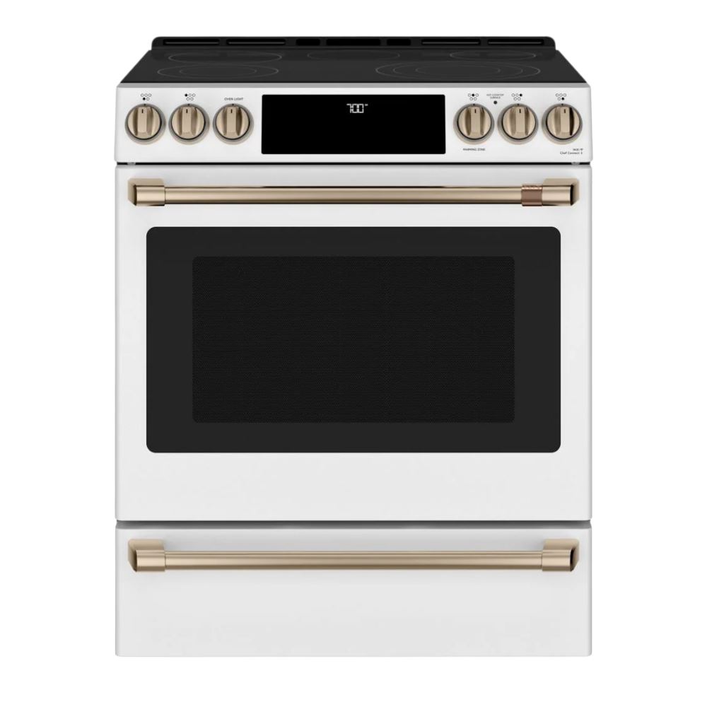 Café 30" Smart Slide-In Front-Control Induction Convection Range White Gold - Retail Price $4,445.99