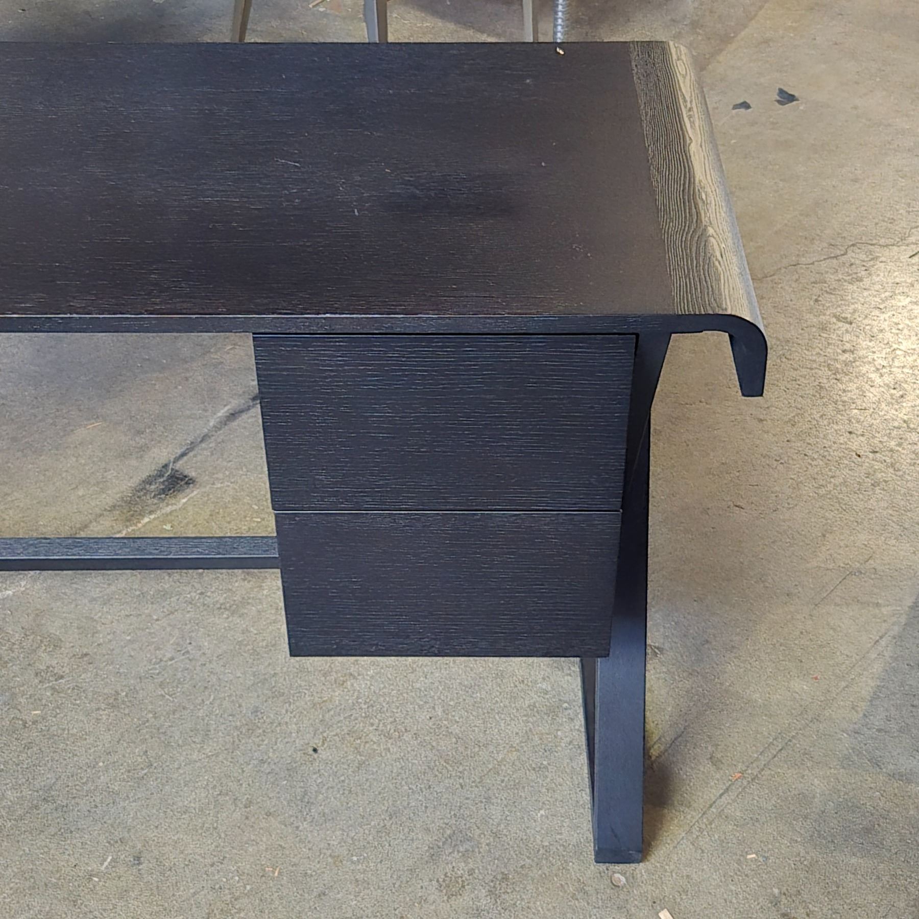 Oak Dark Brown / Black Desk w/ 2 Drawers 7 Curved Edge Top