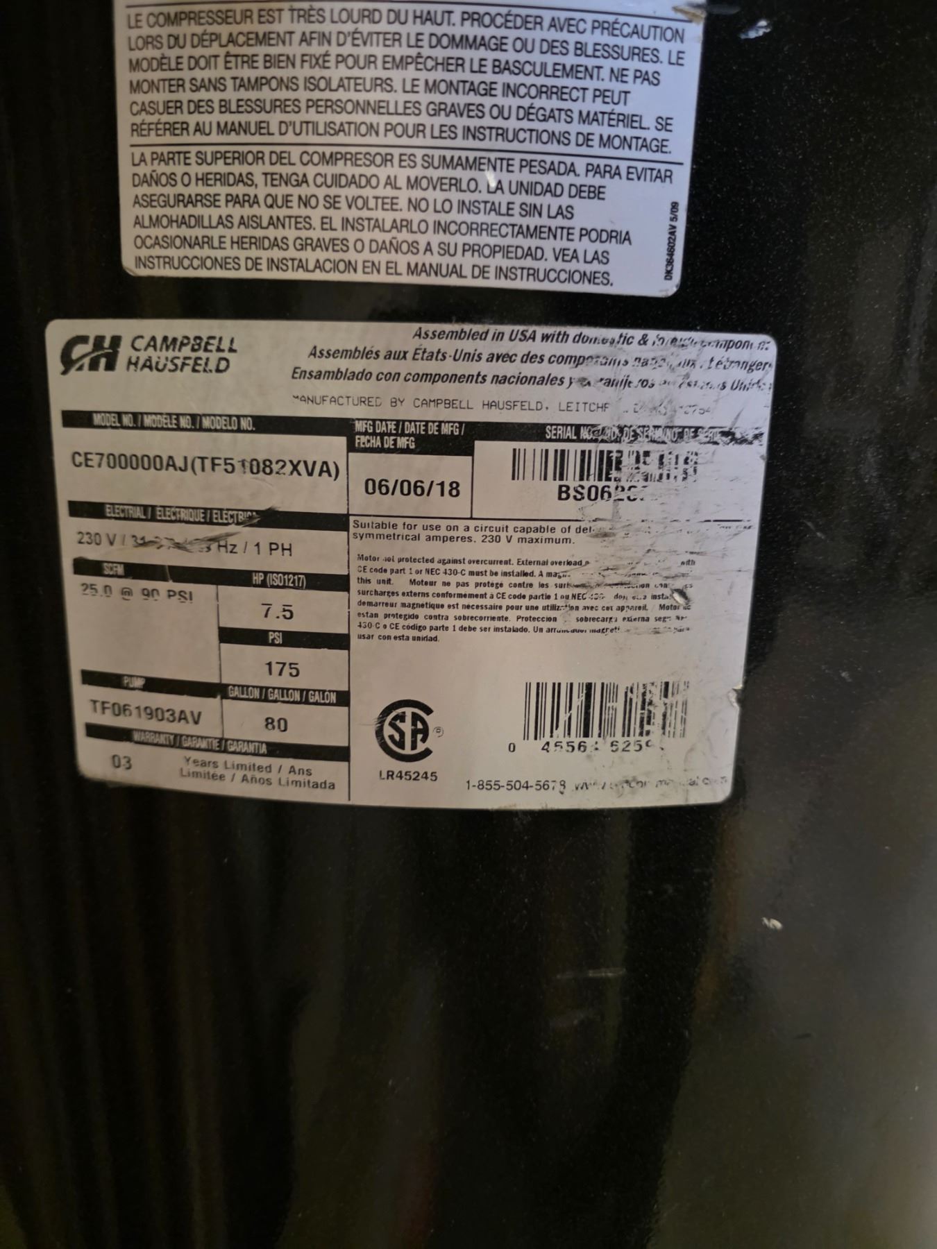 Campbell Hausfeld 175G Air Compressor w/ 7.5hp Motor - 230V Single phase