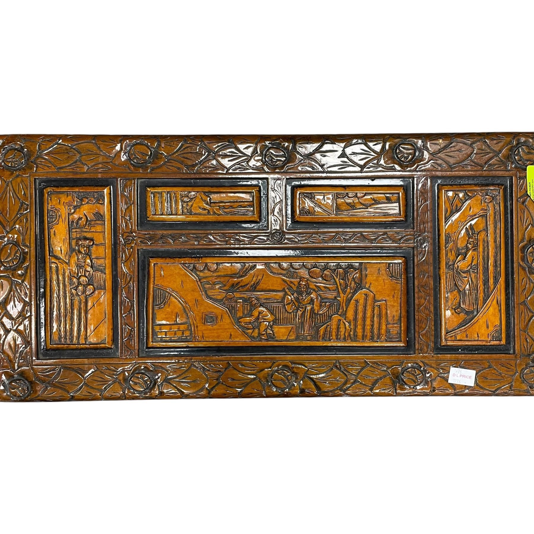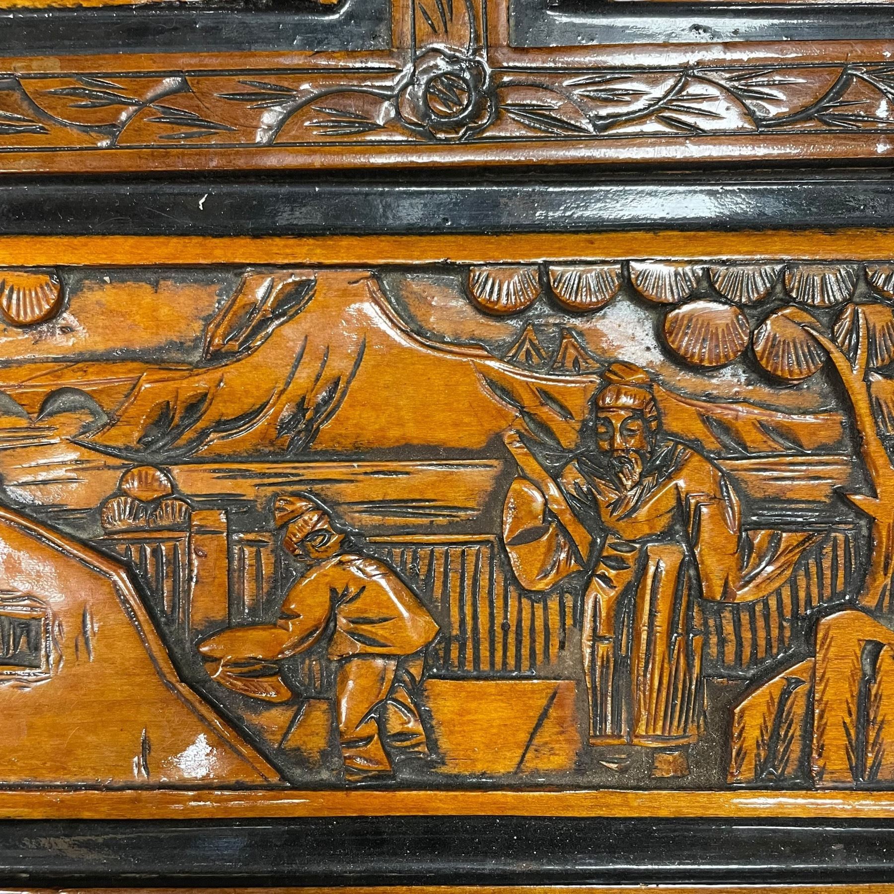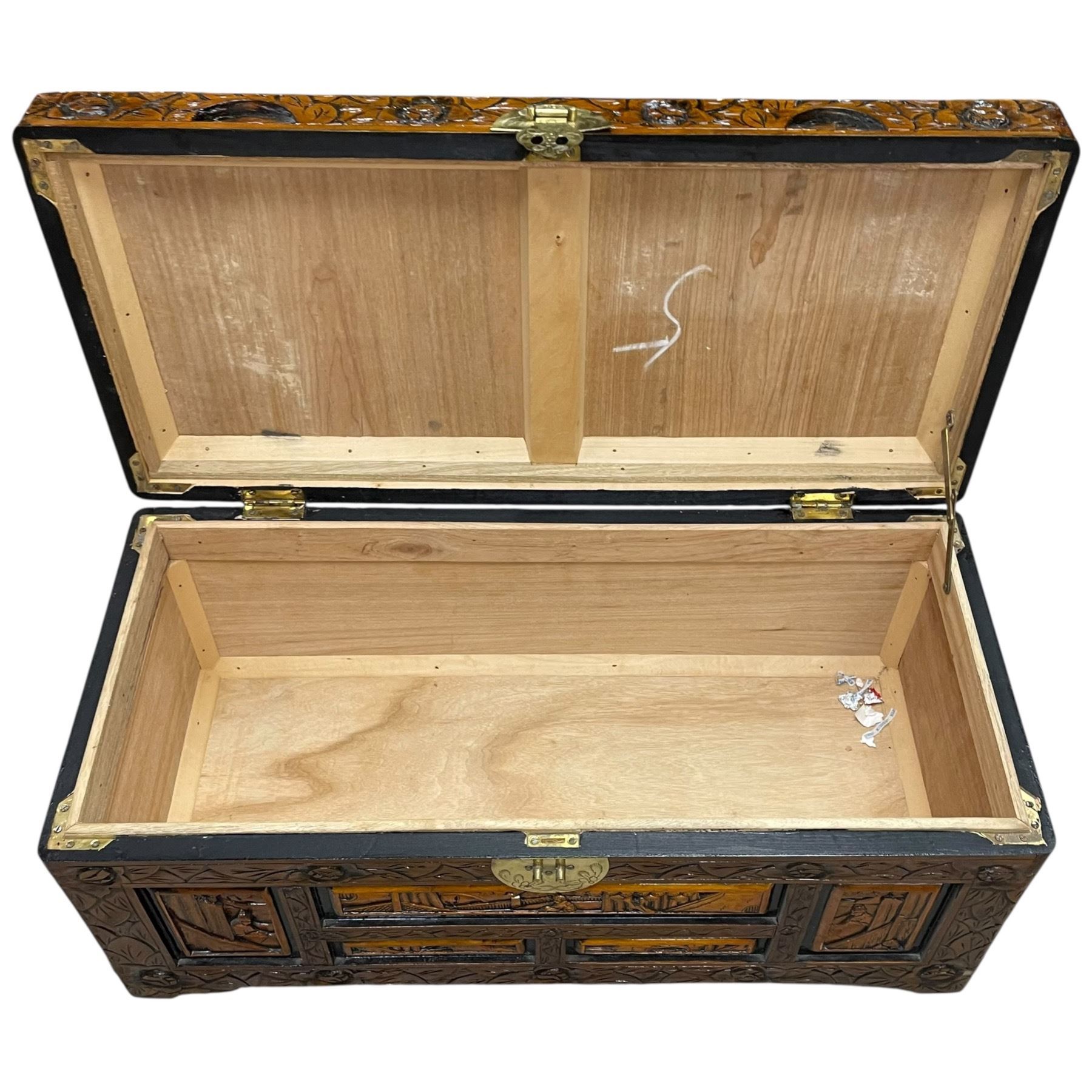 Camphor Chest with Chinese Motif Carvings 27x13x12"
