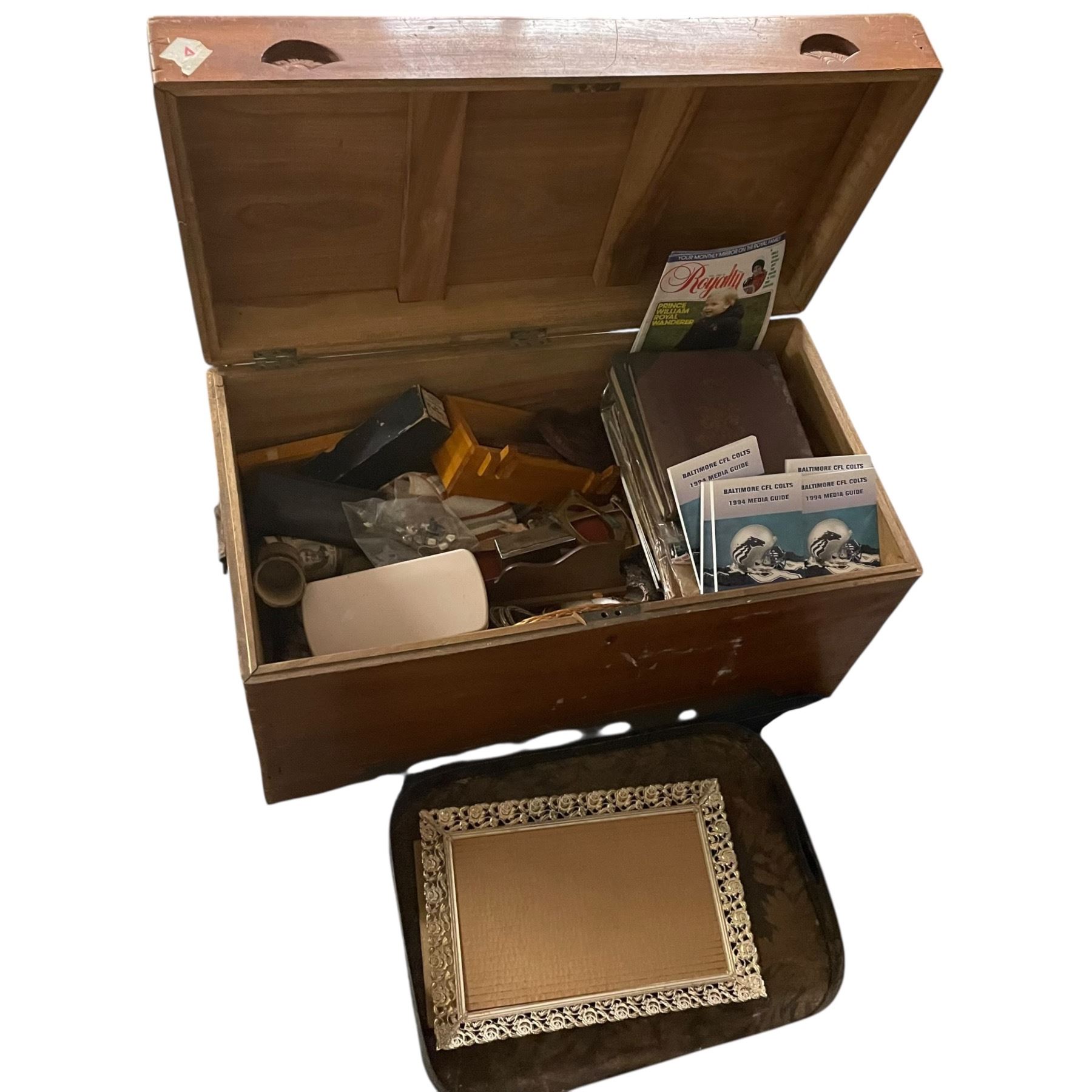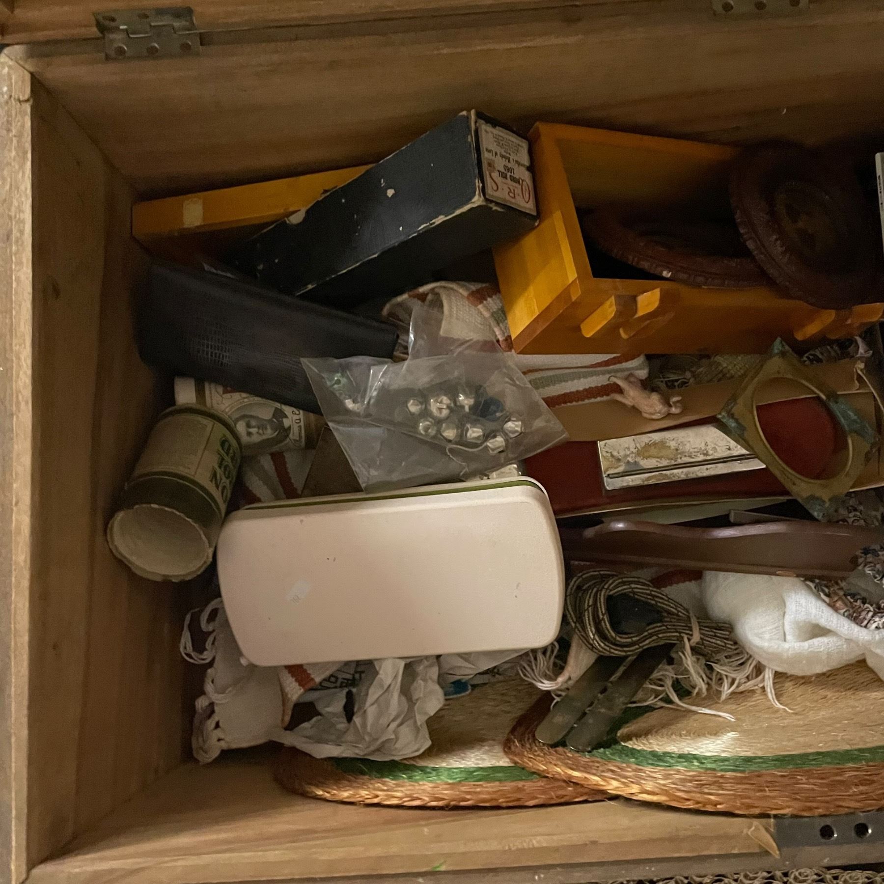 Camphor Lined Wood Chest with Contents 34x18x18"
