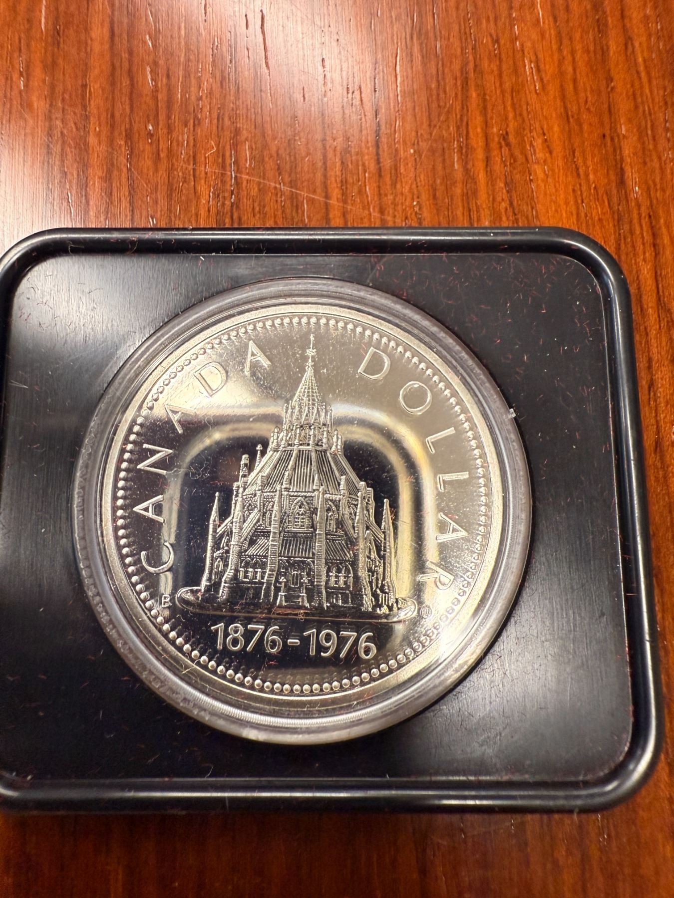 Canadian 1976 Centennial Library of Parliament Silver Dollar - 50% Silver / 50% Copper - 23g Weight