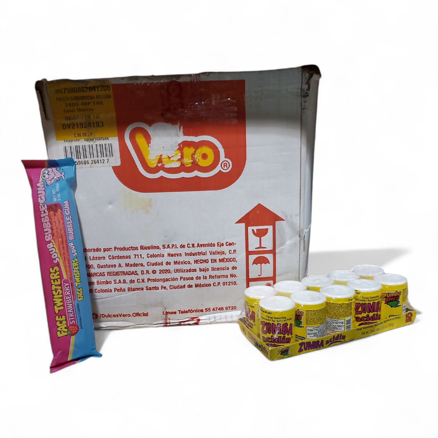 Candies Mix Lot - includes Face Twisters Sour Bubble Gum & Zumba Acidin, 1 Box Mixed (Exp. Date - 2025)