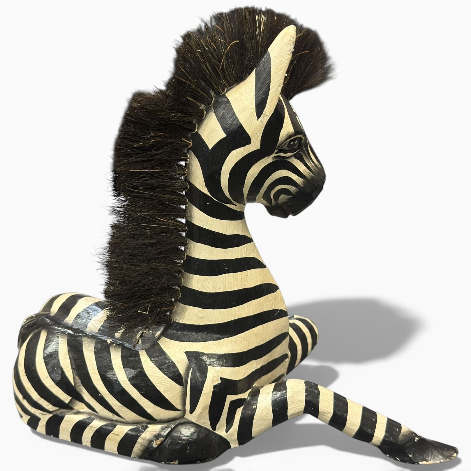 Carved & Painted Wood Zebra Statue * 15" x 8" x 12" tall