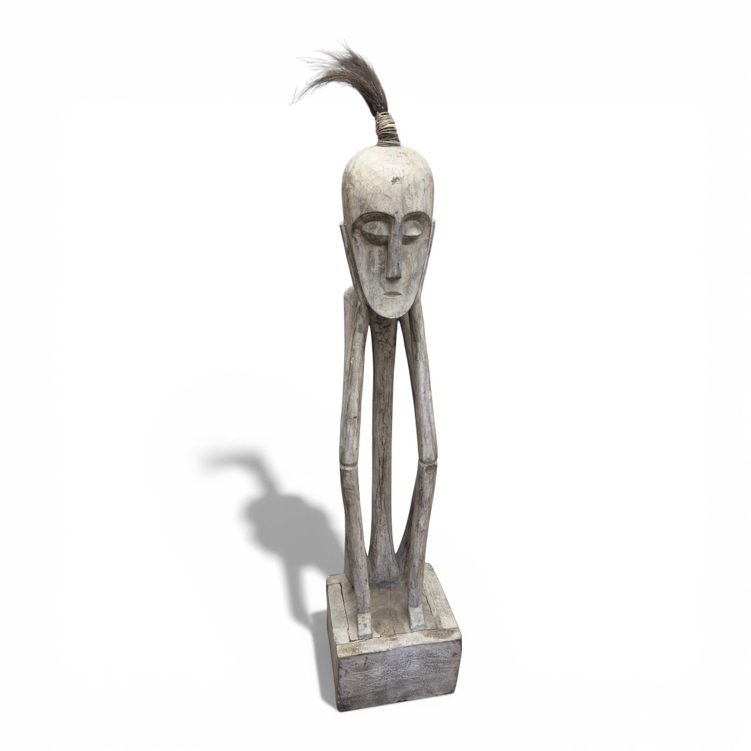 Carved wood statue representing the Bulul, a traditional rice guardian figure from the Ifugao culture in the Philippines. The sculpture stands 43-Inch tall, showcasing a seated Bulul figure symbolizing protection and fertility. Item is as pictured.