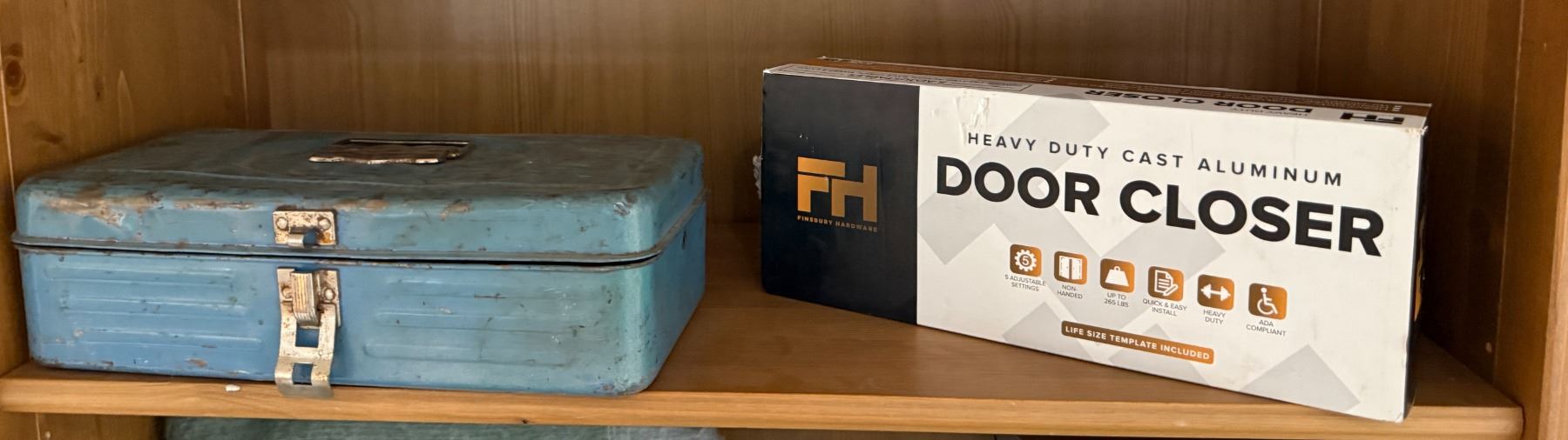 Cast Aluminum Door Closure & Vintage Metal Tool Box