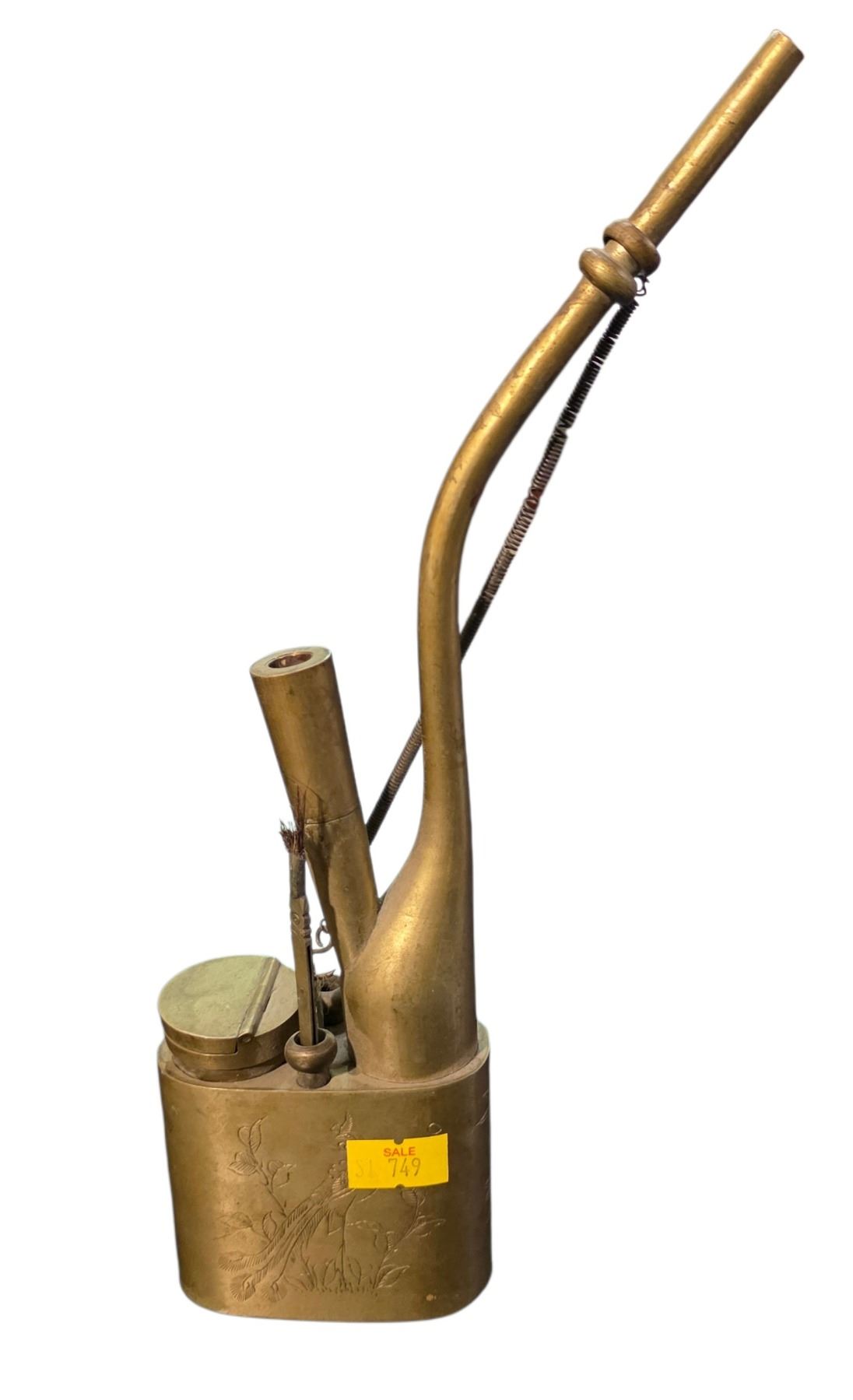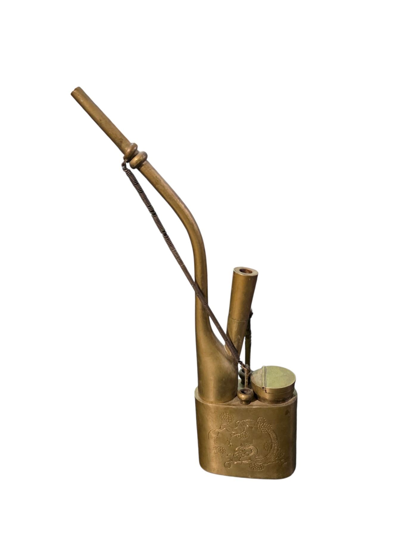Chinese Brass Engraved Water Smoking Pipe, H10.5"