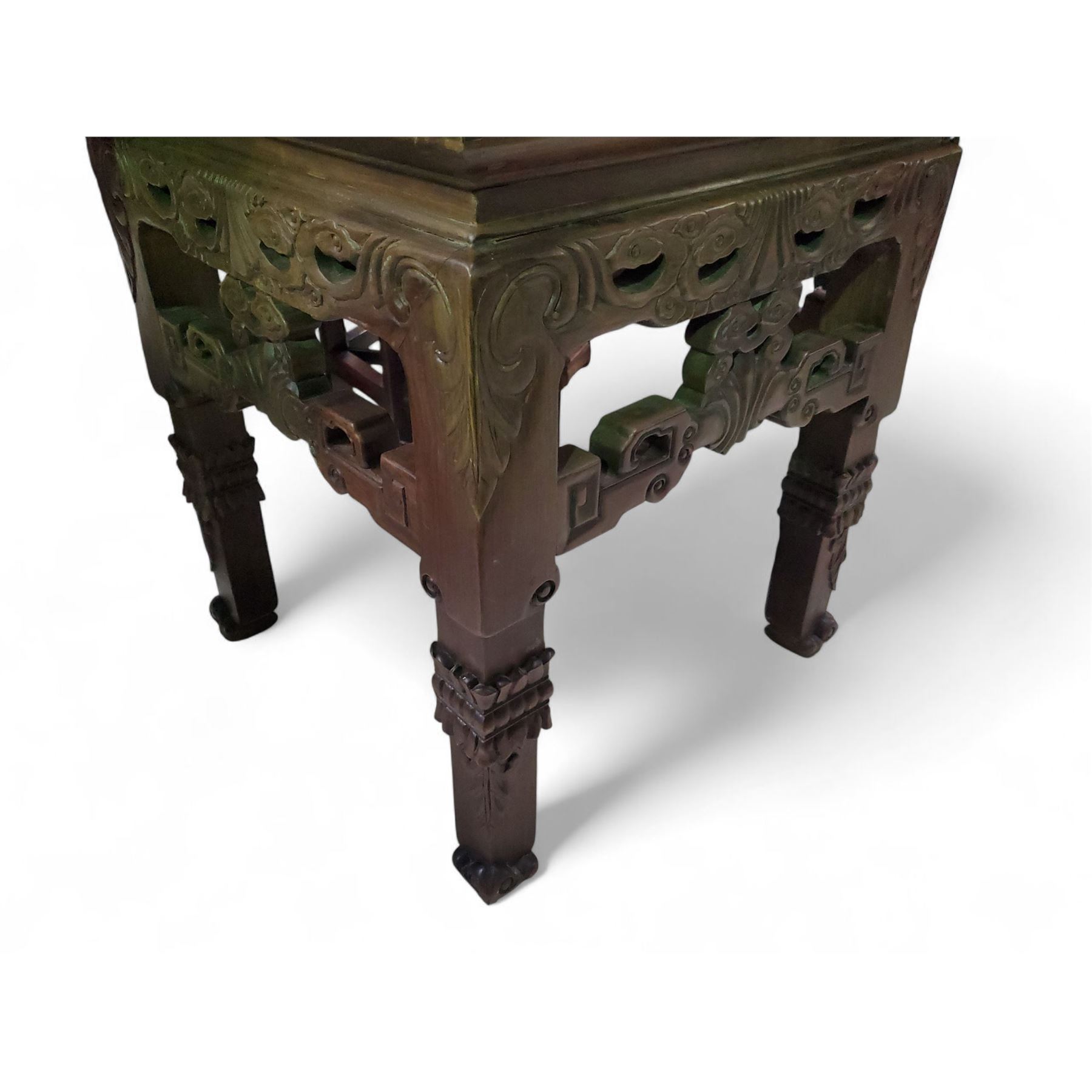 Chinese Carved Hardwood Side Table - Approx. H19" x 16.5" x 16.5"