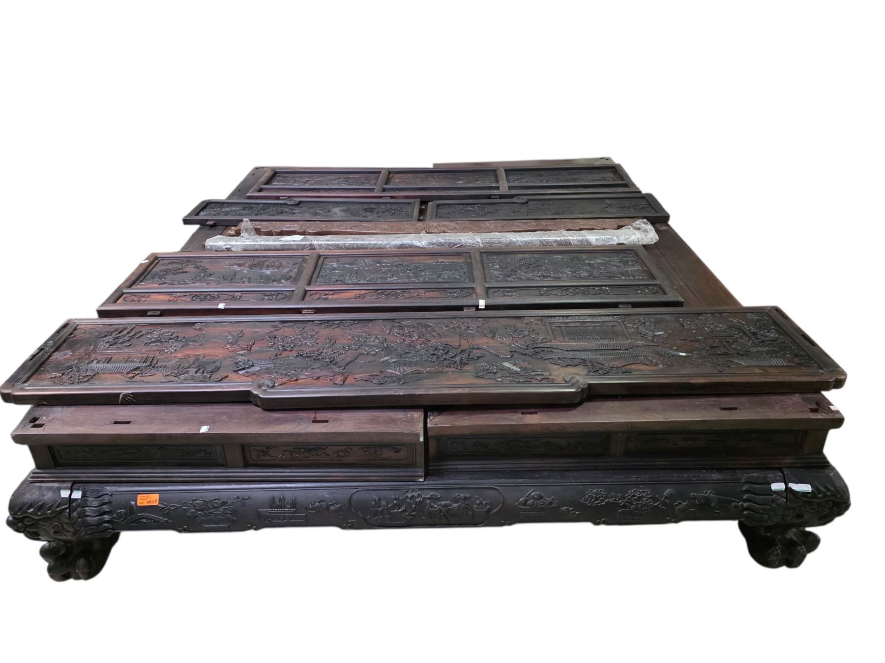Chinese Hardwood Bed Frame, Approx. H20" x W78" x L91"
