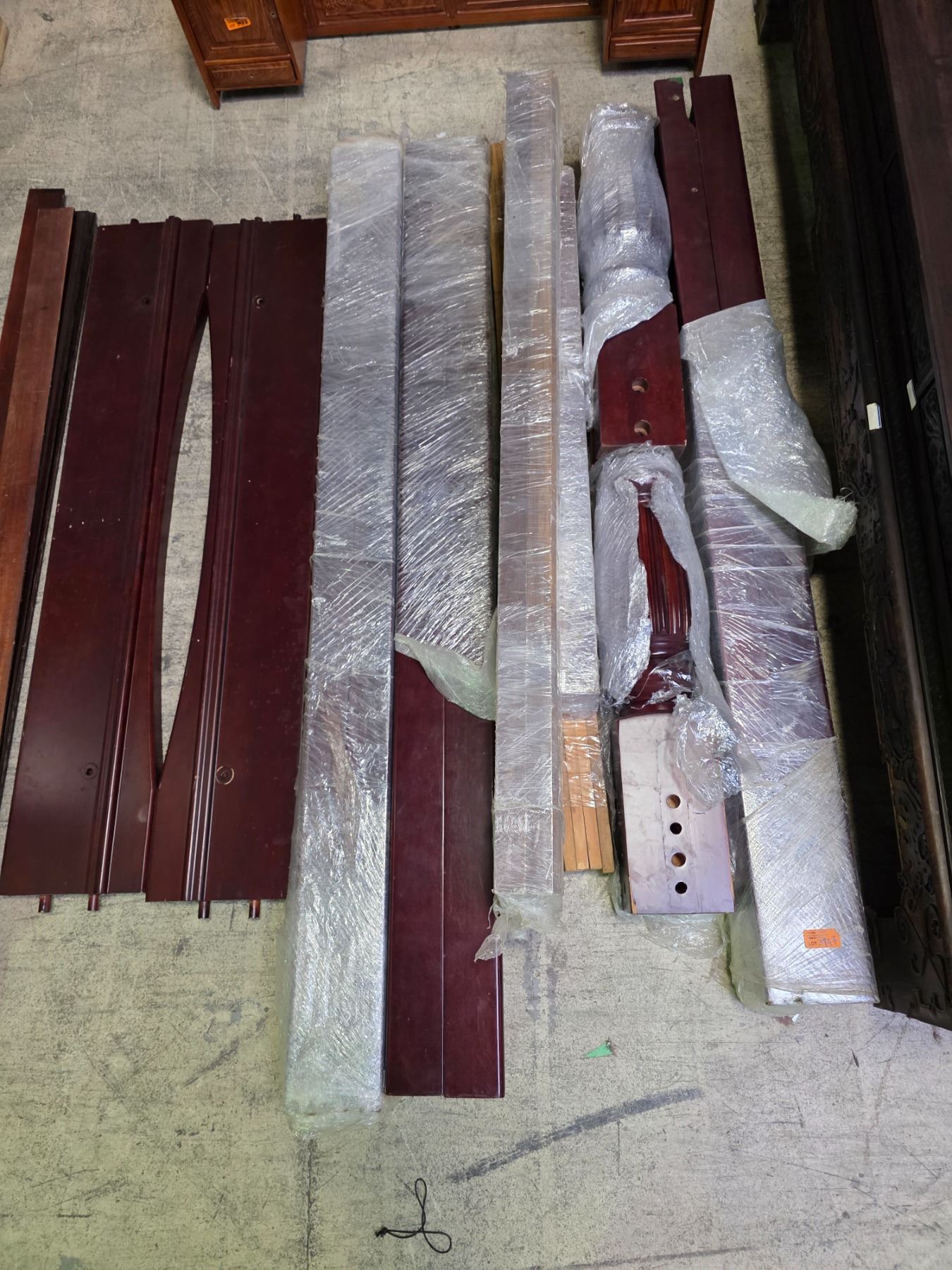 Chinese Hardwood Furniture Parts: Bed Sideboards & Table Legs - Mixed Group, Some Carved