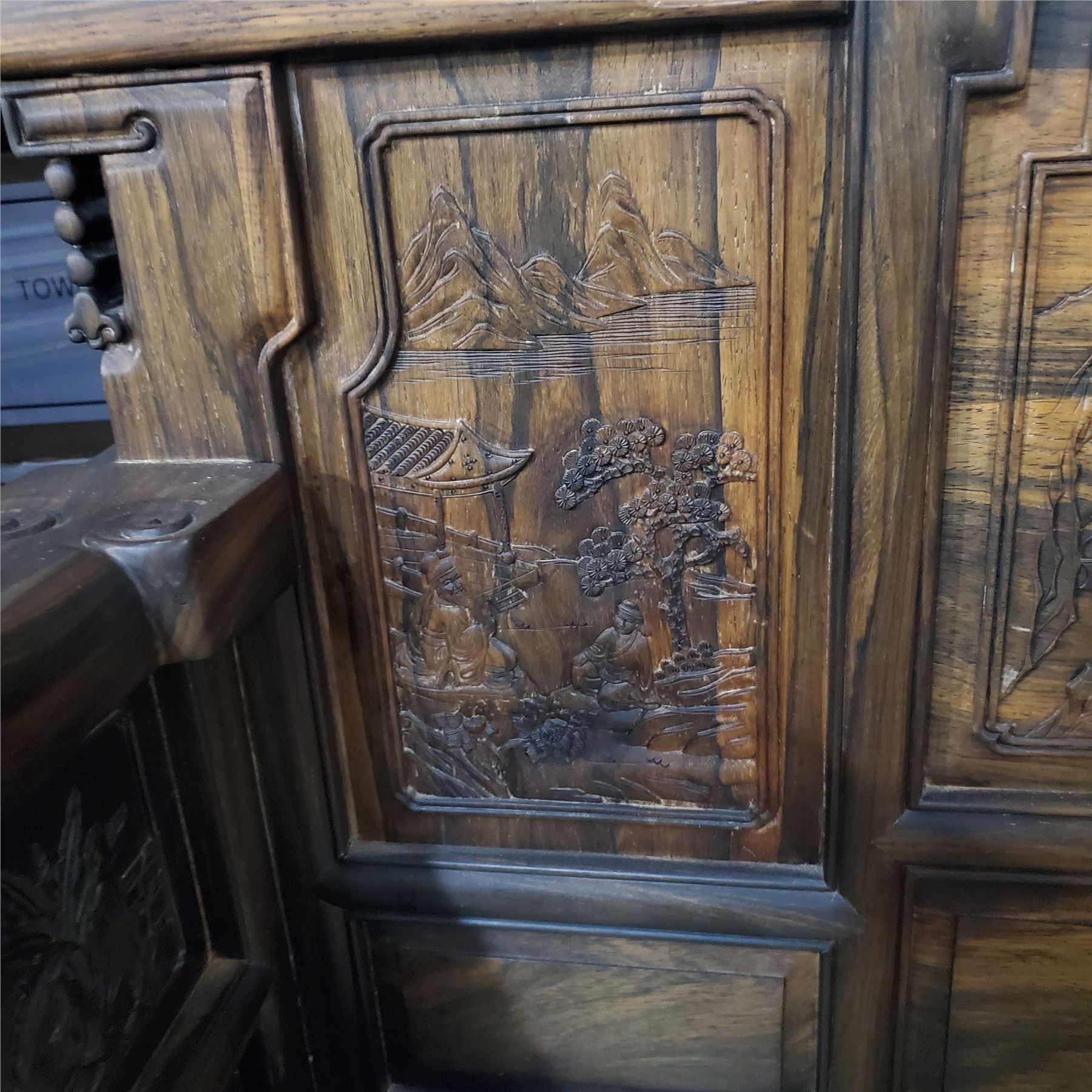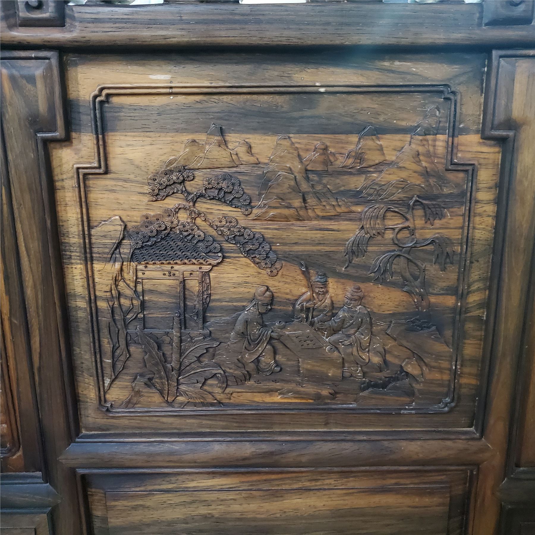 Chinese Hardwood “Landscape & Scholar” Armchair - Approx. H42" x W38.5" x D25.5"