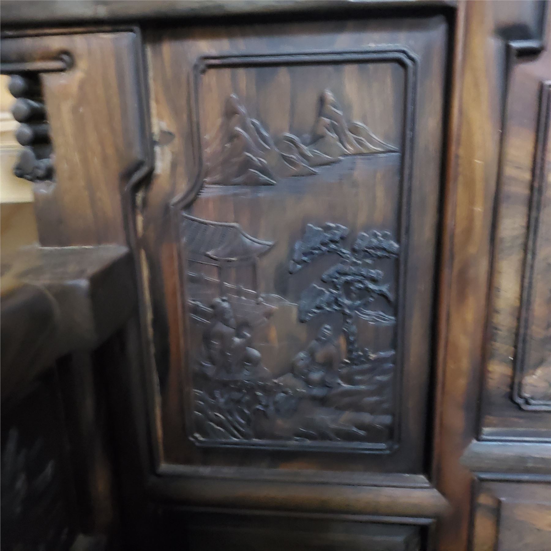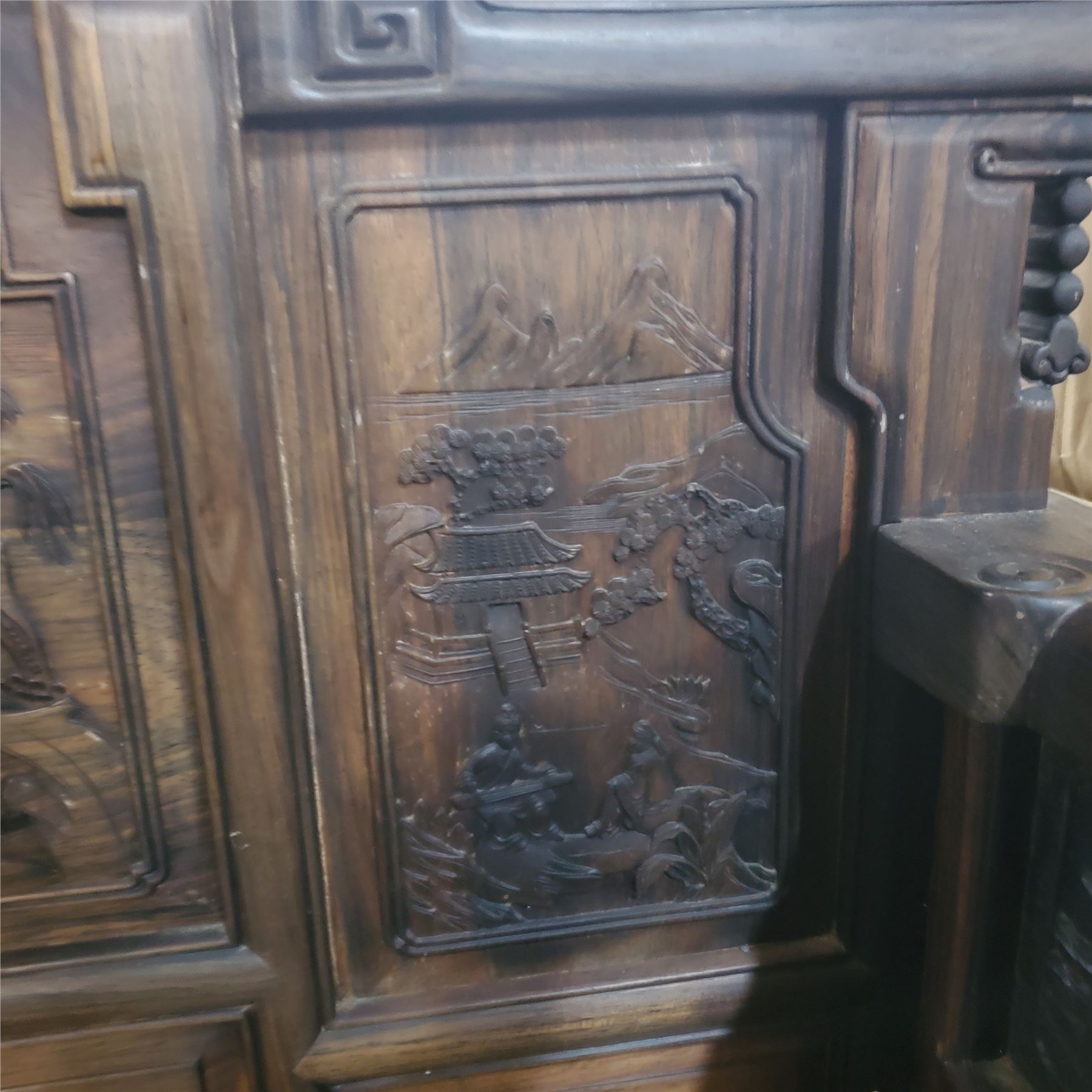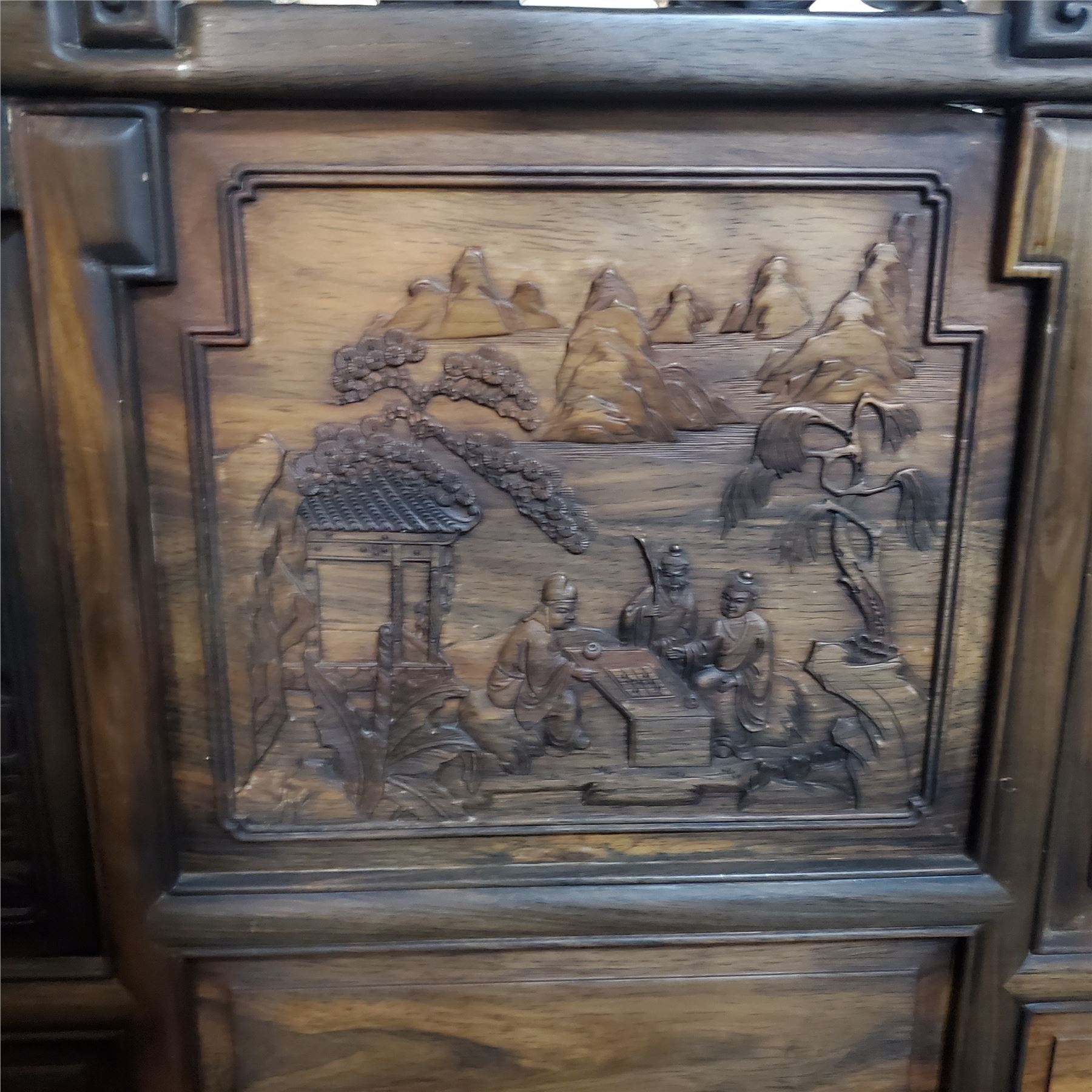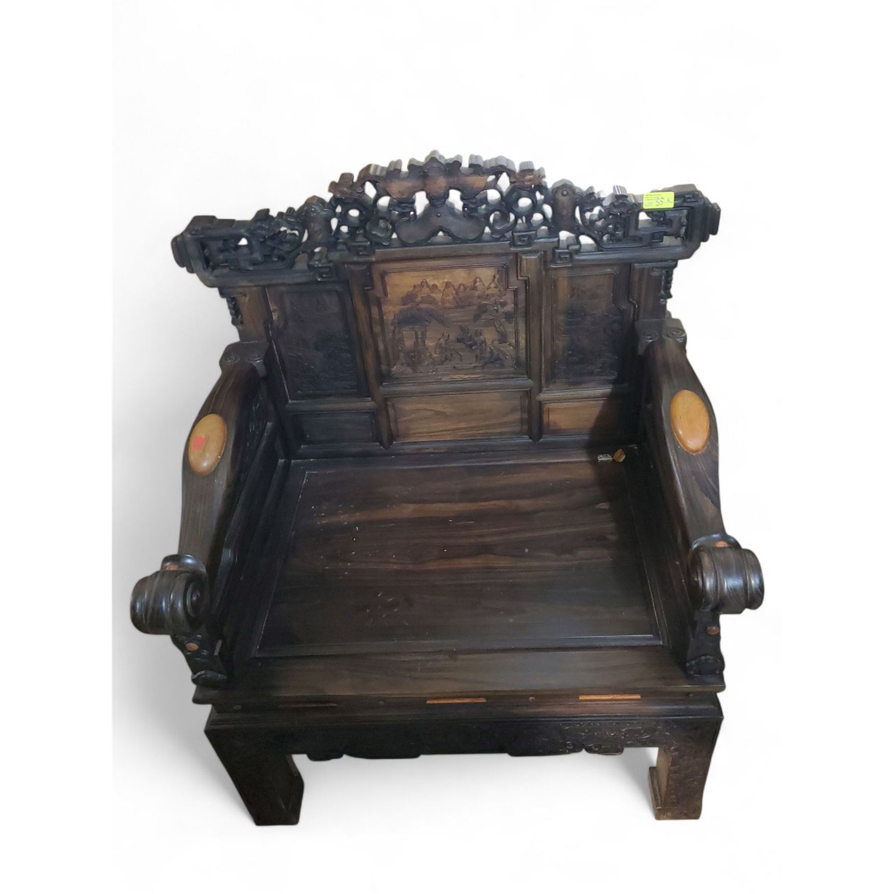 Chinese Hardwood “Landscape & Scholar” Armchair - Approx. H43" x W39" x D26"