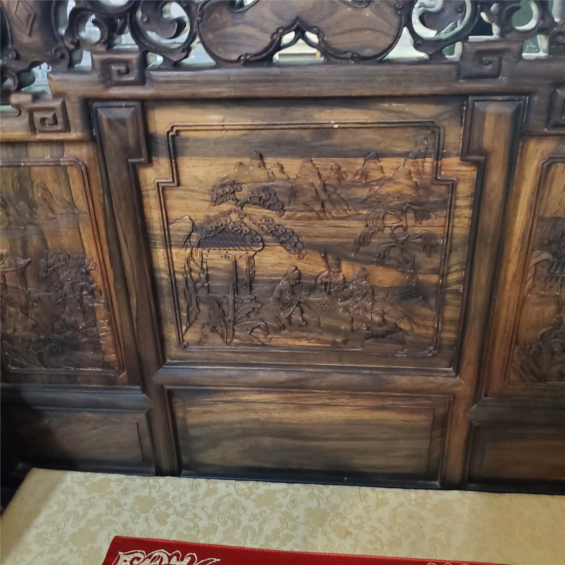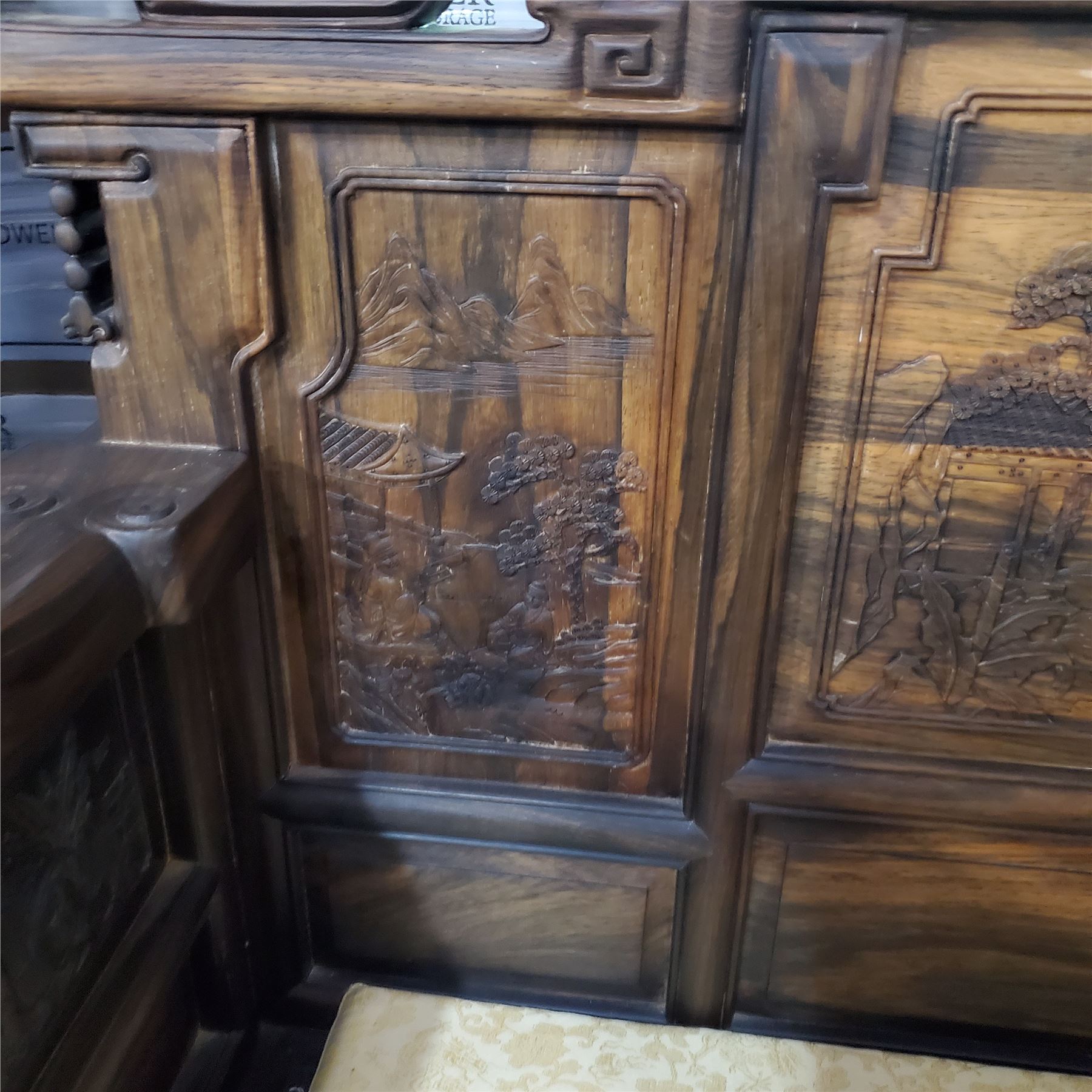 Chinese Hardwood “Landscape & Scholar” Armchair - Approx. H47" X W39" x D25.5"