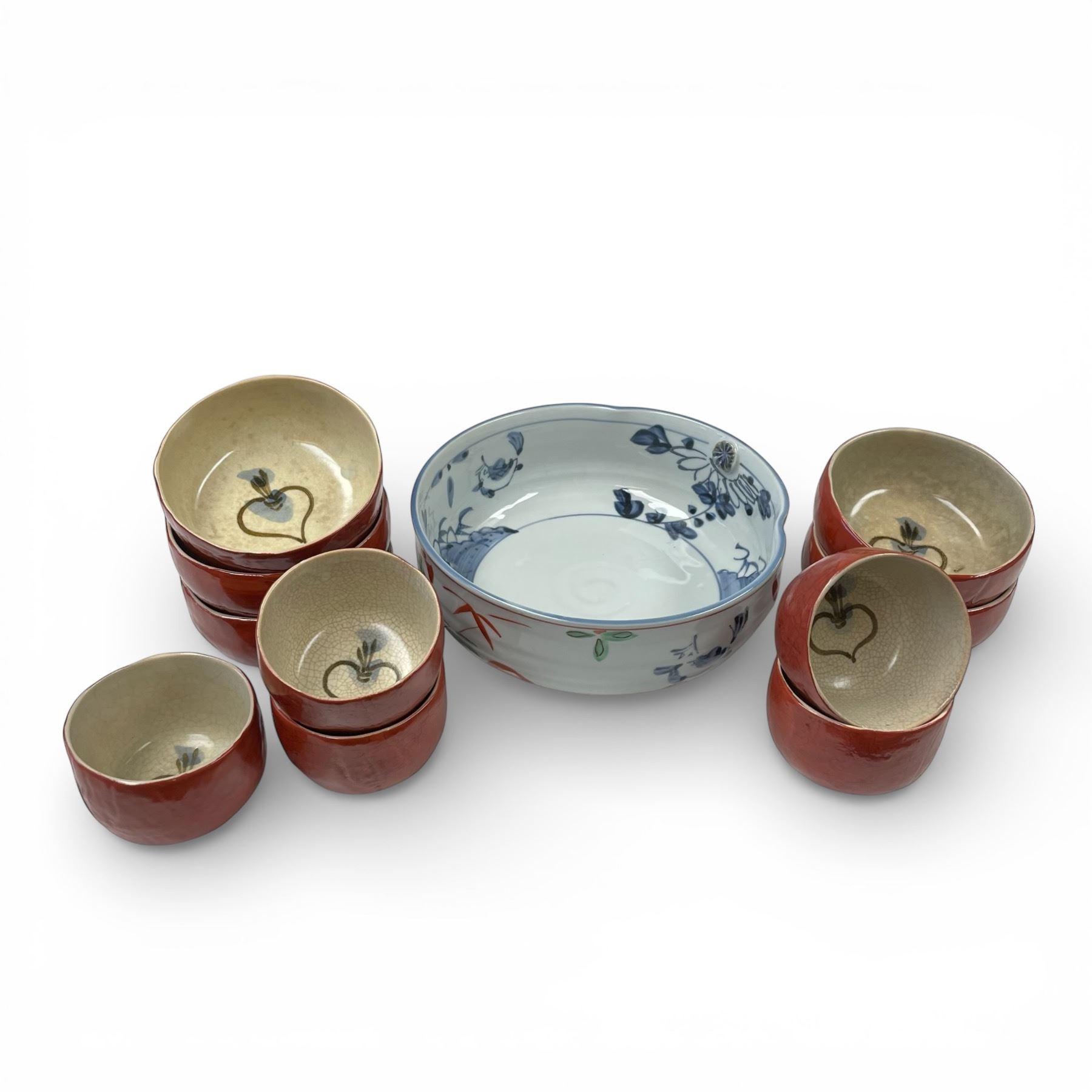 Chinese Porcelain Bowl & Glazed Pottery Tea Cups & Small Bowls