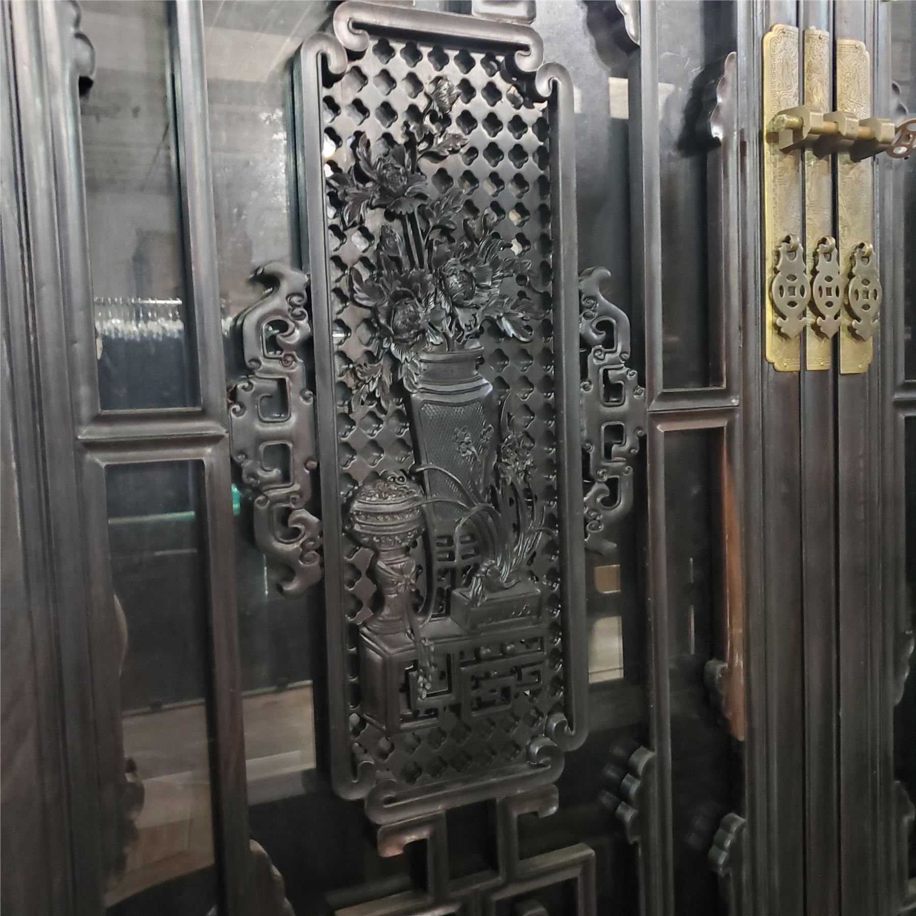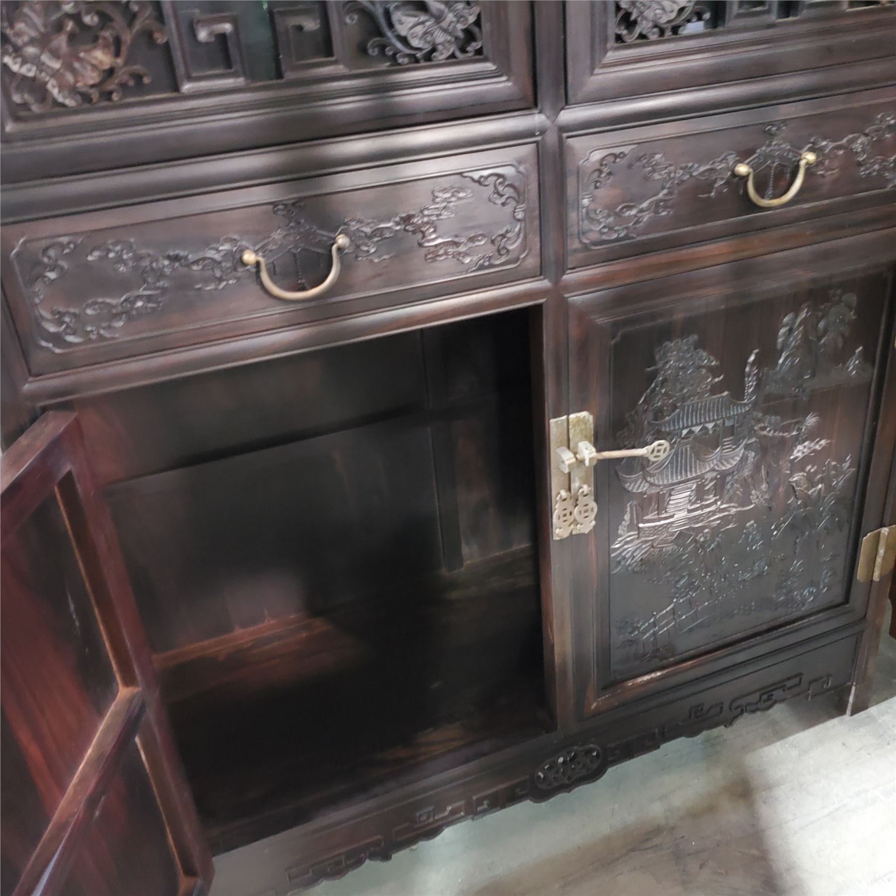 Chinese Qing-Style Carved Hardwood Cabinet, Approx. H78.5" x W40" x D15.5"