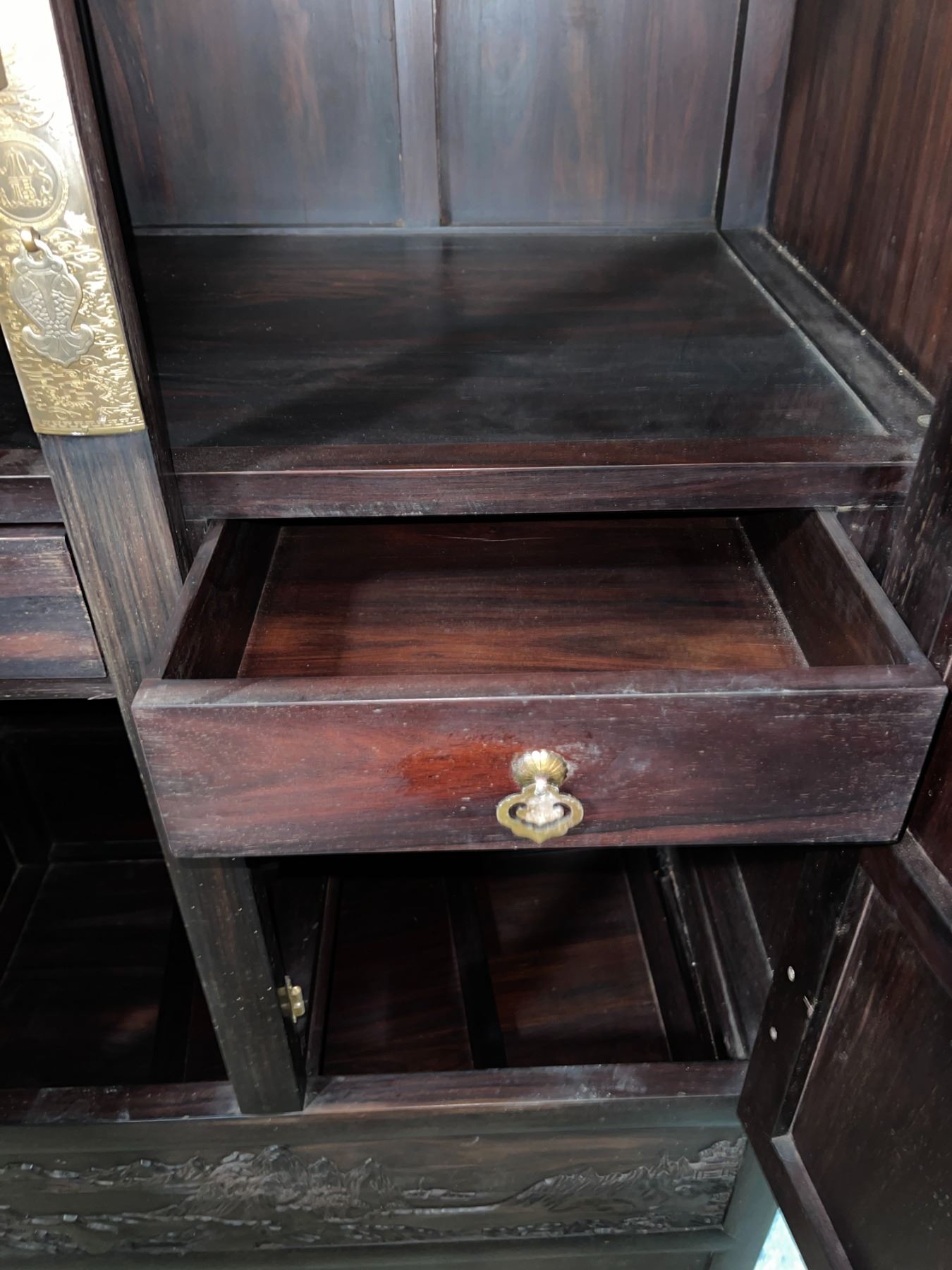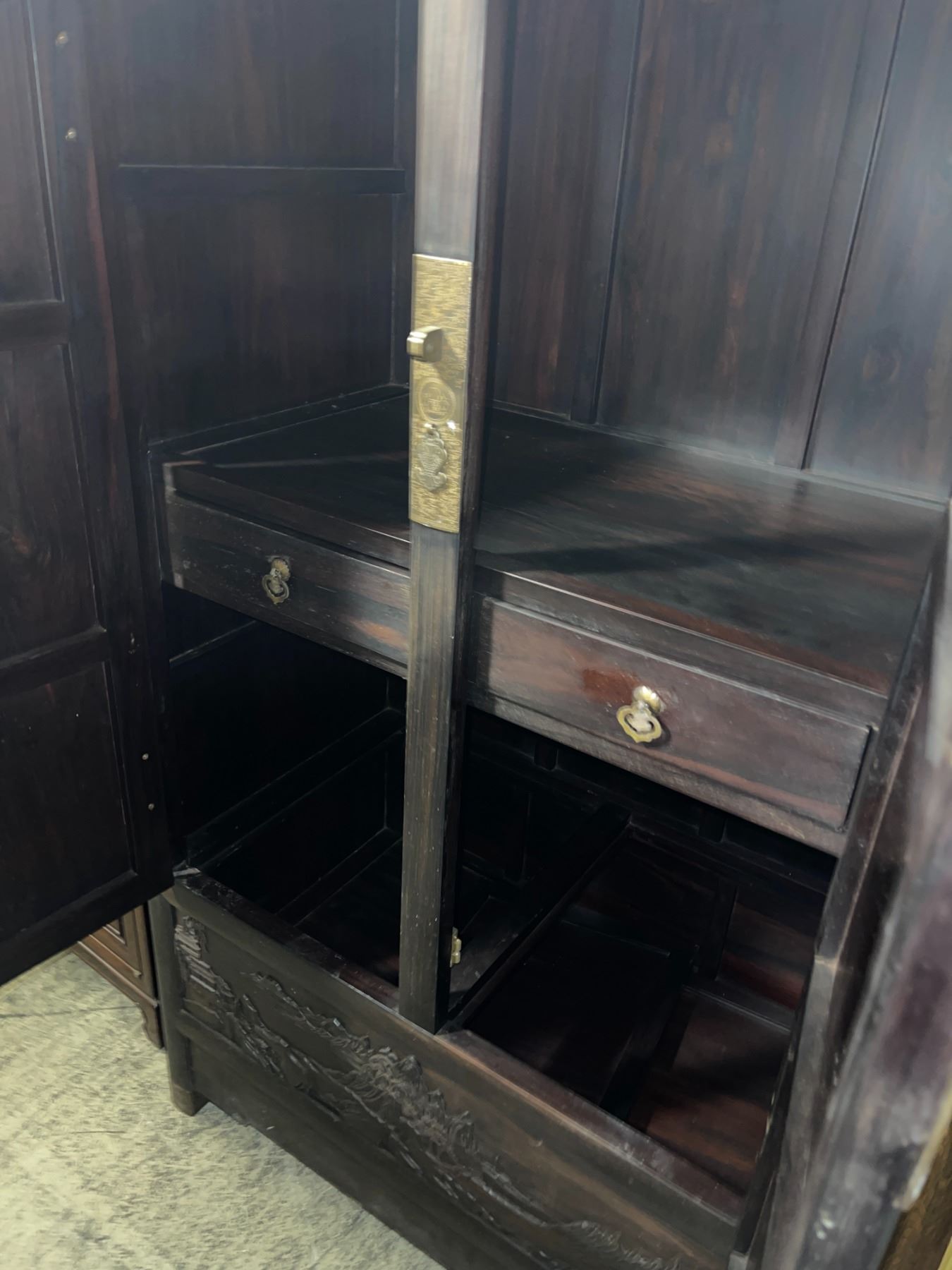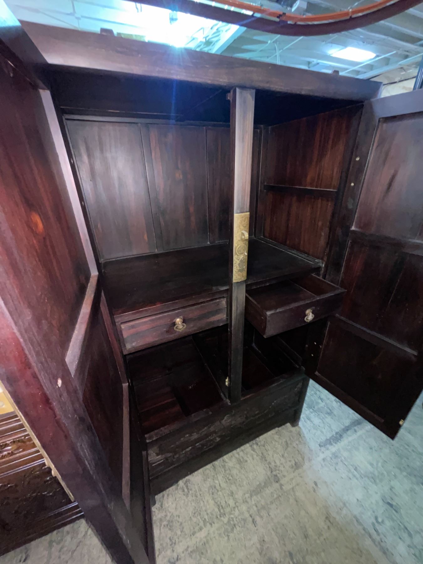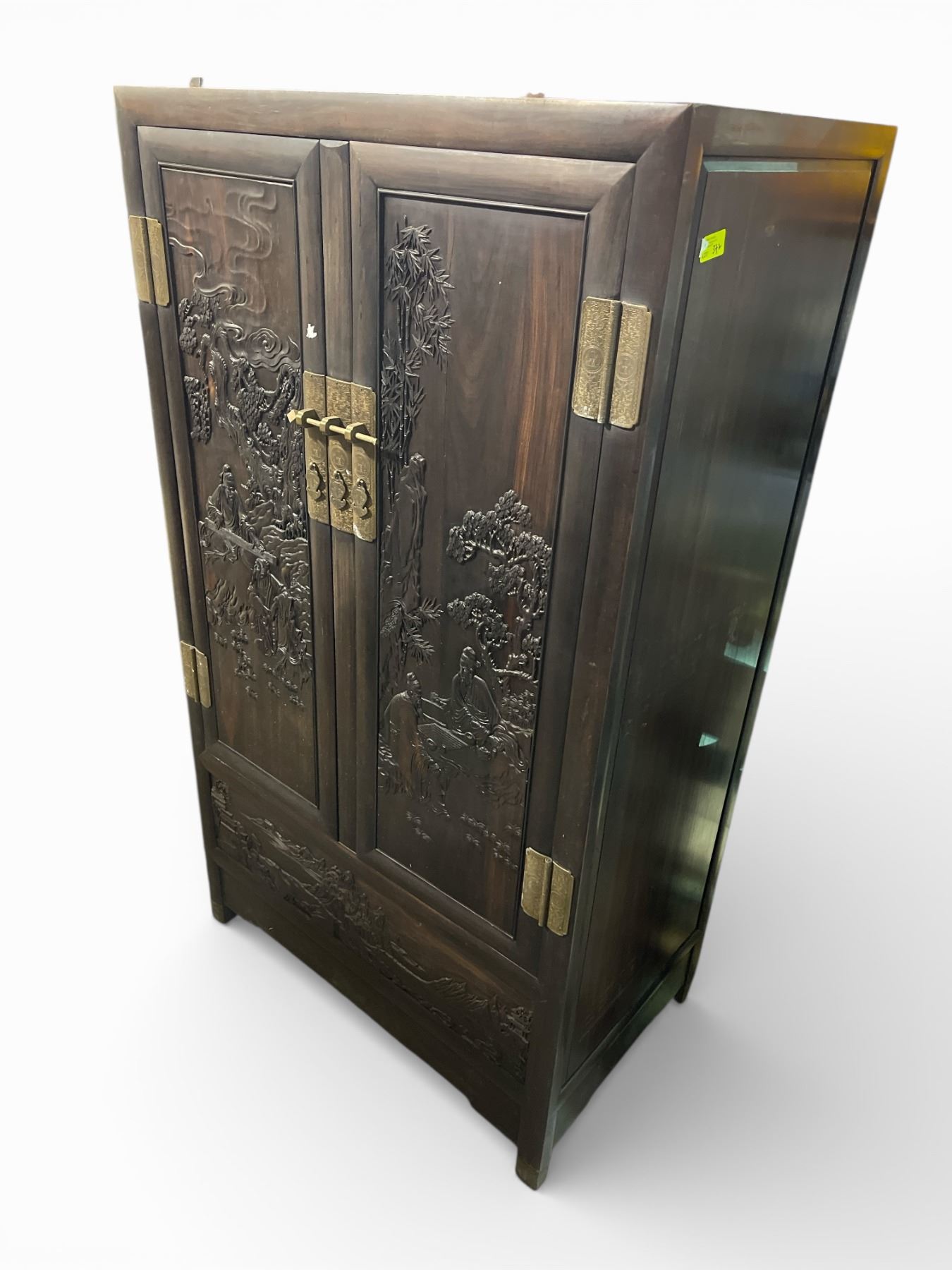 Chinese Qing-Style Carved Hardwood Cabinet, Approx. H69" x W39" x D23"