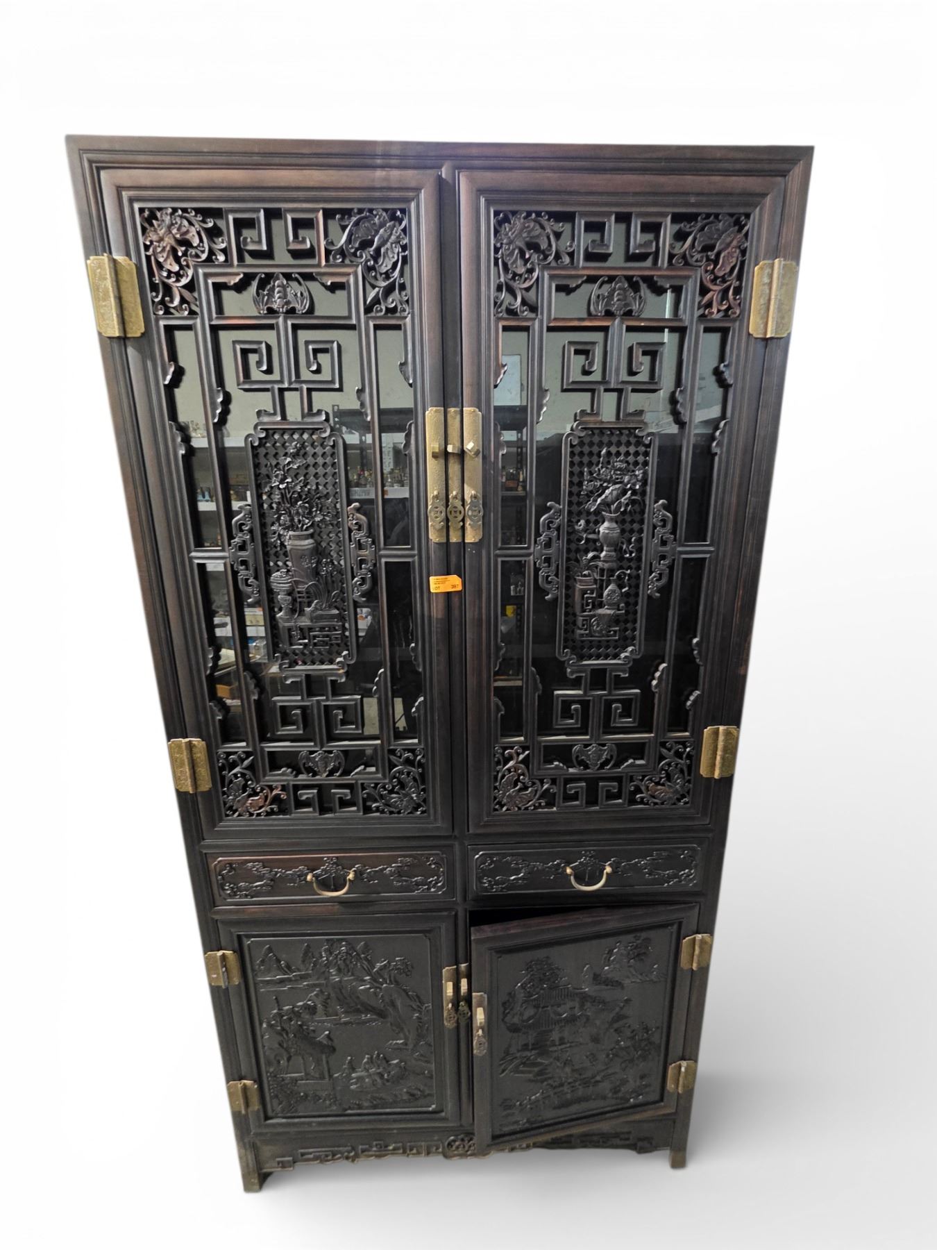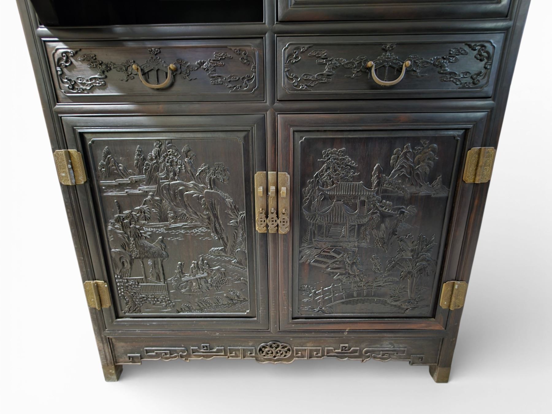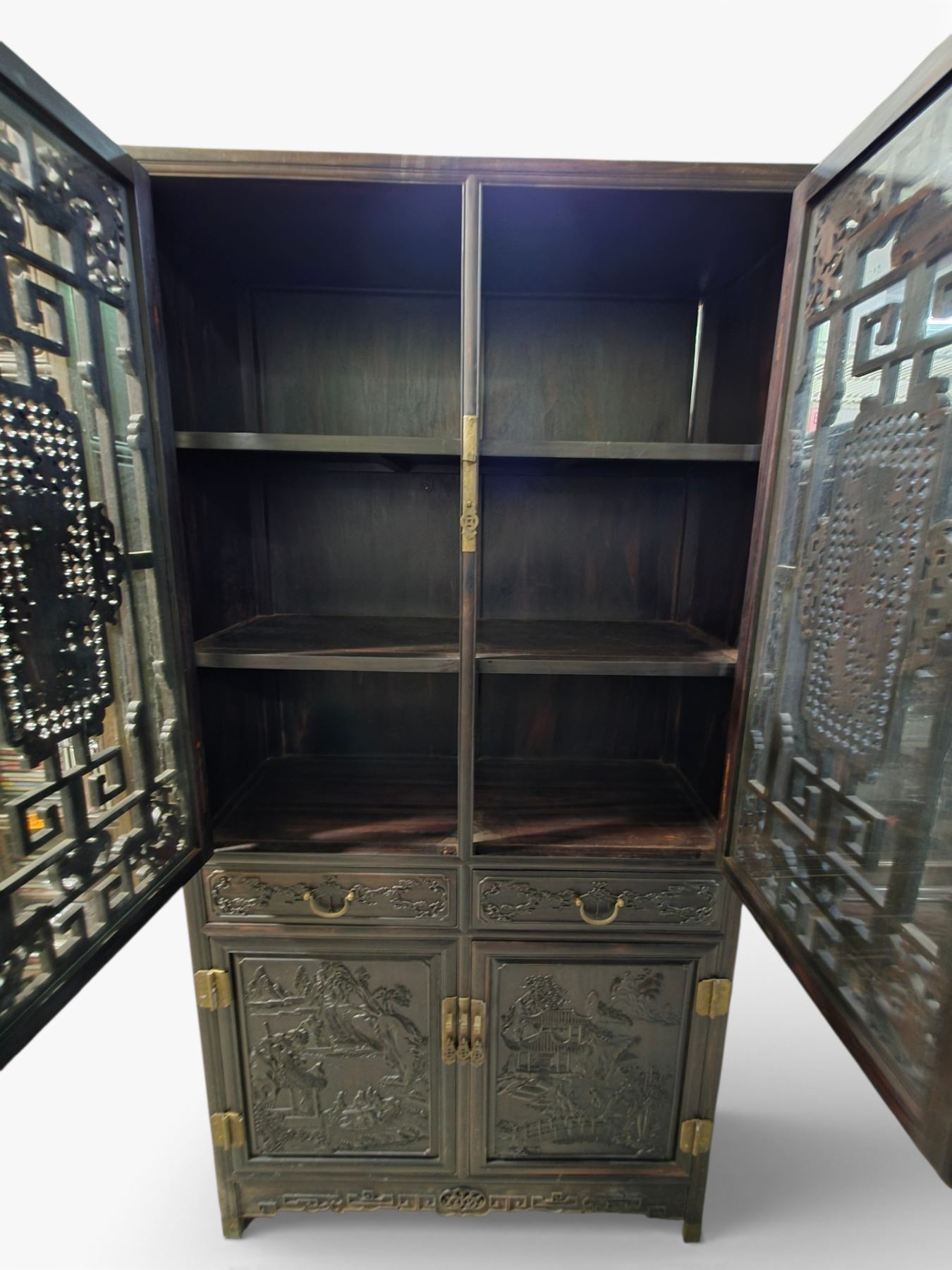 Chinese Qing-Style Carved Hardwood Cabinet, Approx. H78.5" x W40" x D15.5"