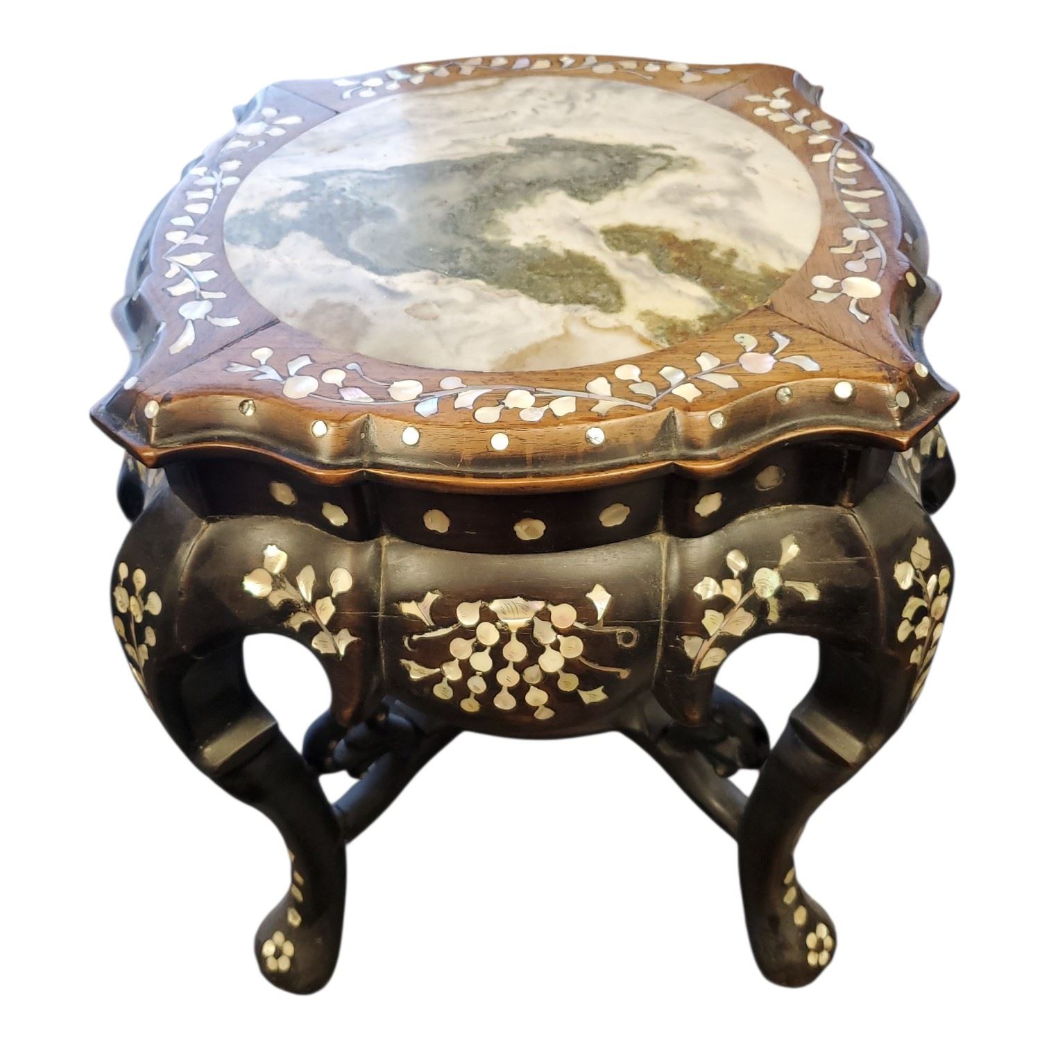 Chinese Rosewood Plant Stand Marble Top Mother of Pearl Inlay 18x18x18-Inch