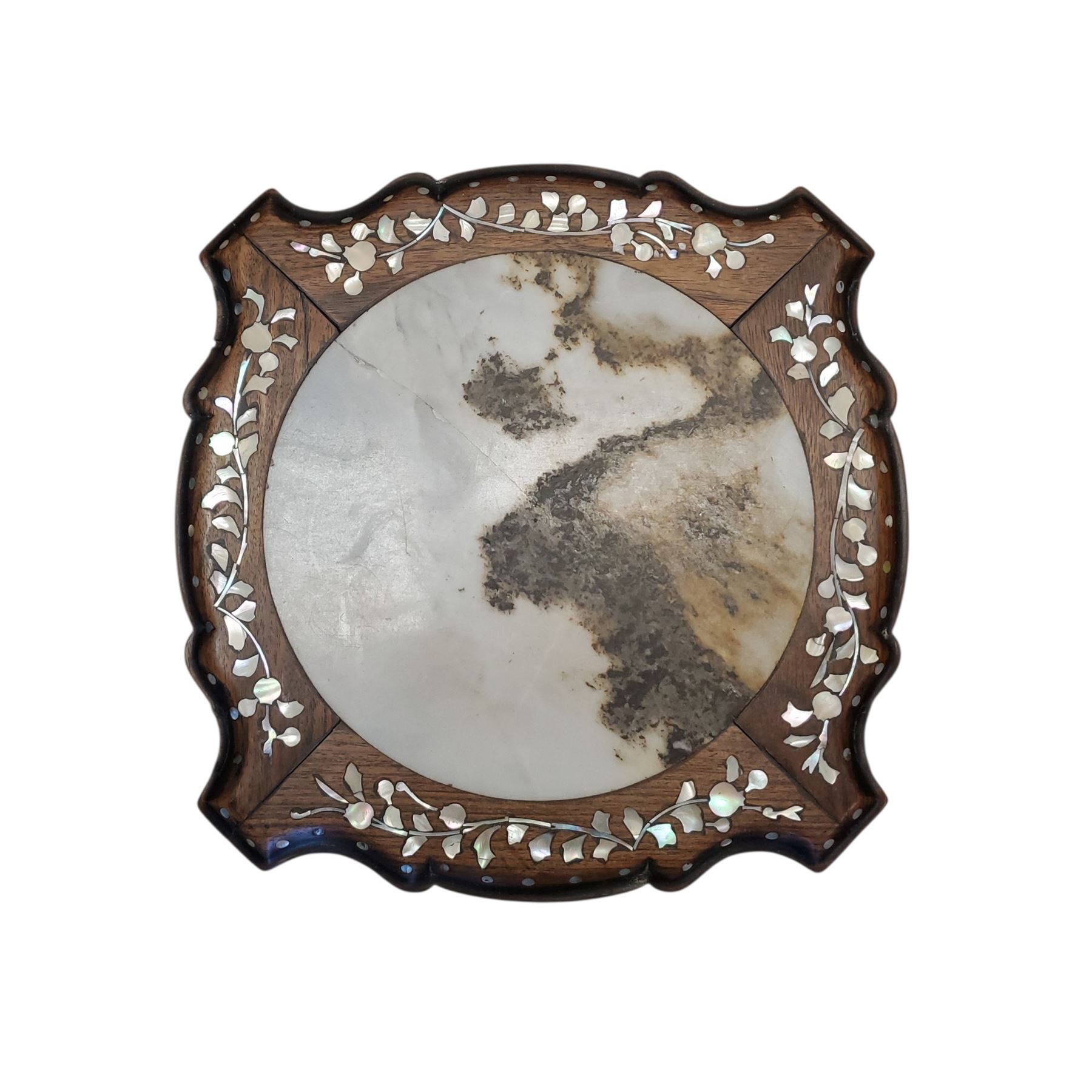 Chinese Rosewood Plant Stand Marble Top Mother of Pearl Inlay 18x18x18-Inch