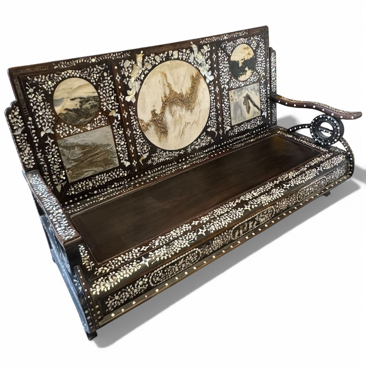 Chinese Settle/Bench with Mother-of-Pearl Inlay and Marble Inserts - 64" long