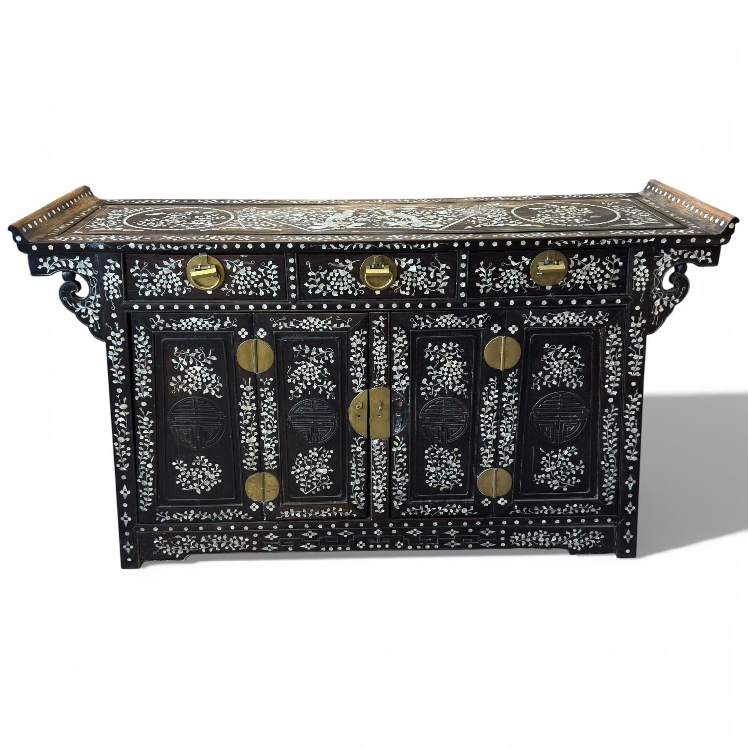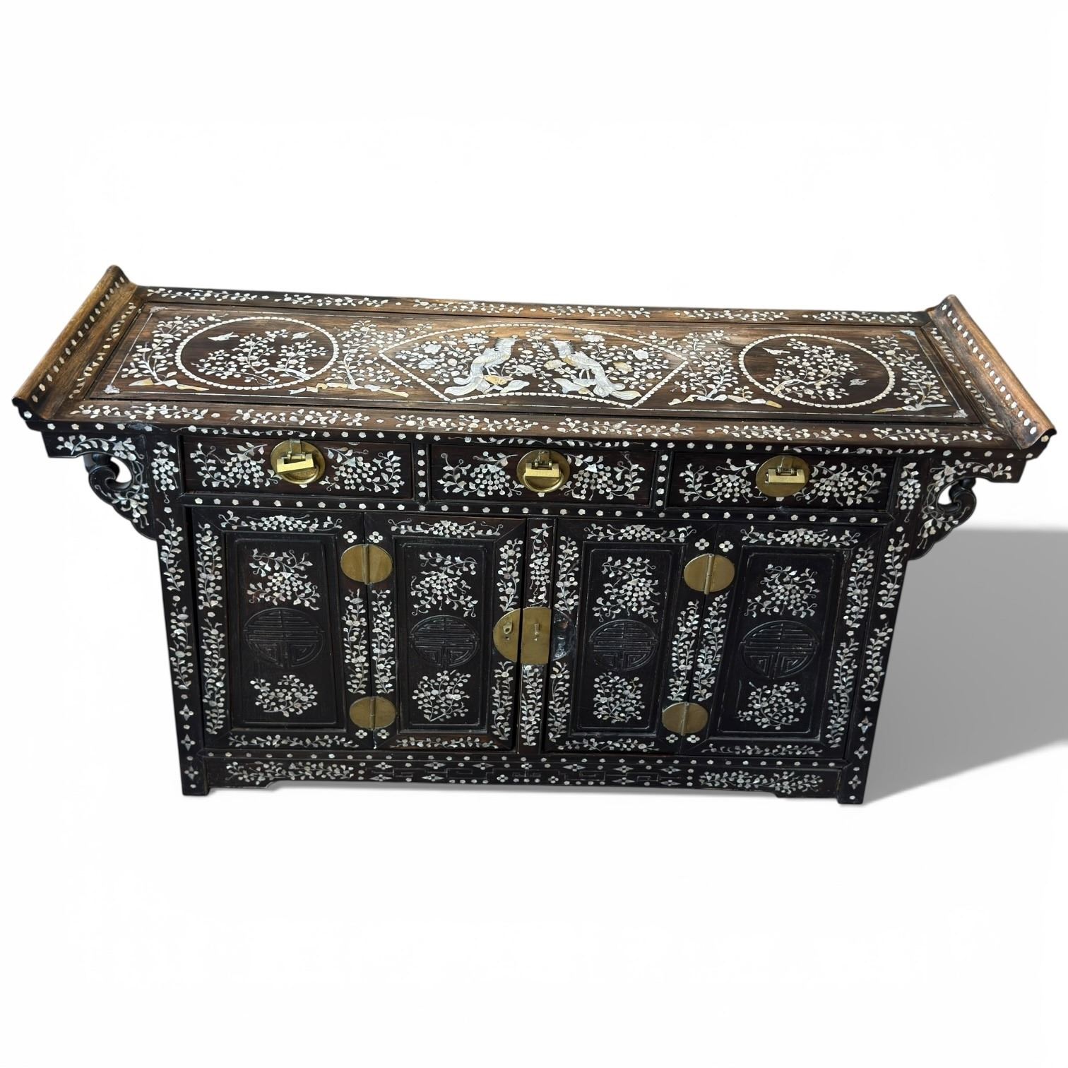 Chinese Sideboard with Phoenix & Floral Mother-of-Pearl Inlay (18" x 60" x 34" tall)