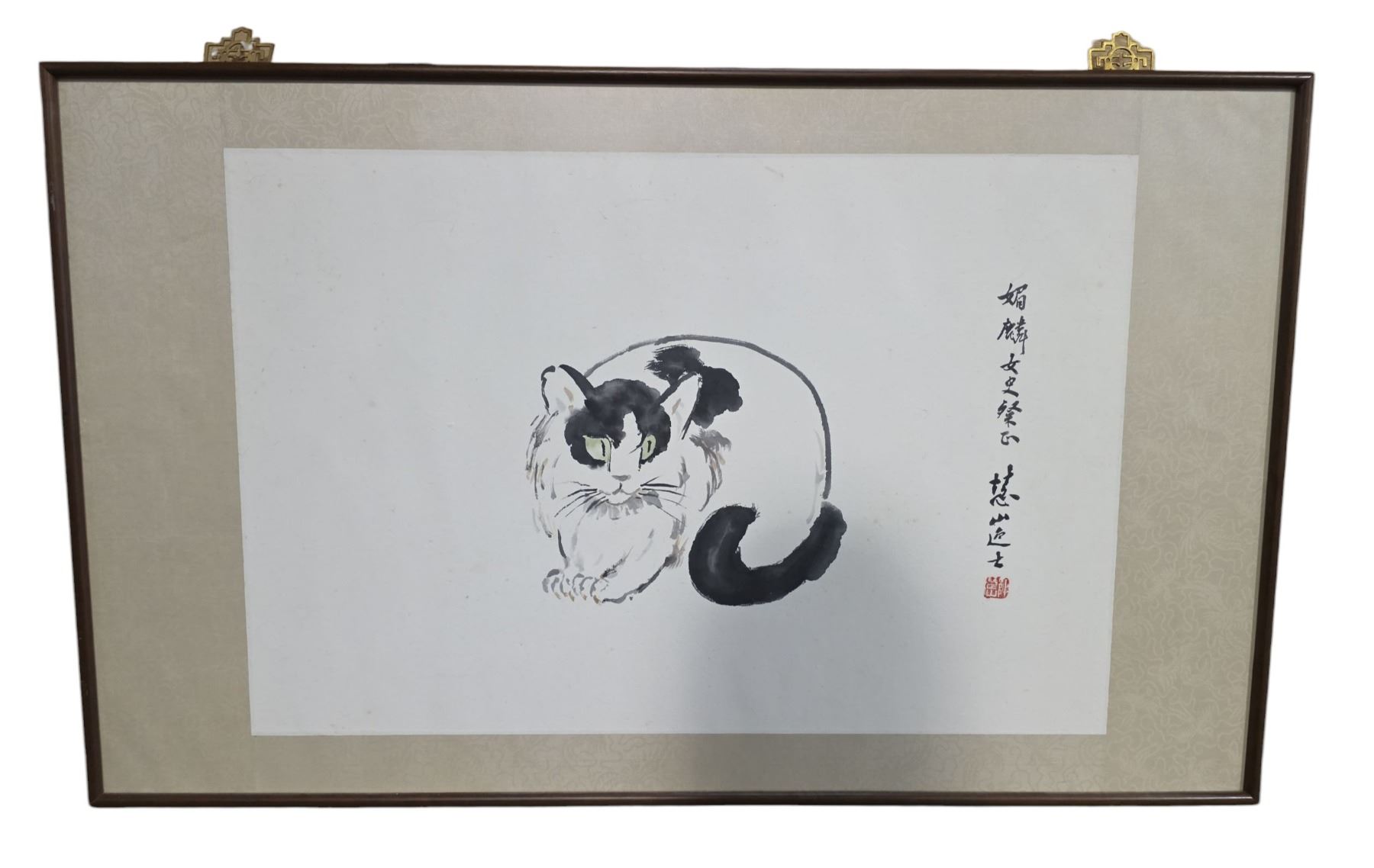 Chinese Vintage Cat Ink Painting by Anita Yan Wong