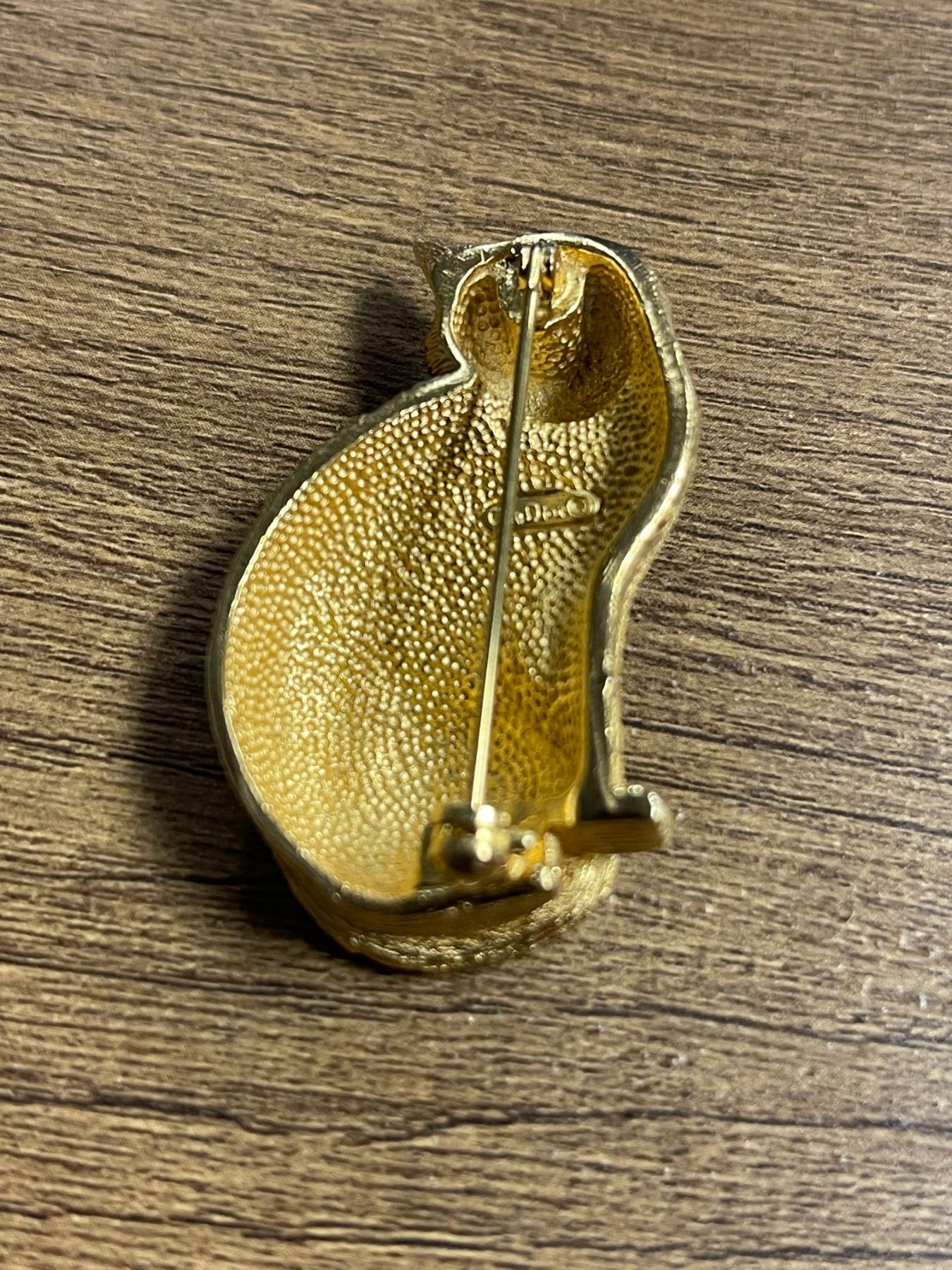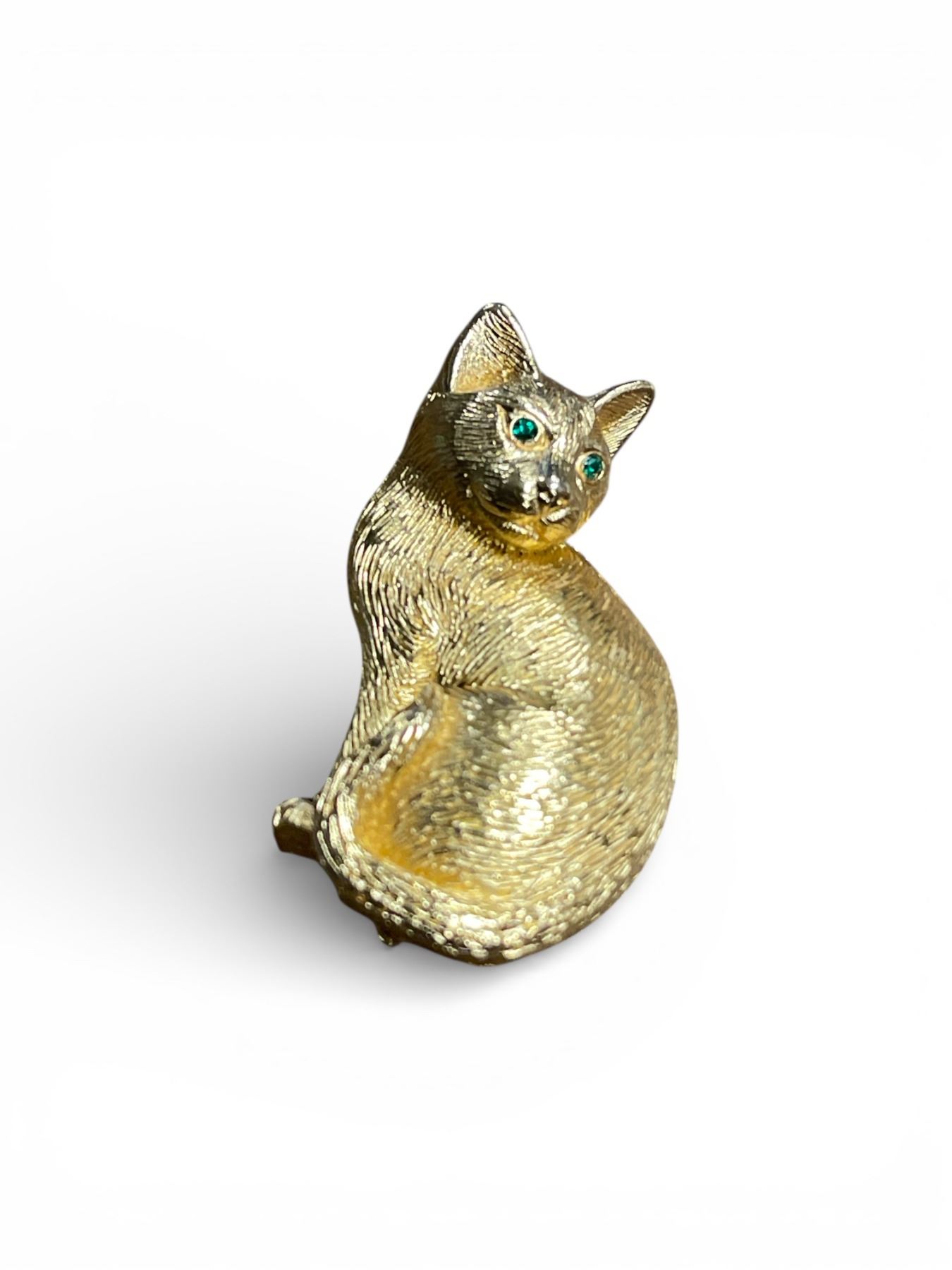 Christian Dior Gold-plated Cat Brooch with green crystal eyes. - Appraised Value $127