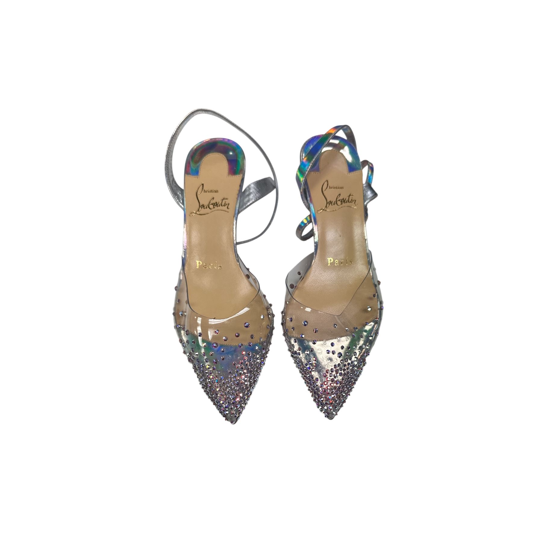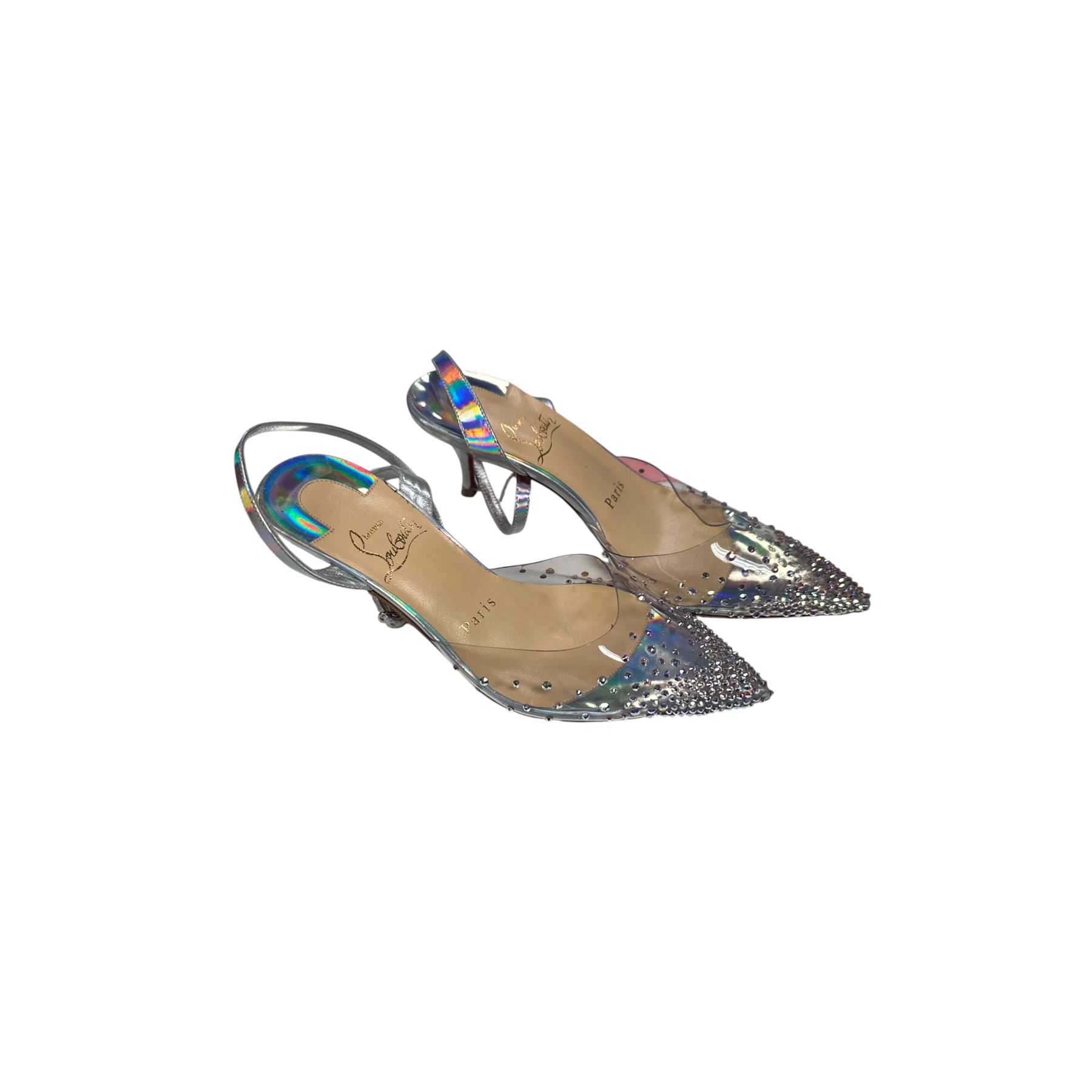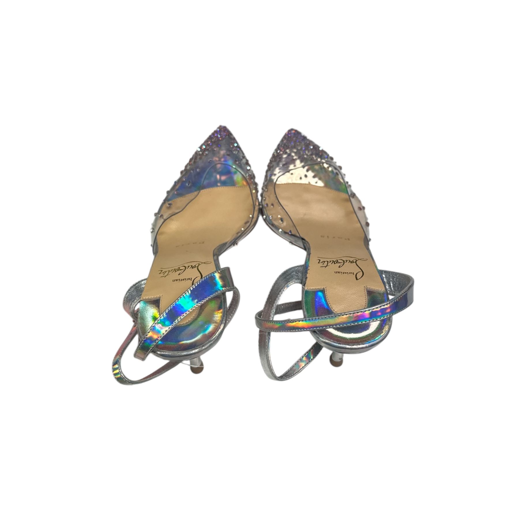Christian Louboutin 65m Silver Kitten Heels Euro Size 34