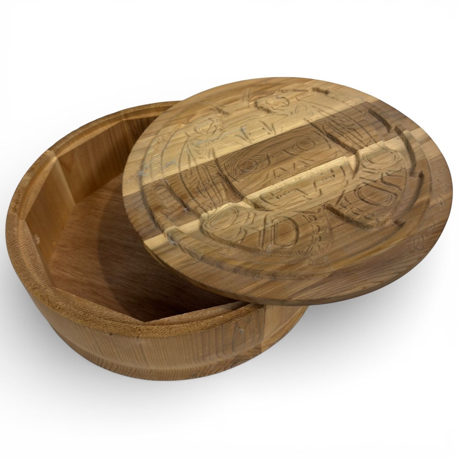 Clarence Mills Carved Wood Lidded Bowl with Haida Design - 10" diameter x 3" deep