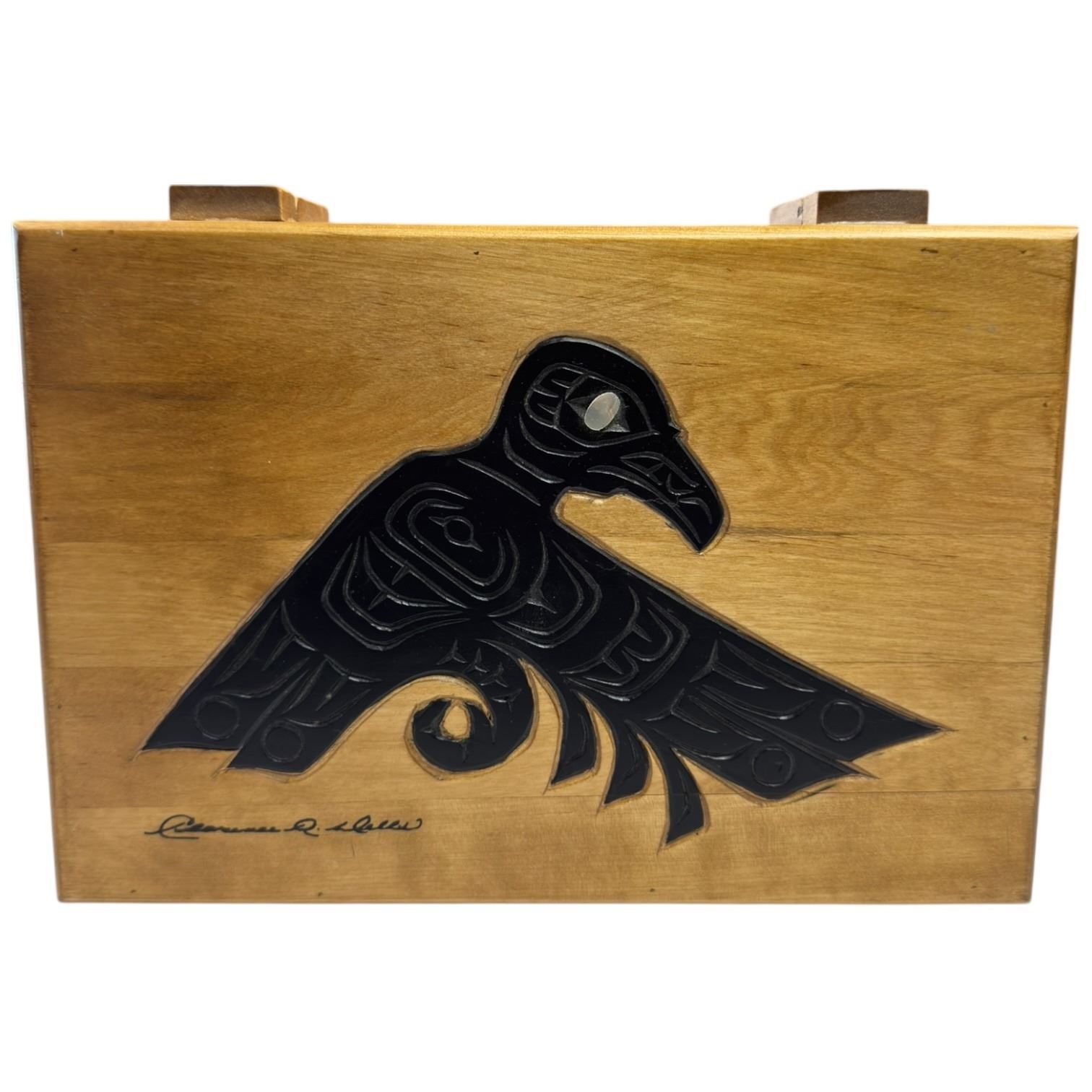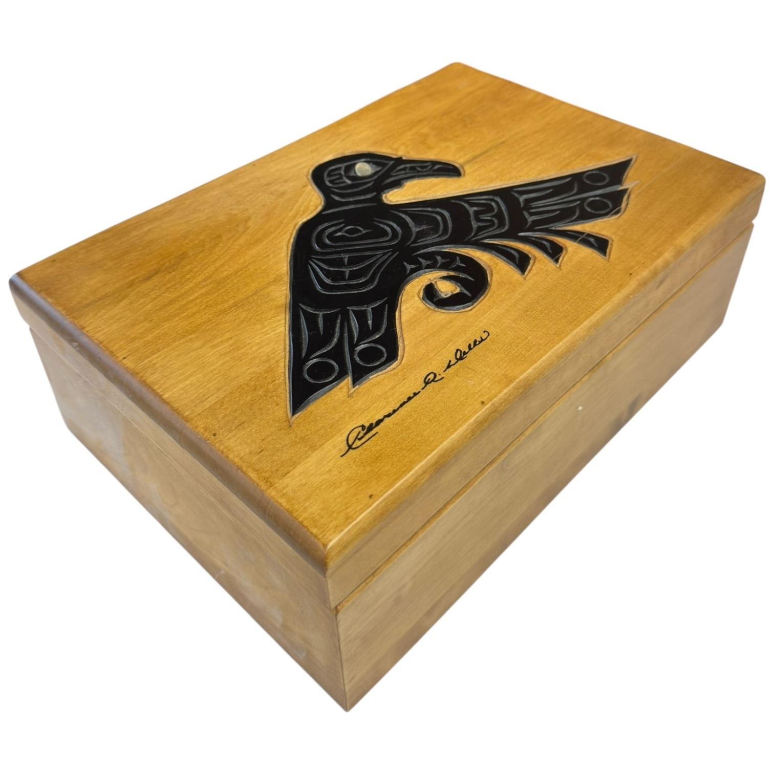 Clarence Mills Raven Design Wood Keepsake Box - Hinged Lid (7.5" x 11" x 4" deep)