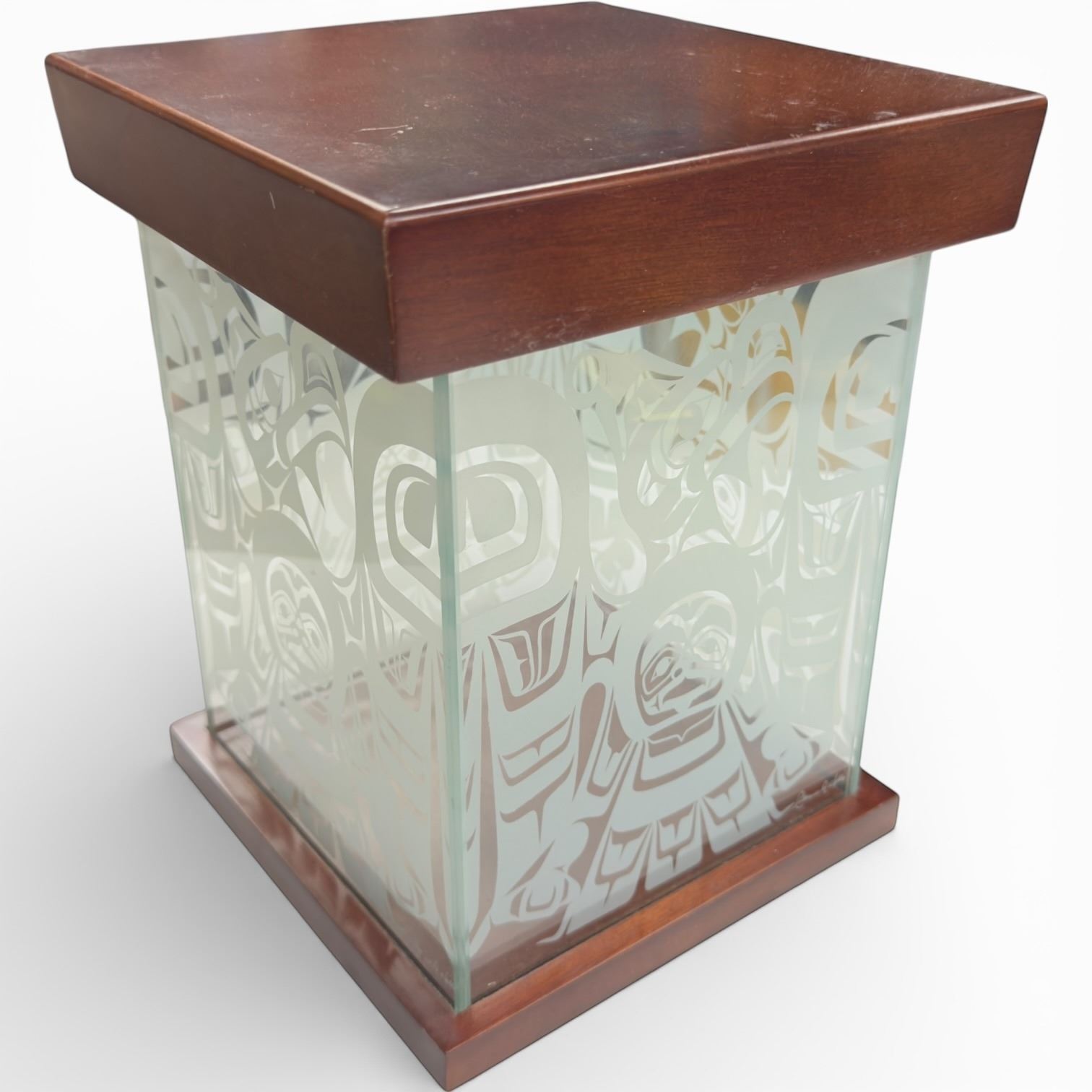 Clarence Wells Etched Glass "Haida Thunderbird" Design Keepsake Box (7" x 7" 10" tall)