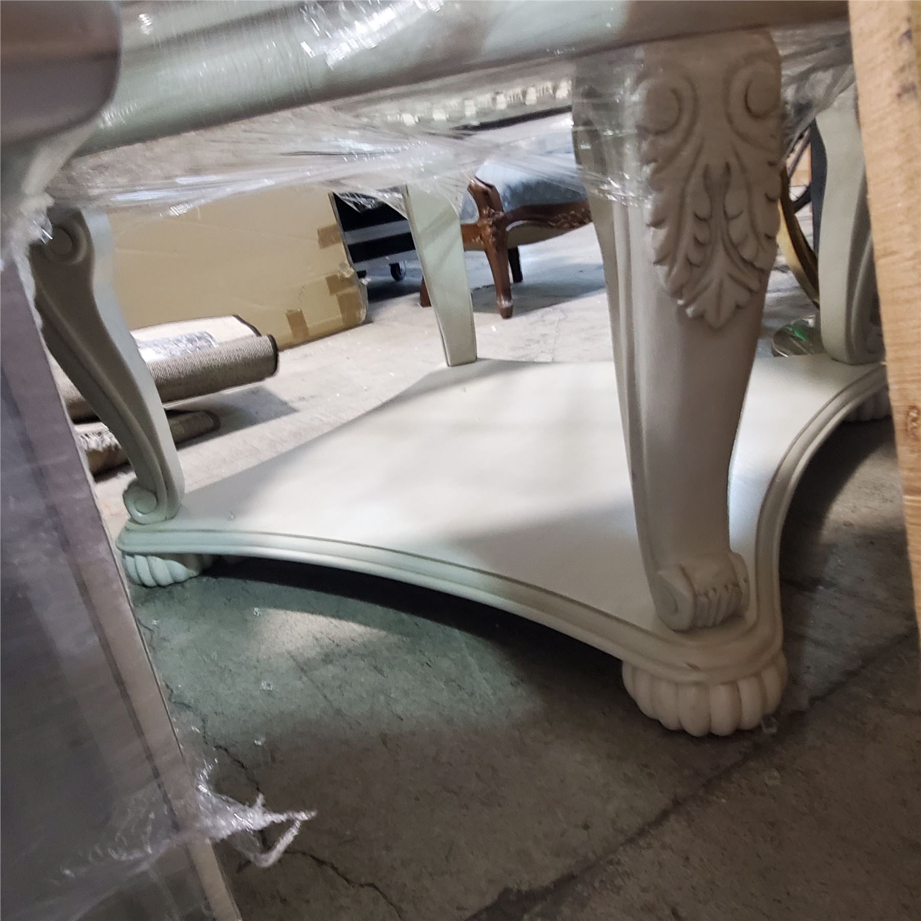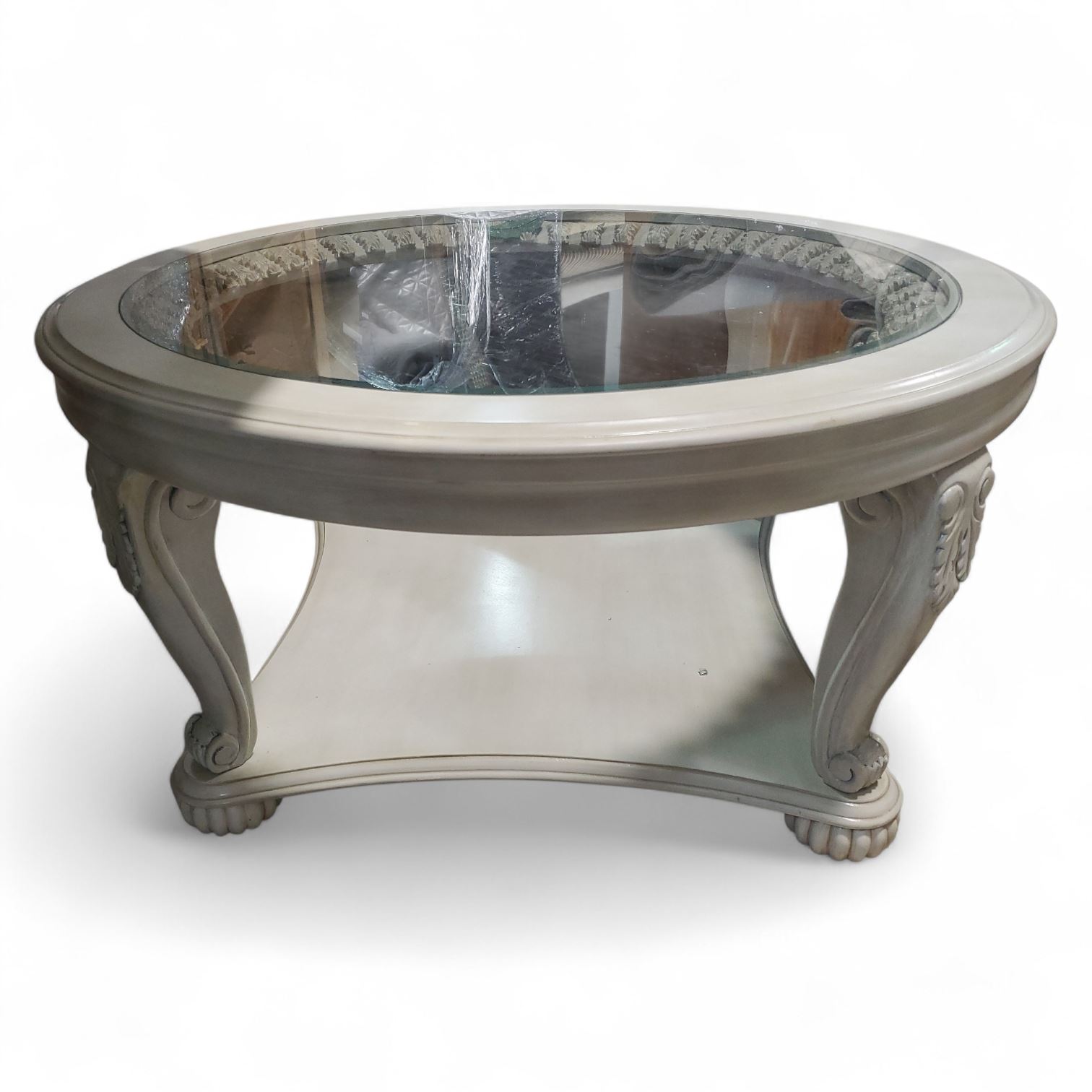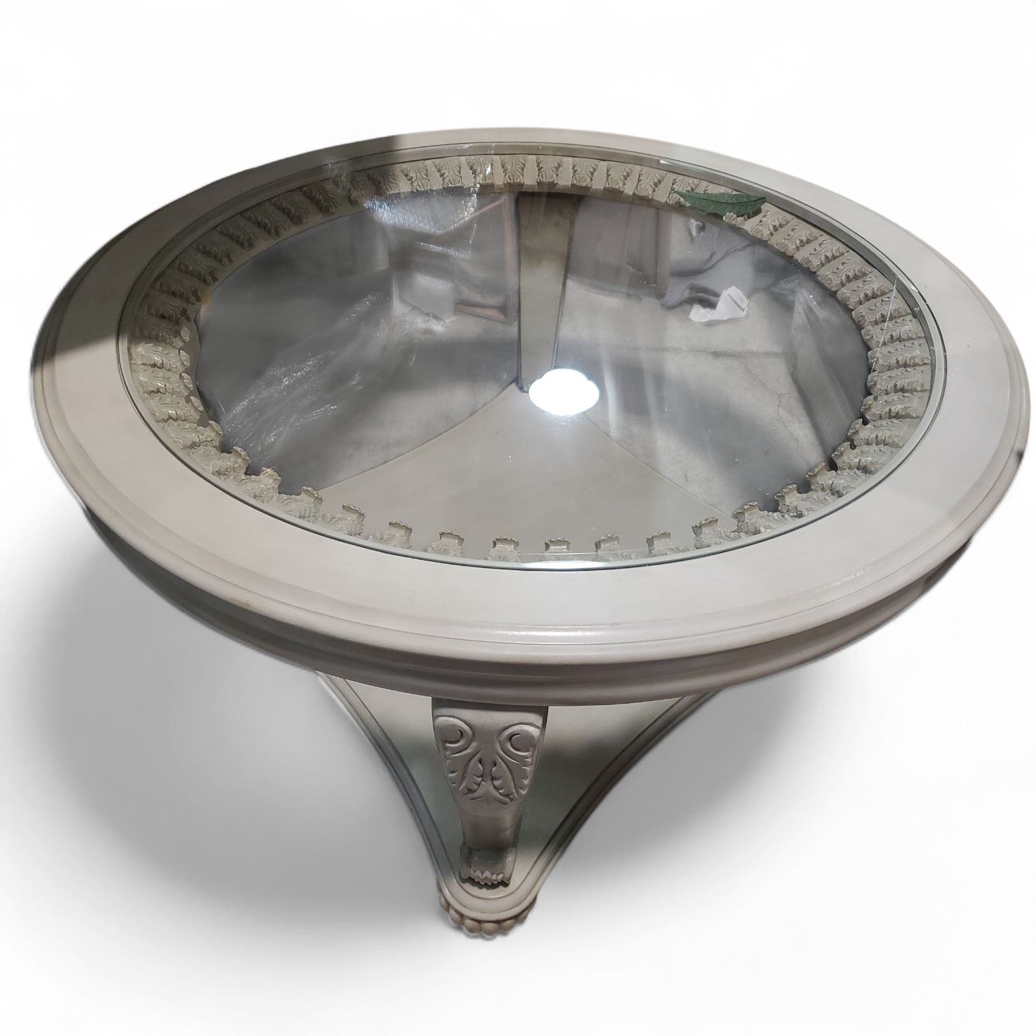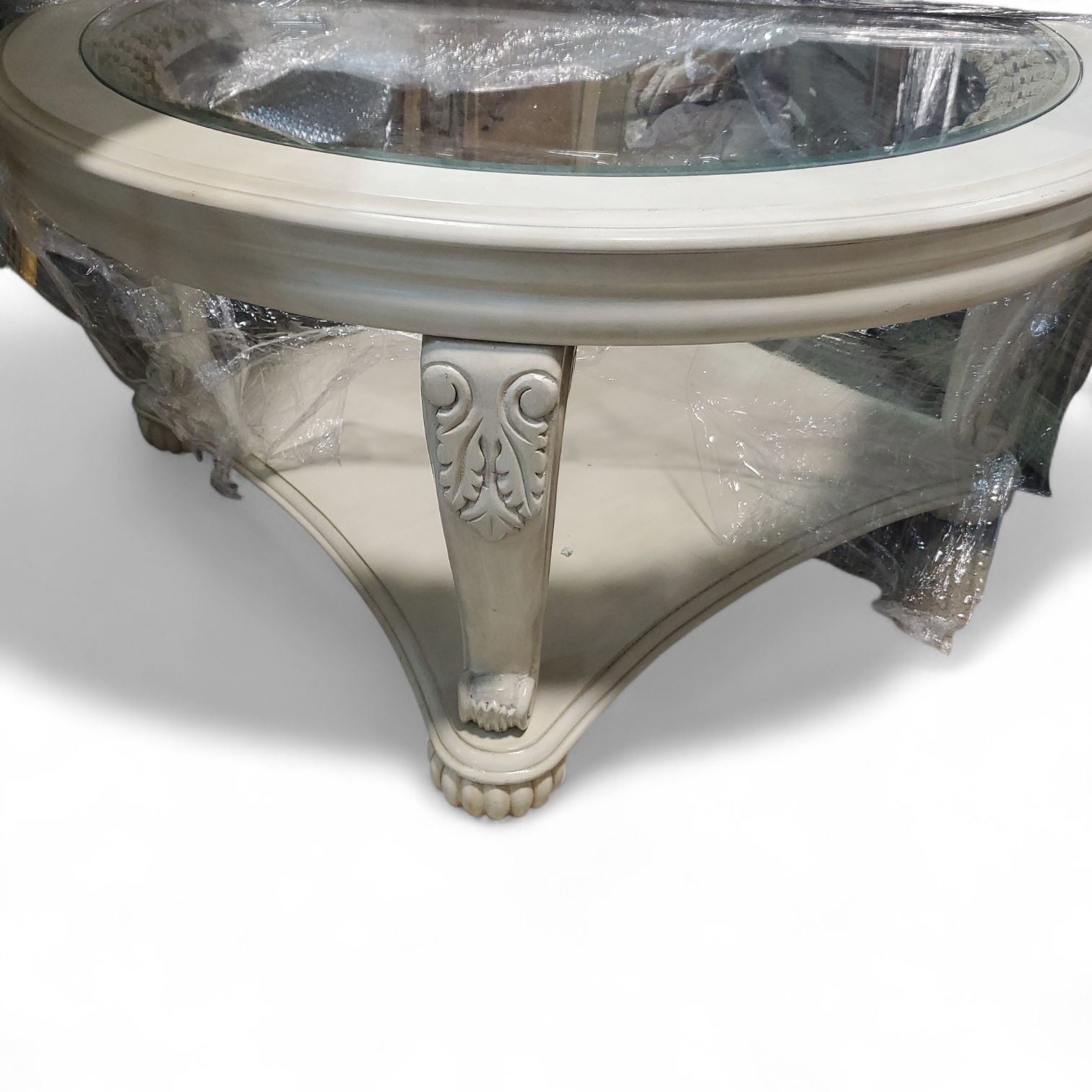 Classic Ornate Round Glass Wooden Table, Approx. H20.5" x Dia. 42"