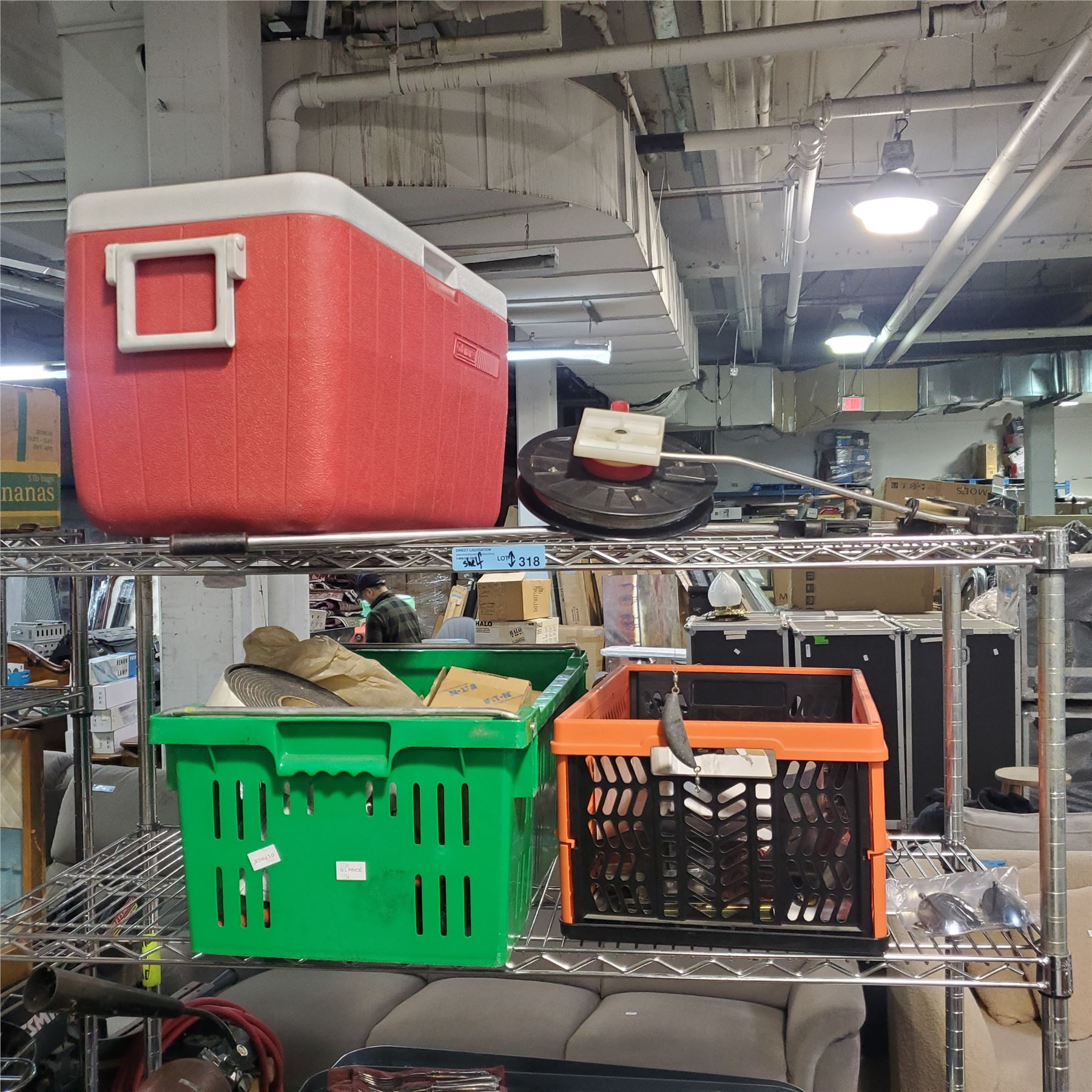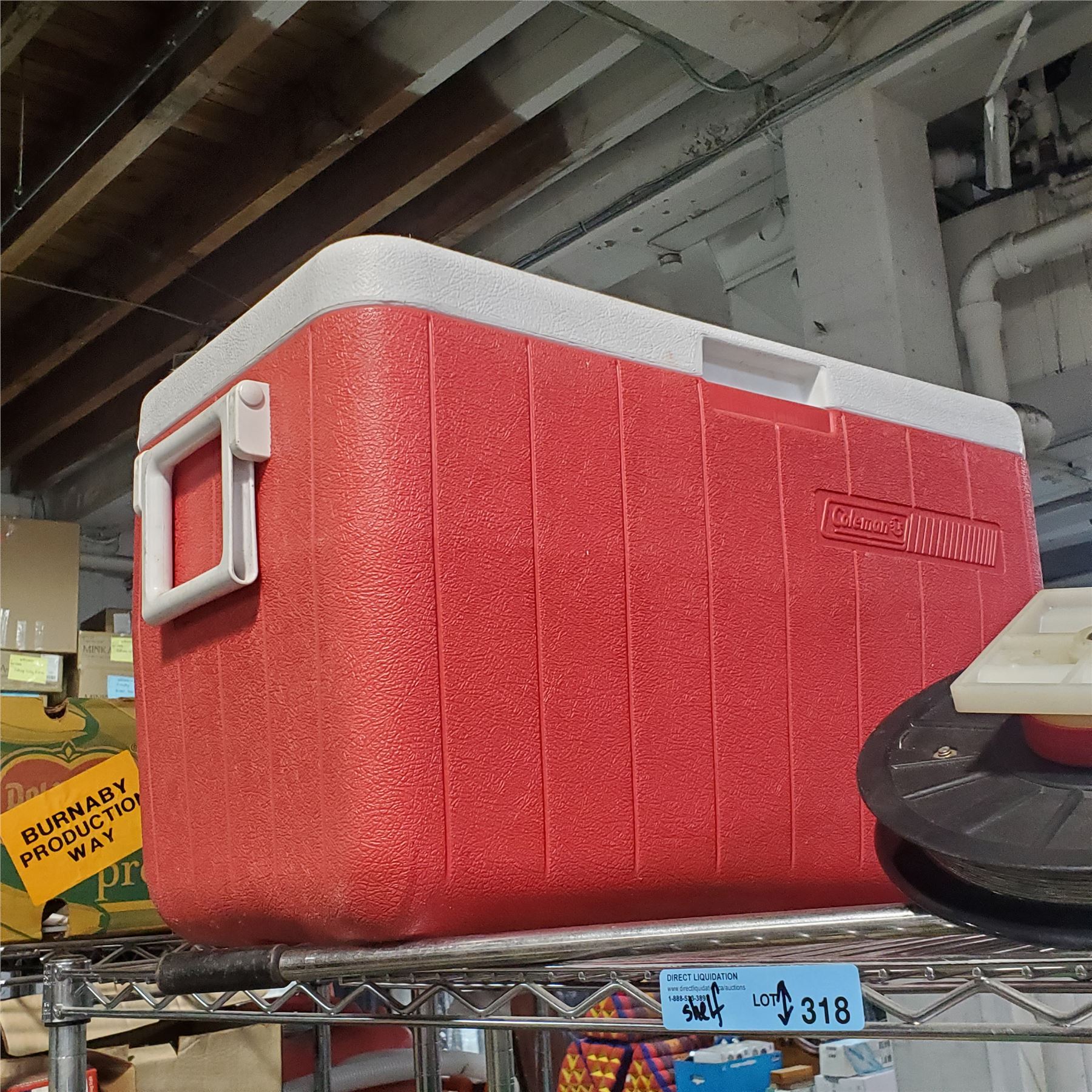 Coleman Cooler with Misc items - CD/DVD, Batteries, and Small Parts