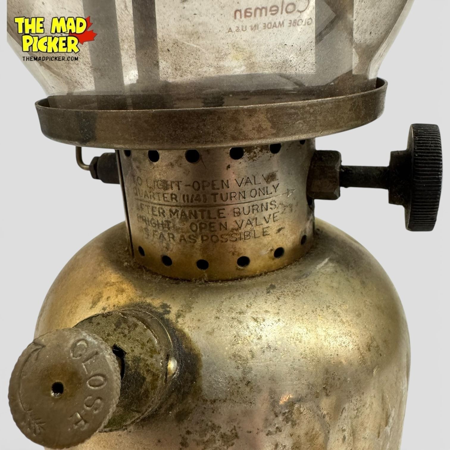 Very early Coleman lantern, potentially pre-Model 427, featuring a smaller Coleman logo. Date stamp is worn, but smaller logo design suggests manufacture before 1925. Metal frame and vent construction characteristic of Coleman�€™s early gasoline lanterns. Likely from Wichita production era.
