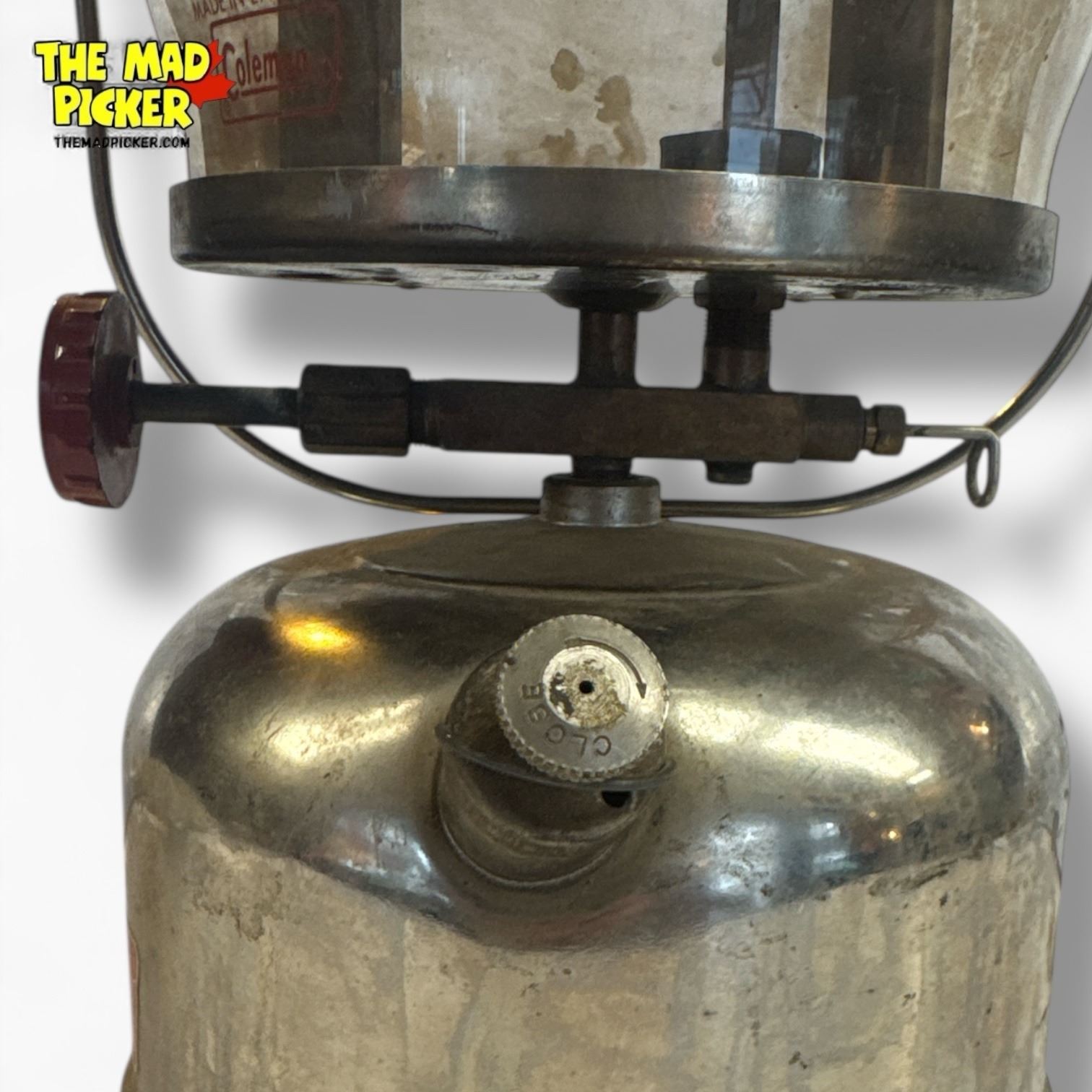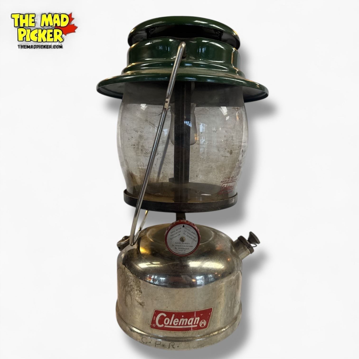 Coleman lantern from 1971 with nickel-plated finish. Features engraving marked CPR (Canadian Pacific Railway), commonly associated with employee or special event use. Compact single-mantle design. Unmarked production variant.