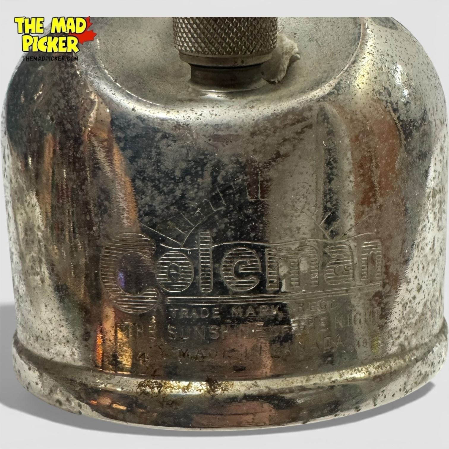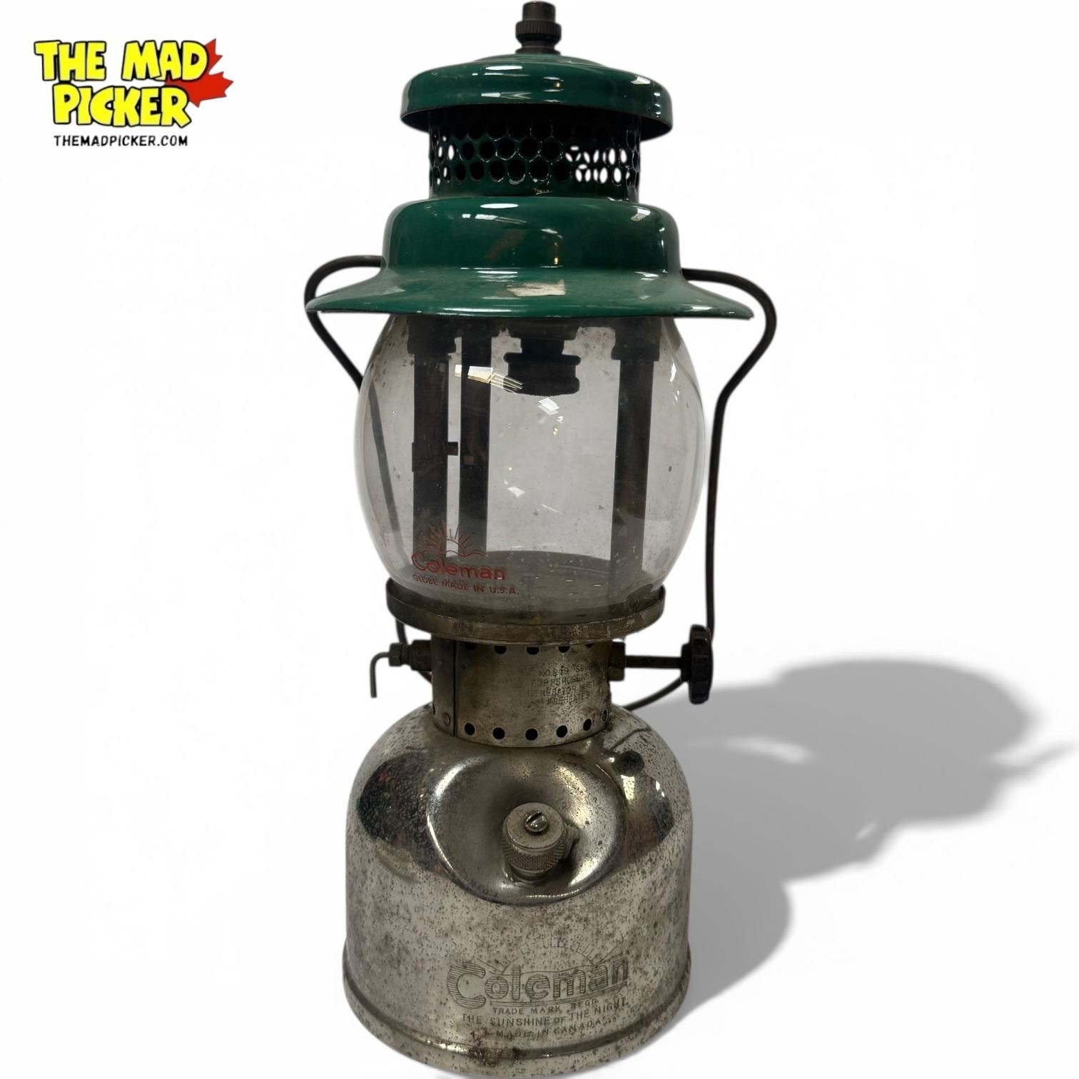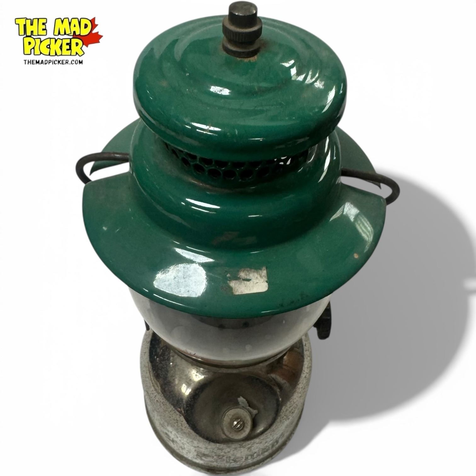 Coleman Model 249 Scout lantern manufactured in 1948. Constructed from nickel-plated brass, this single mantle kerosene lantern features a globe cage and fuel cap design typical of mid-century Coleman models. Designed for outdoor use, the 249 Scout is part of Coleman's classic utility lantern range.