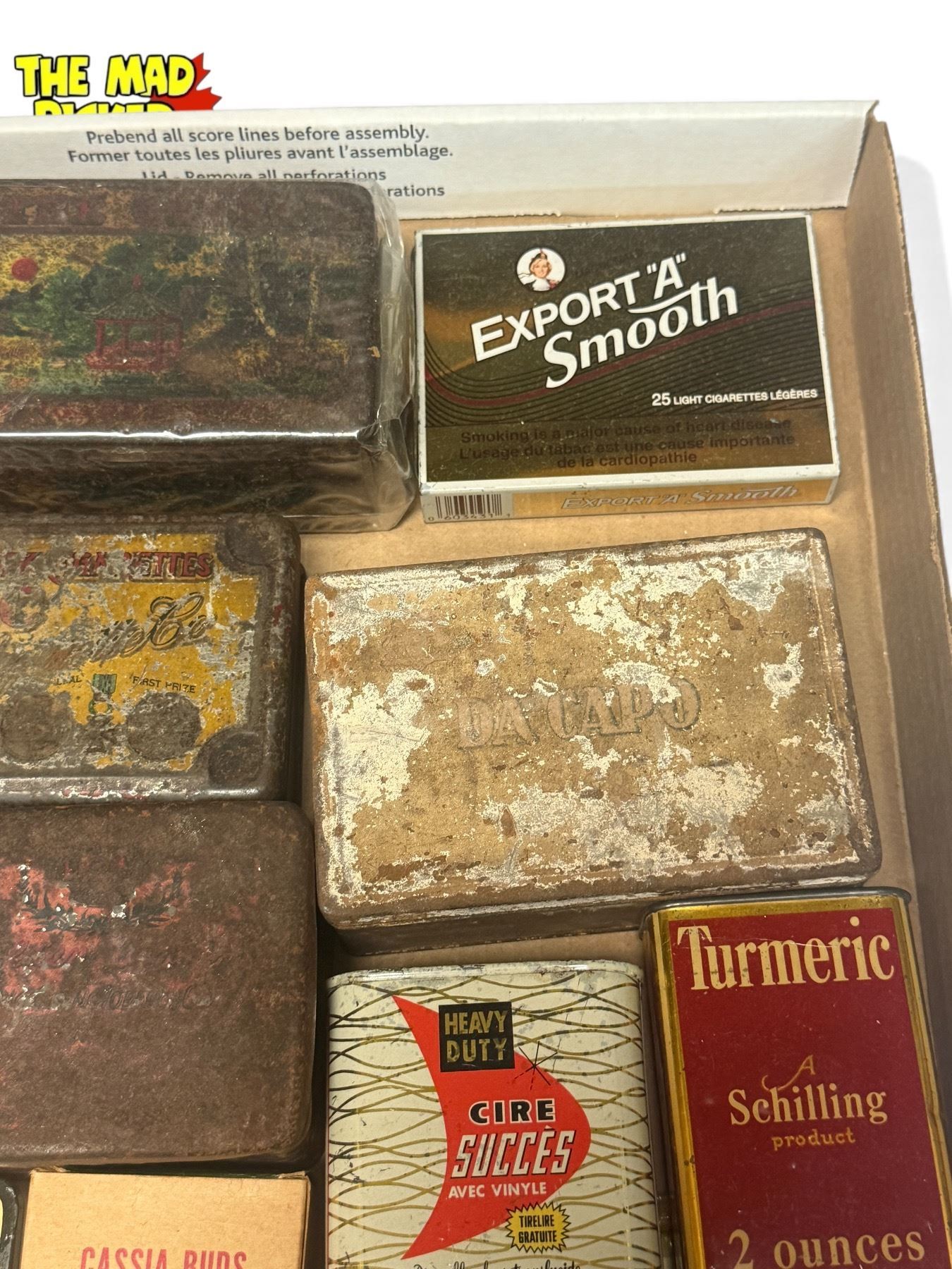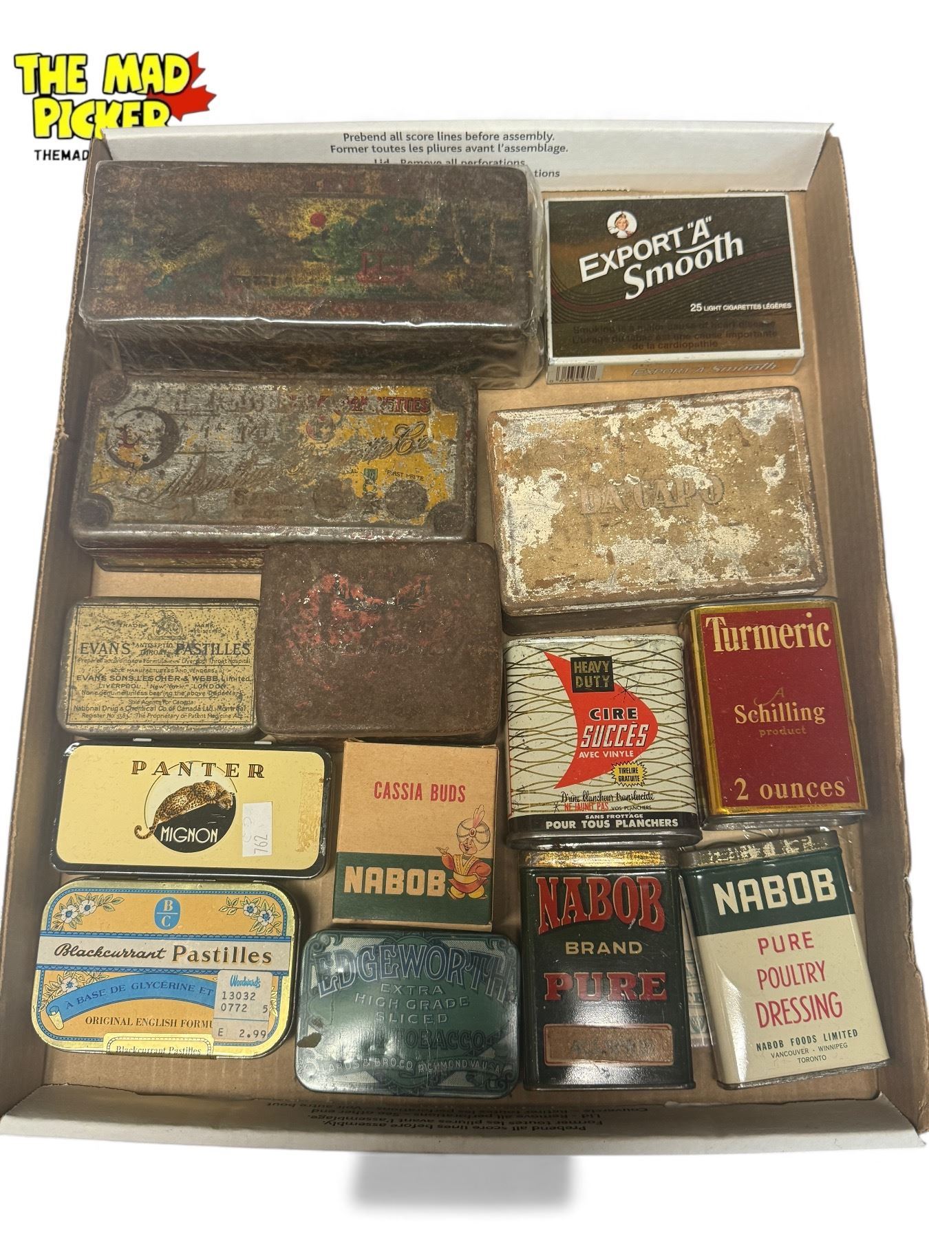 Collection Of Vintage Tins: Nabob, Edgeworth, Mignon, Export "A", & More