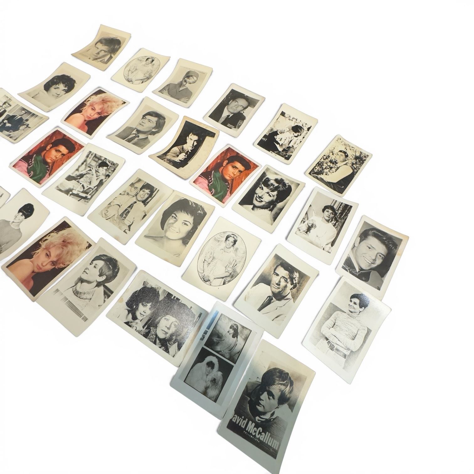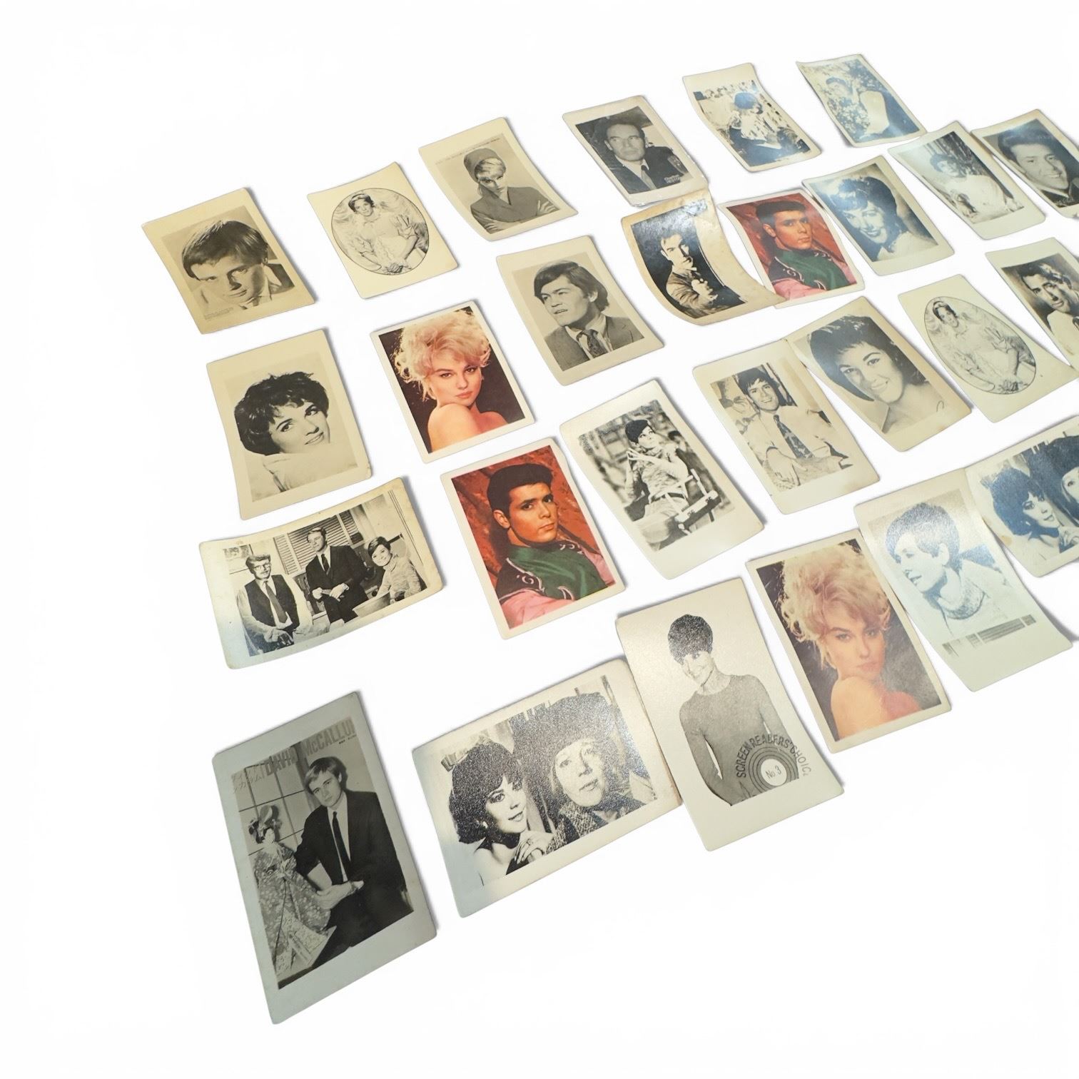 Collection of memorabilia featuring notable musicians, actors, and actresses from the 1950s & 1960s. Includes Gregory Peck, Charlton Heston, Mylene Demongeot, and others. Item is as pictured.