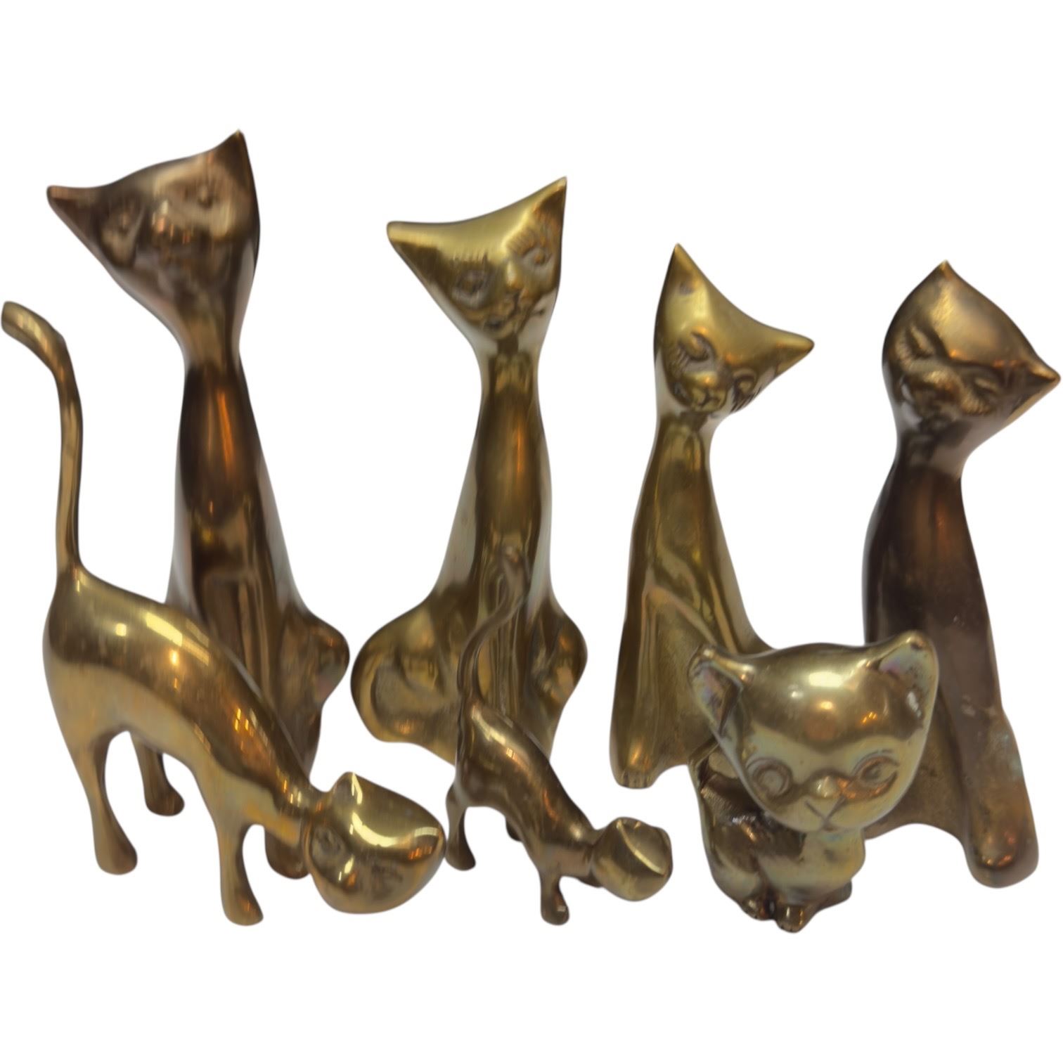 Collection of 7 Brass Cats Tallest is 7" Tall