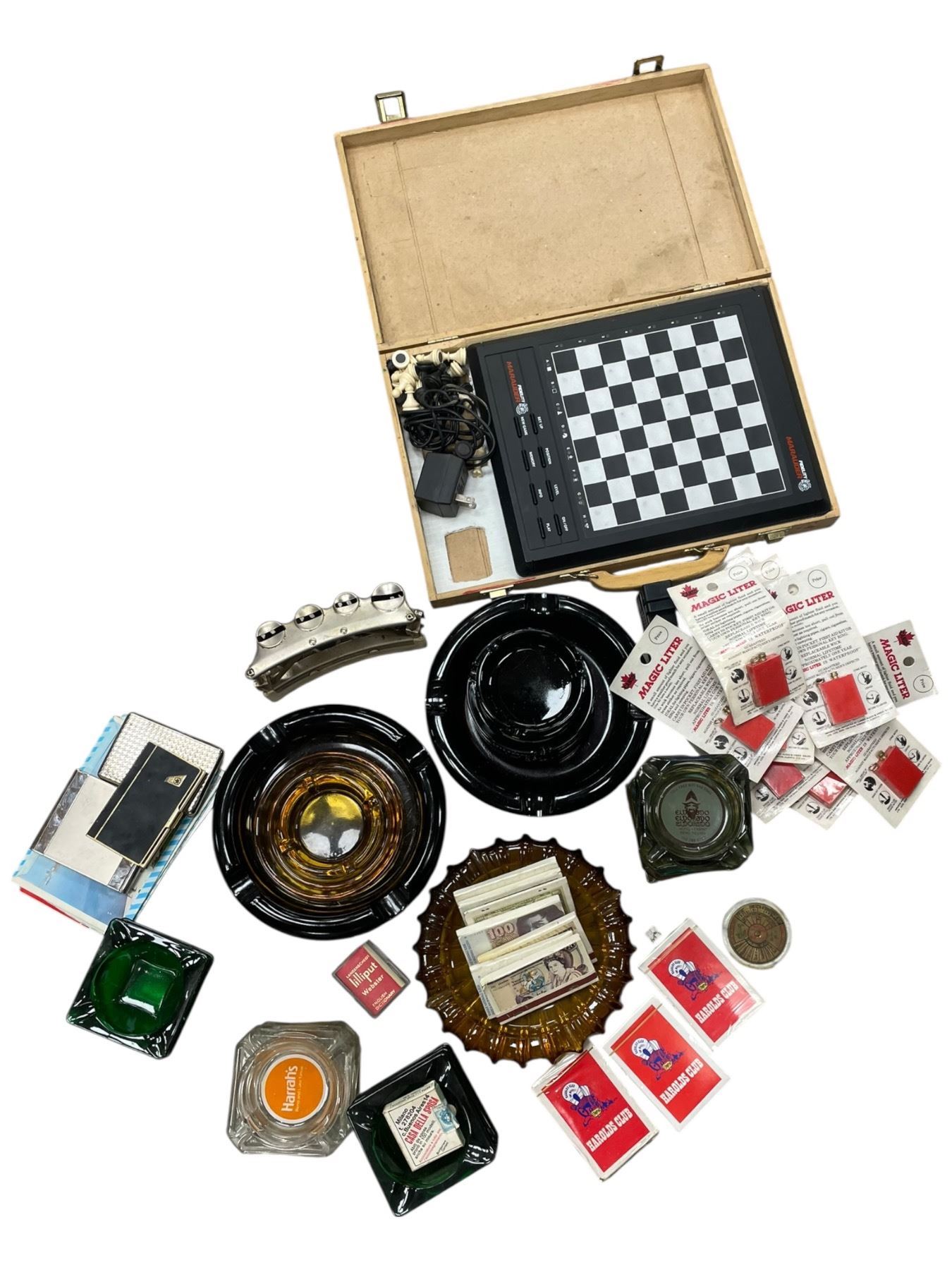 Collection of Assorted Ashtrays and Assorted Collectables Including Chessboard
