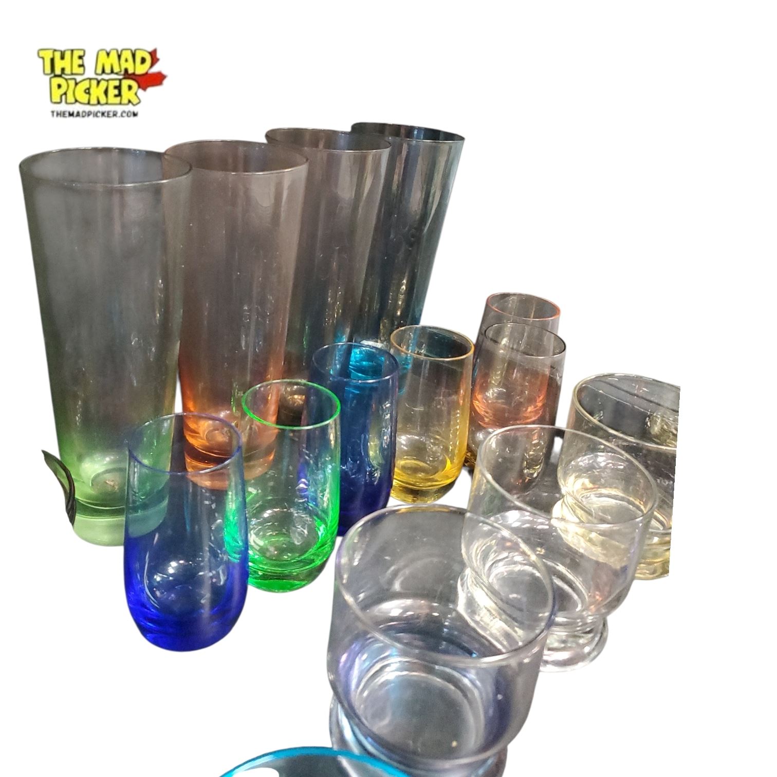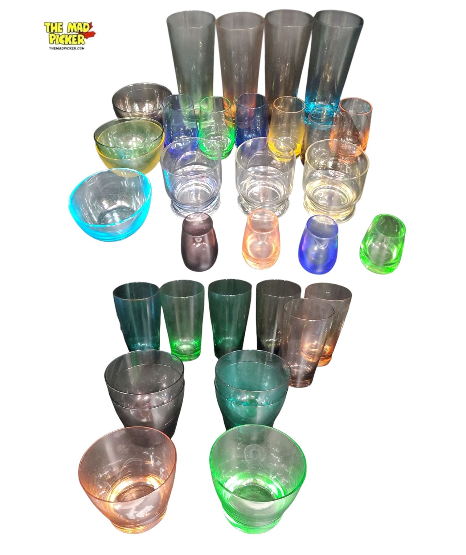 Collection of Assorted Multi-Colored Drinking Glasses.