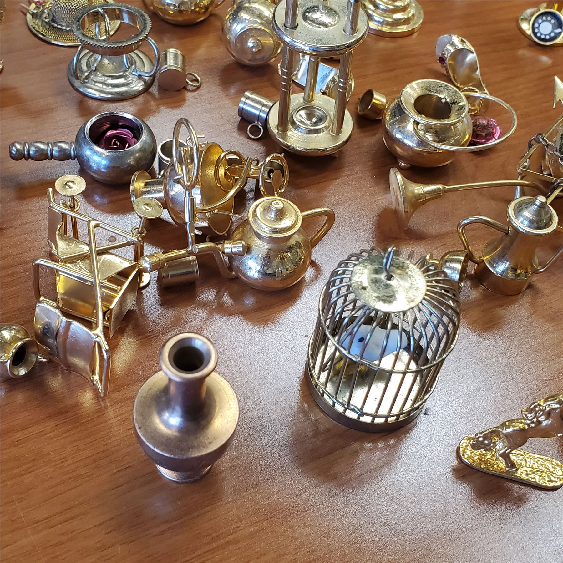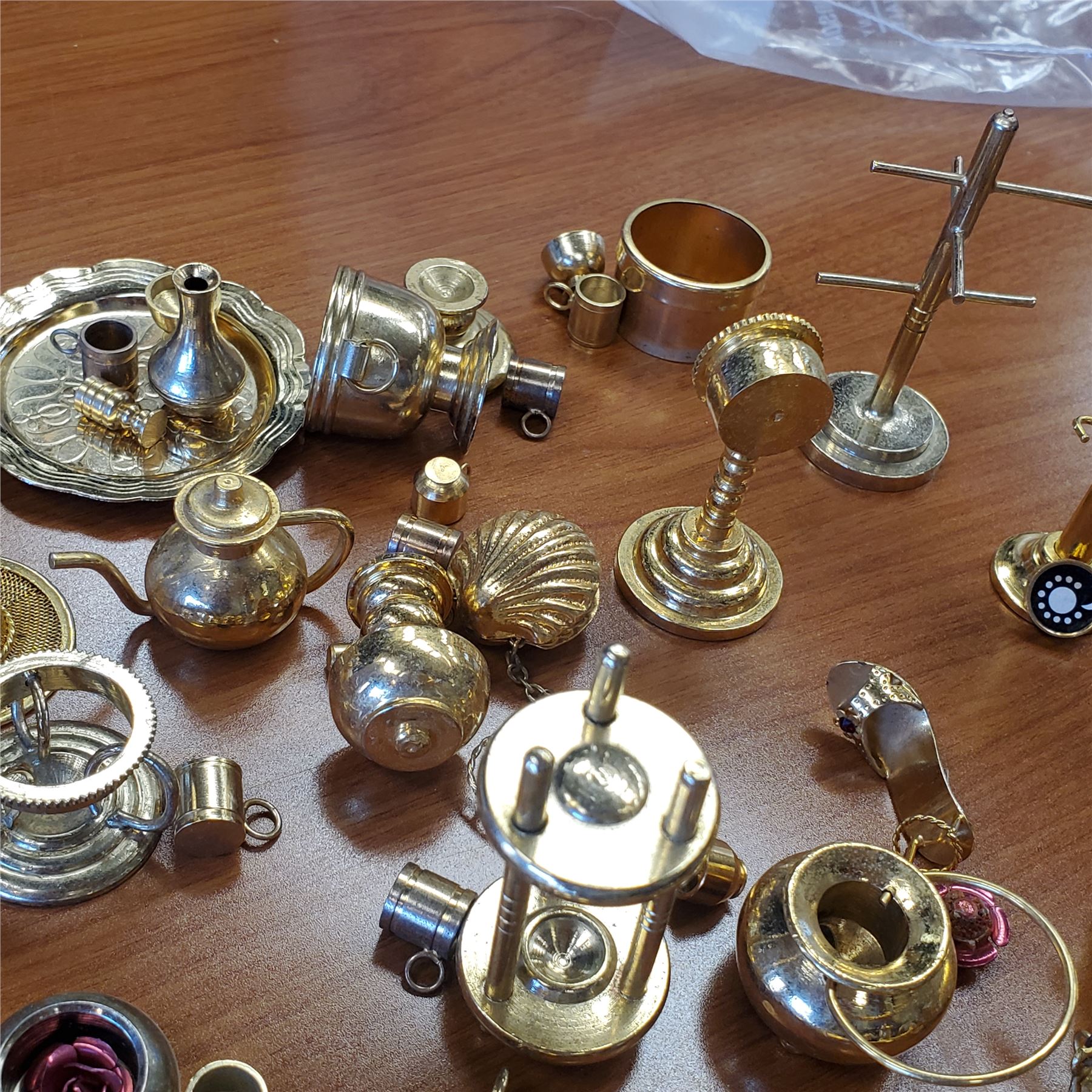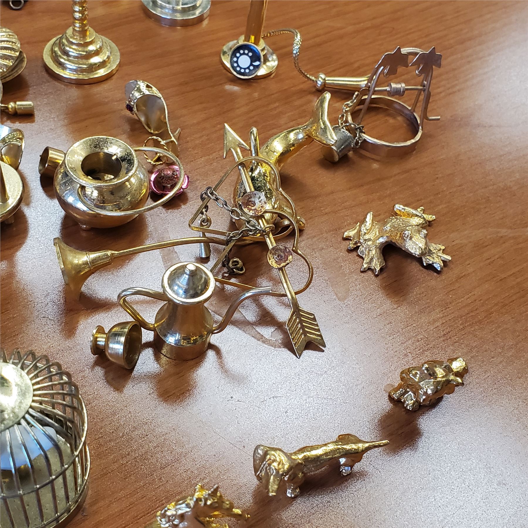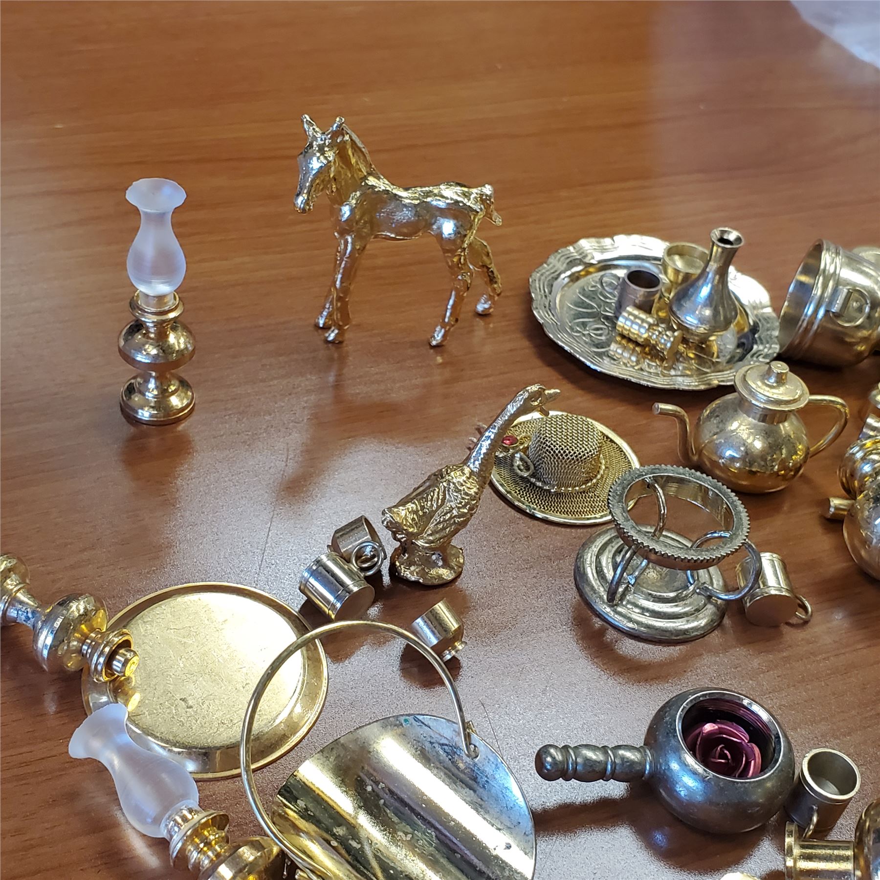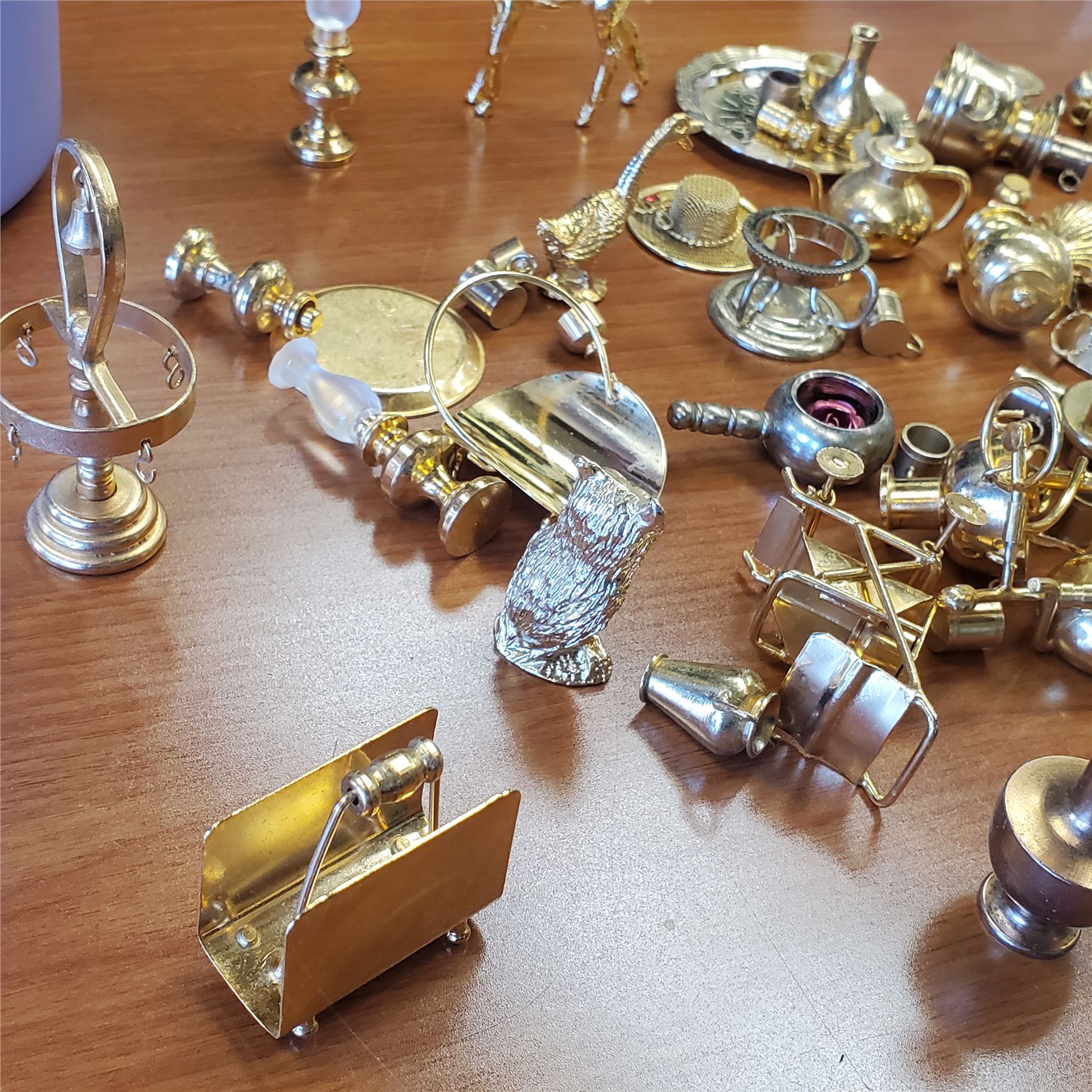 Collection of miniature brass decor items designed for dollhouse use. Includes detailed brass pieces suitable for various dollhouse themes and styles. Items are as pictured and crafted for decorative purposes. Item is as pictured.