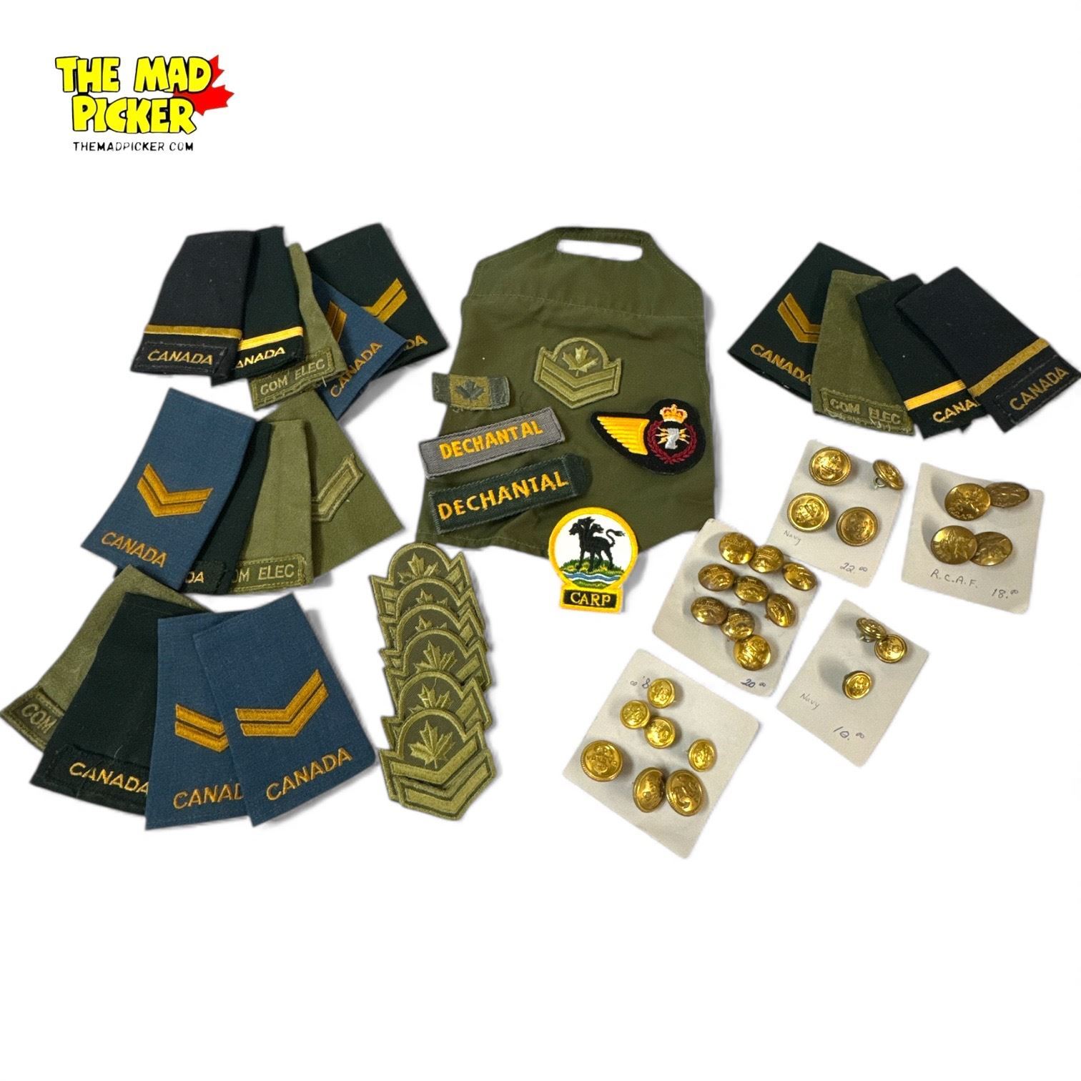 Collection of Canadian Military Buttons, Patches and Epaulettes