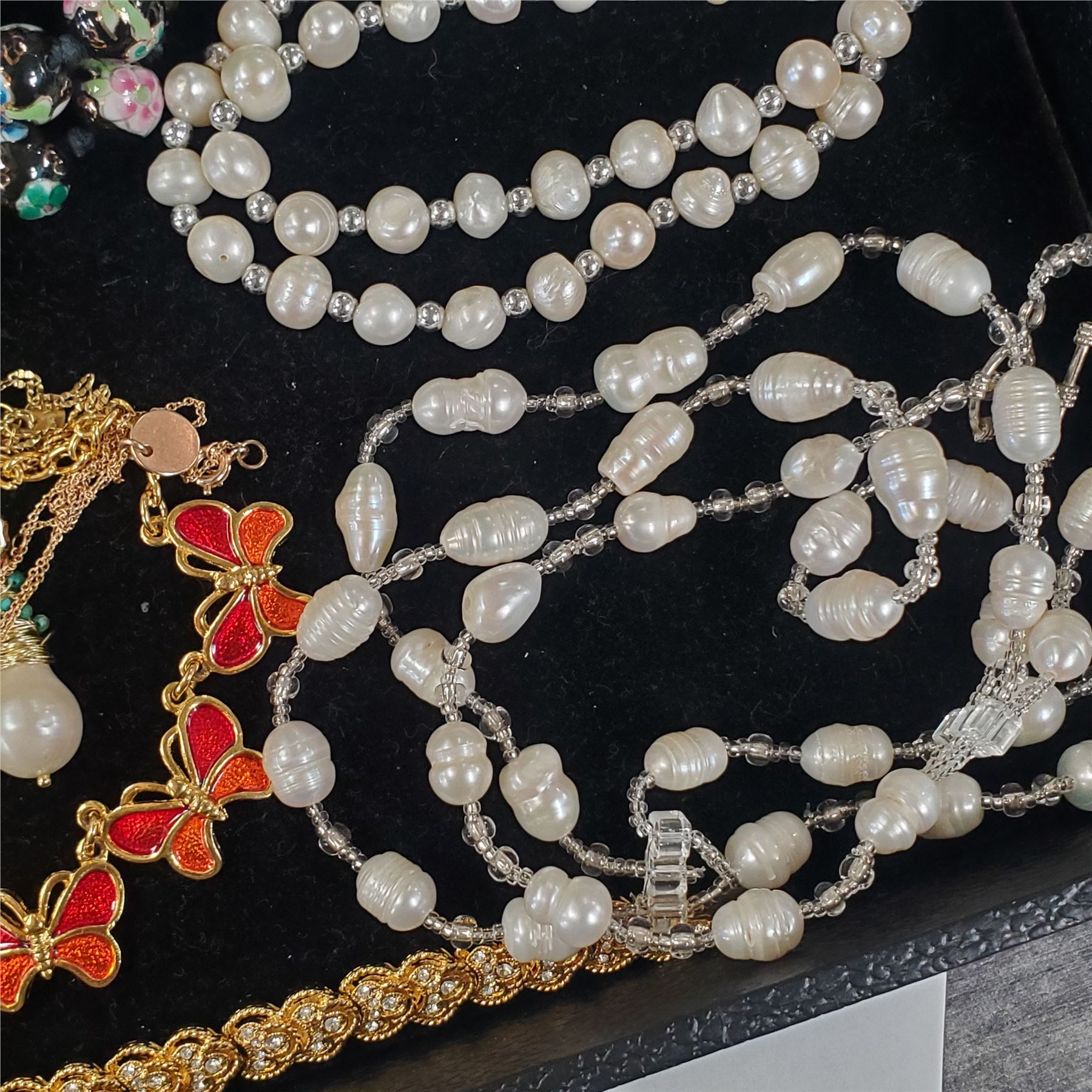 Collection of Fashion and Costume Jewelry (Necklaces, Faux Pearls, Earrings & Bracelet) - Display Tray Not Included