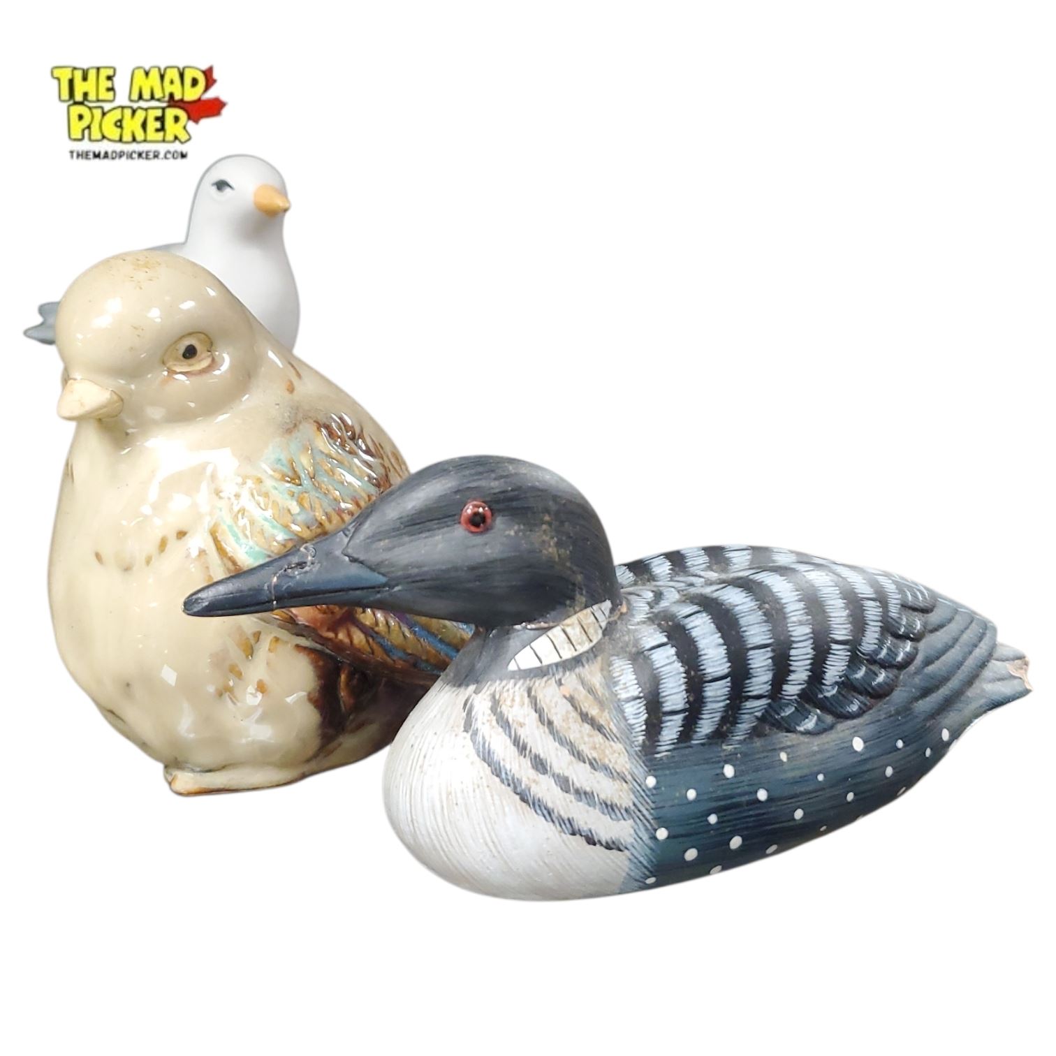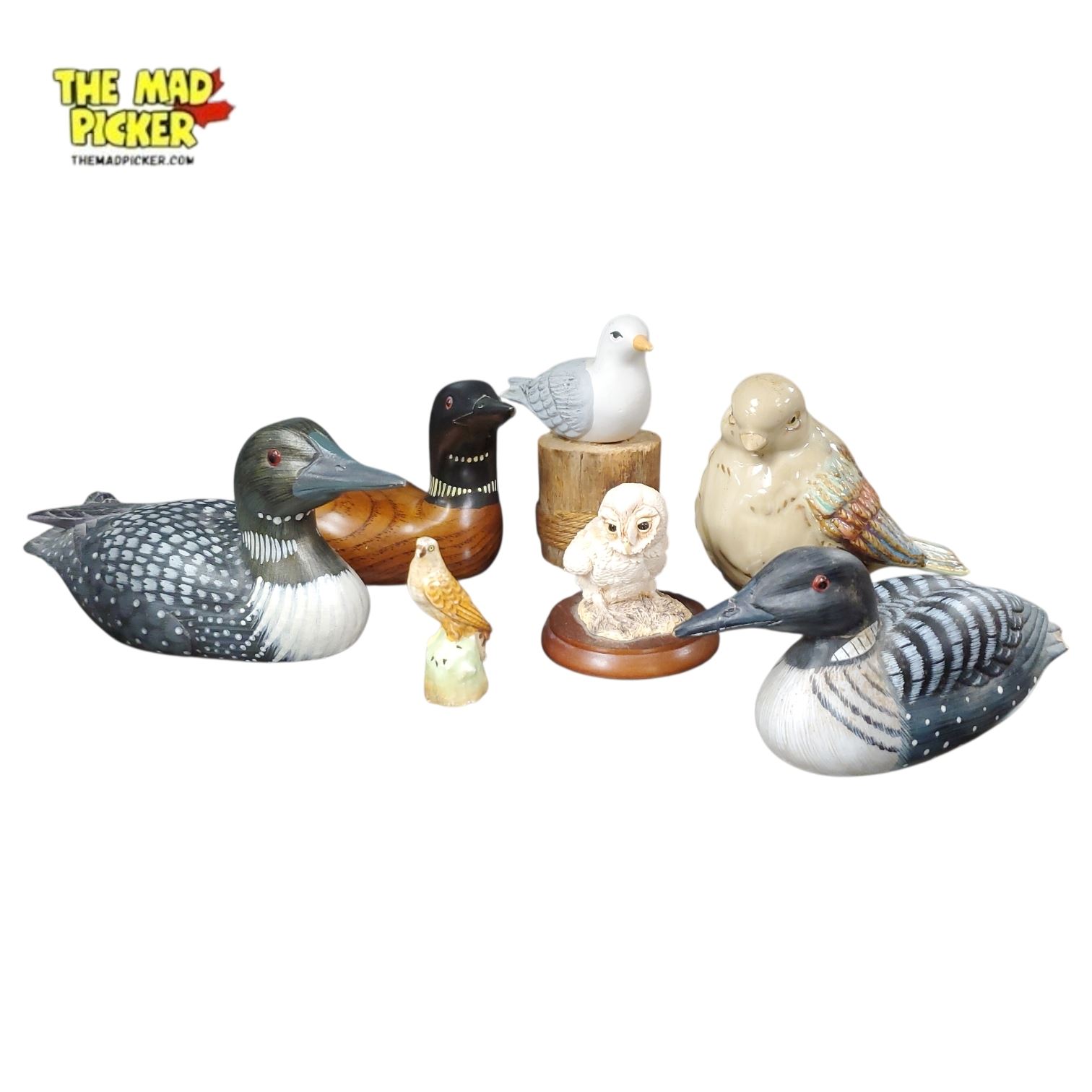 Collection of Hand-Carved and Painted Loon, Duck, and Owl Figurines and Decoys