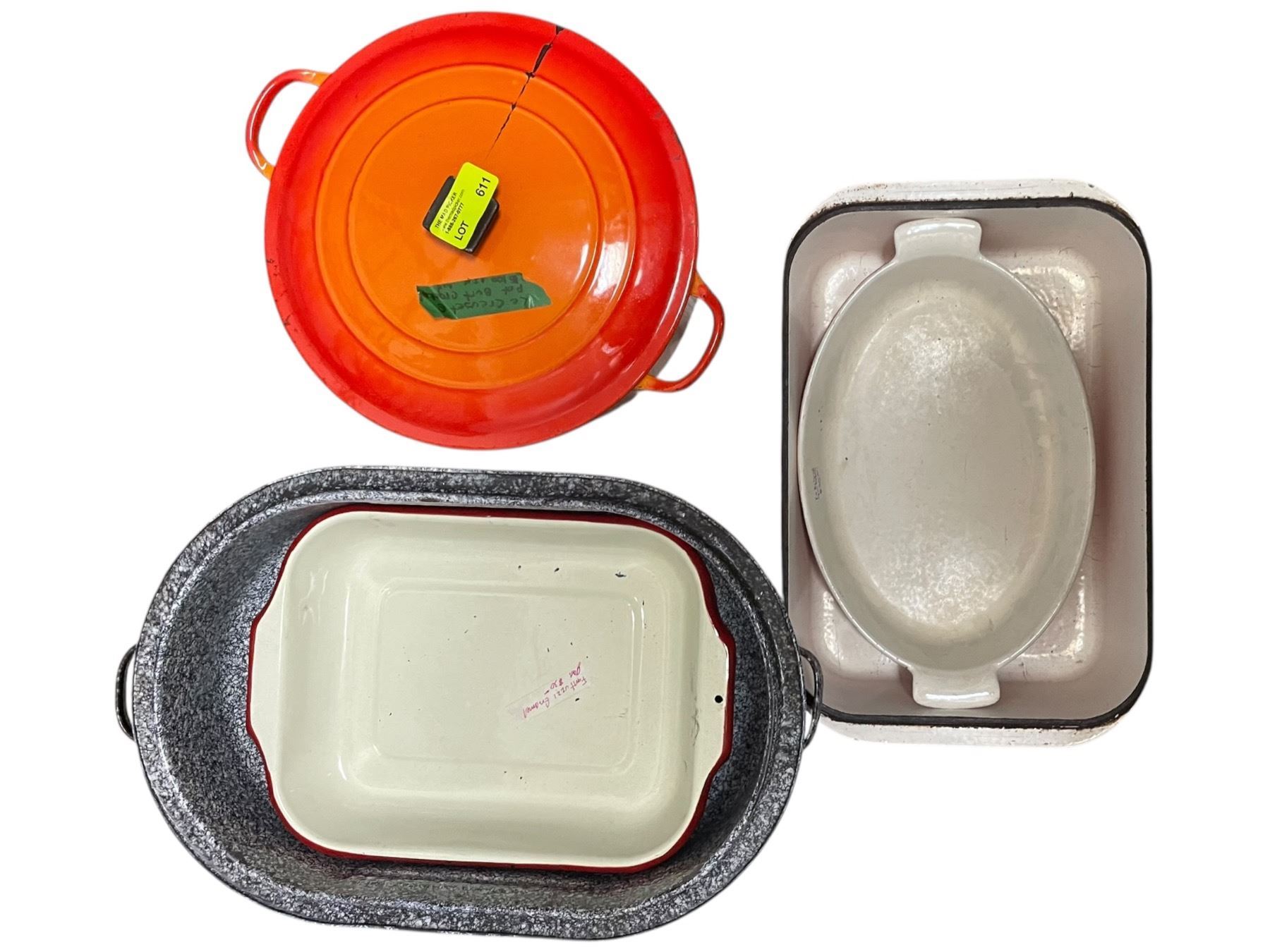 Collection of Kitchen Pans Including a Le Creuset Orange Pot