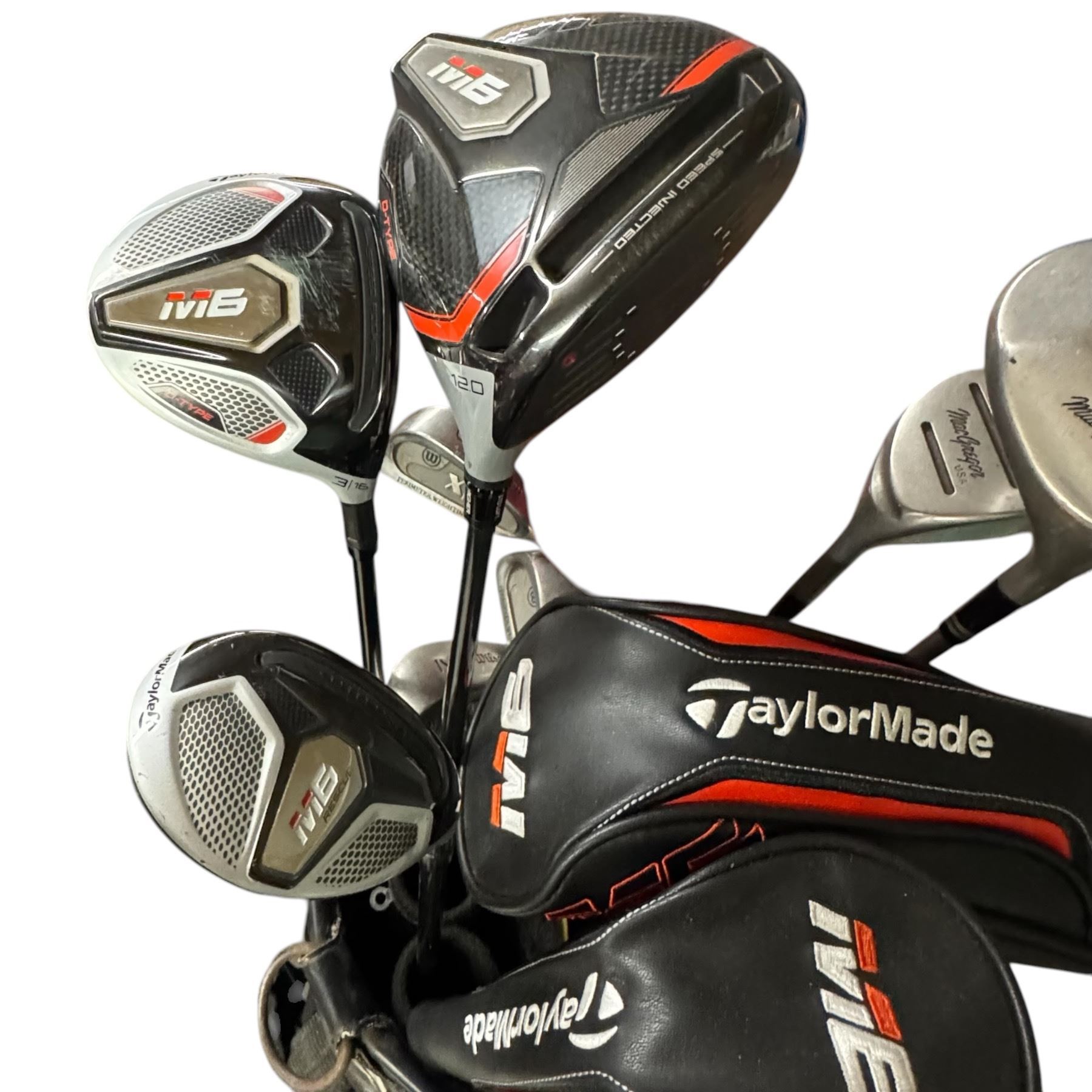 Collection of Vintage Golf Clubs and Newer Taylor Made M6 Woods