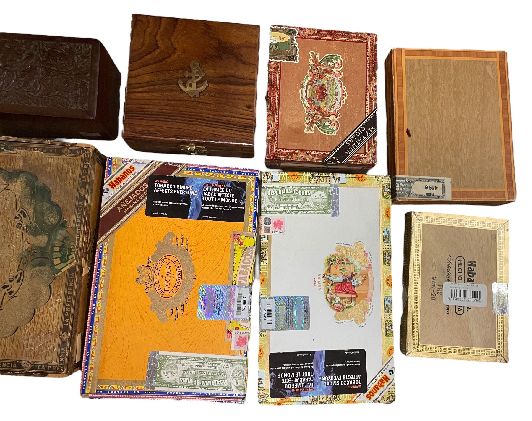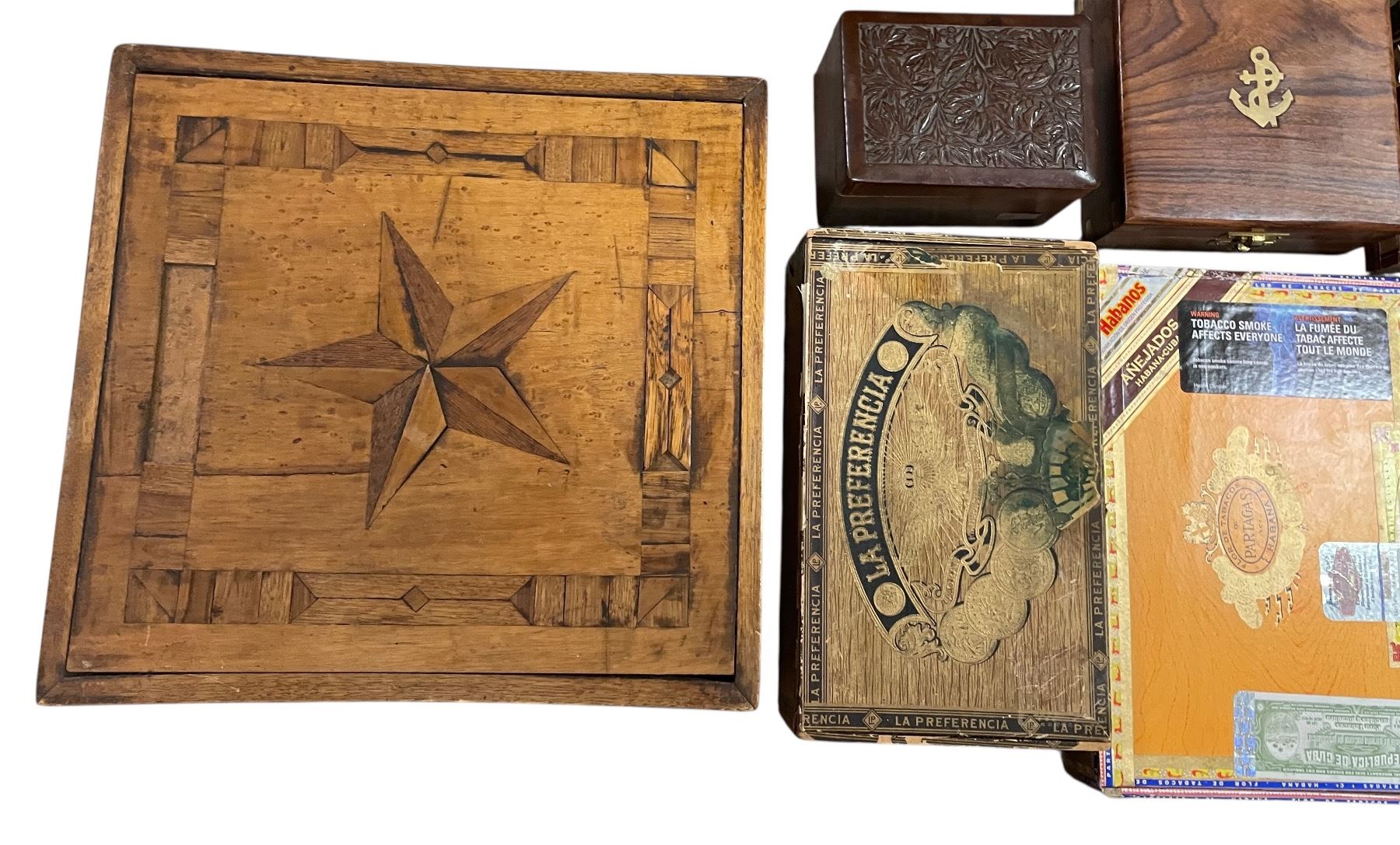 Collection of vintage wooden jewelry boxes & cigar boxes